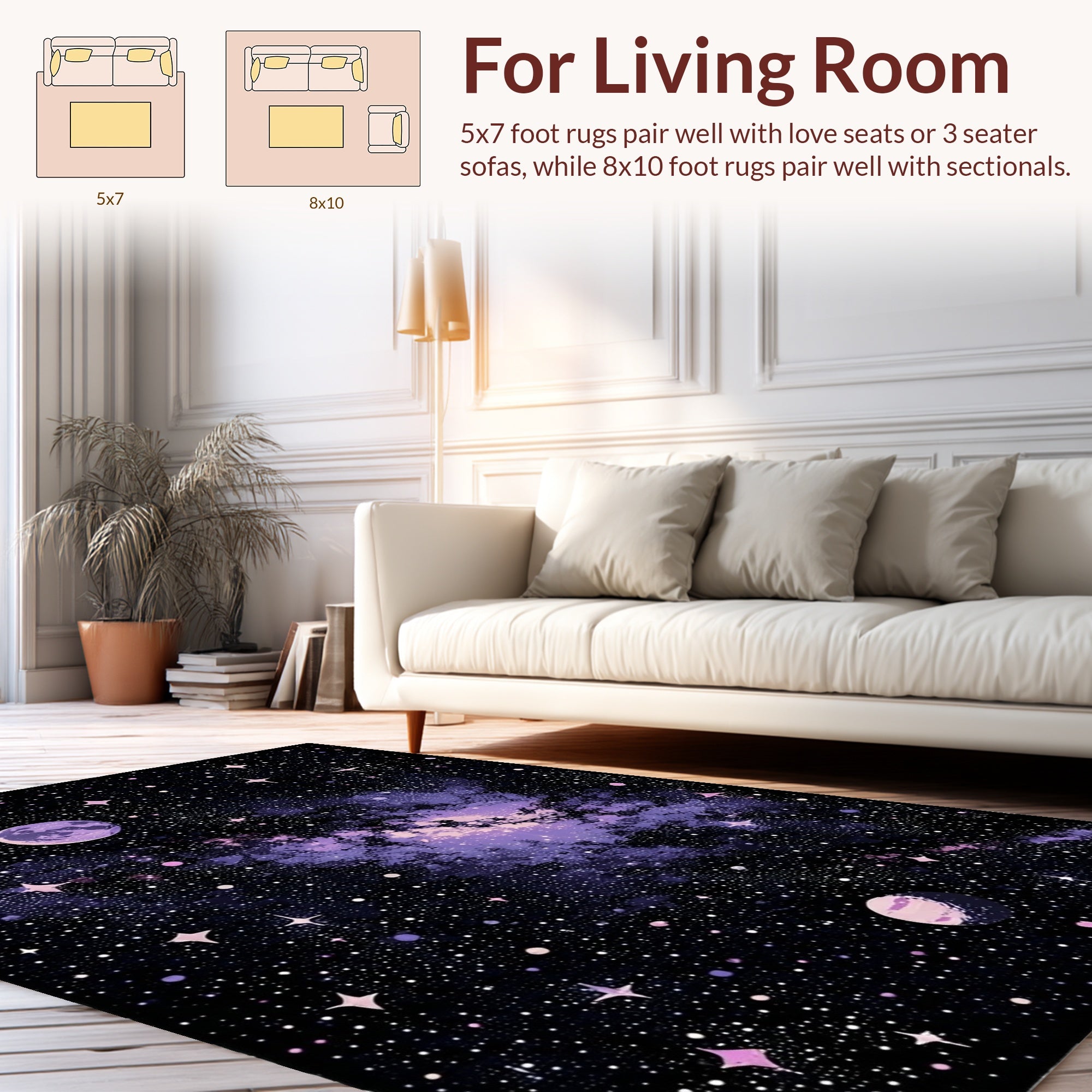 Flatwoven High Traffic Area Rug, Colorful Night Sky Aesthetic, Non Slip, Stain Resistant, Washable Area Rugs for Living Room, Bedroom (Purple) Overview: