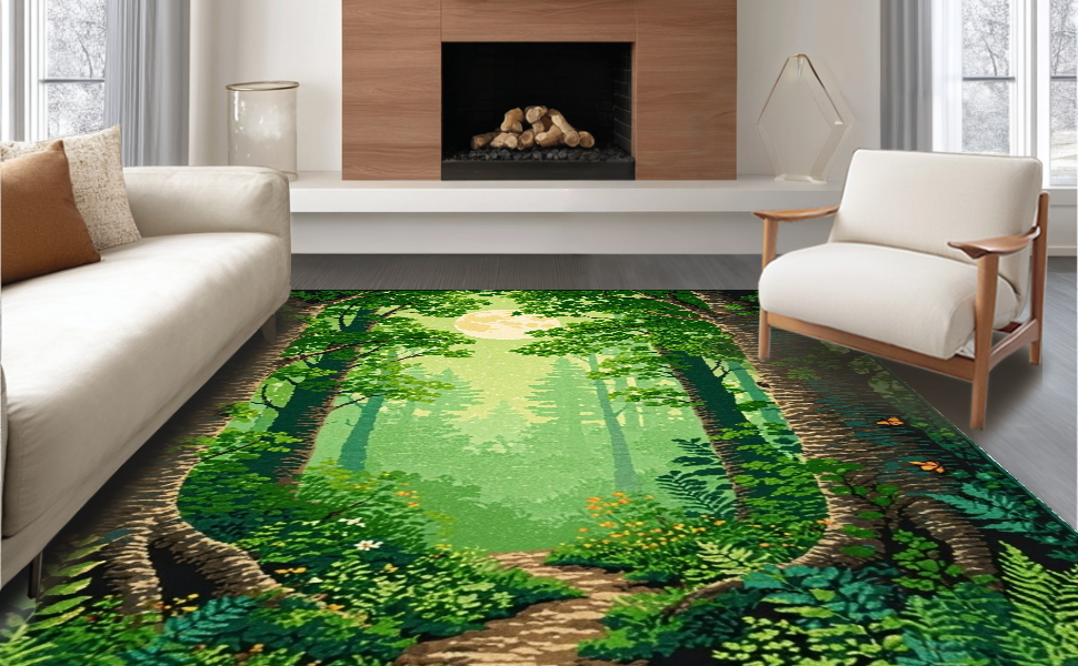Ultra Soft Area Rug, Non Slip, Stain Resistant, Washable Area Rugs for Living Room, Bedroom, Colorful Playful Abstract Geometry(Green) Overview: