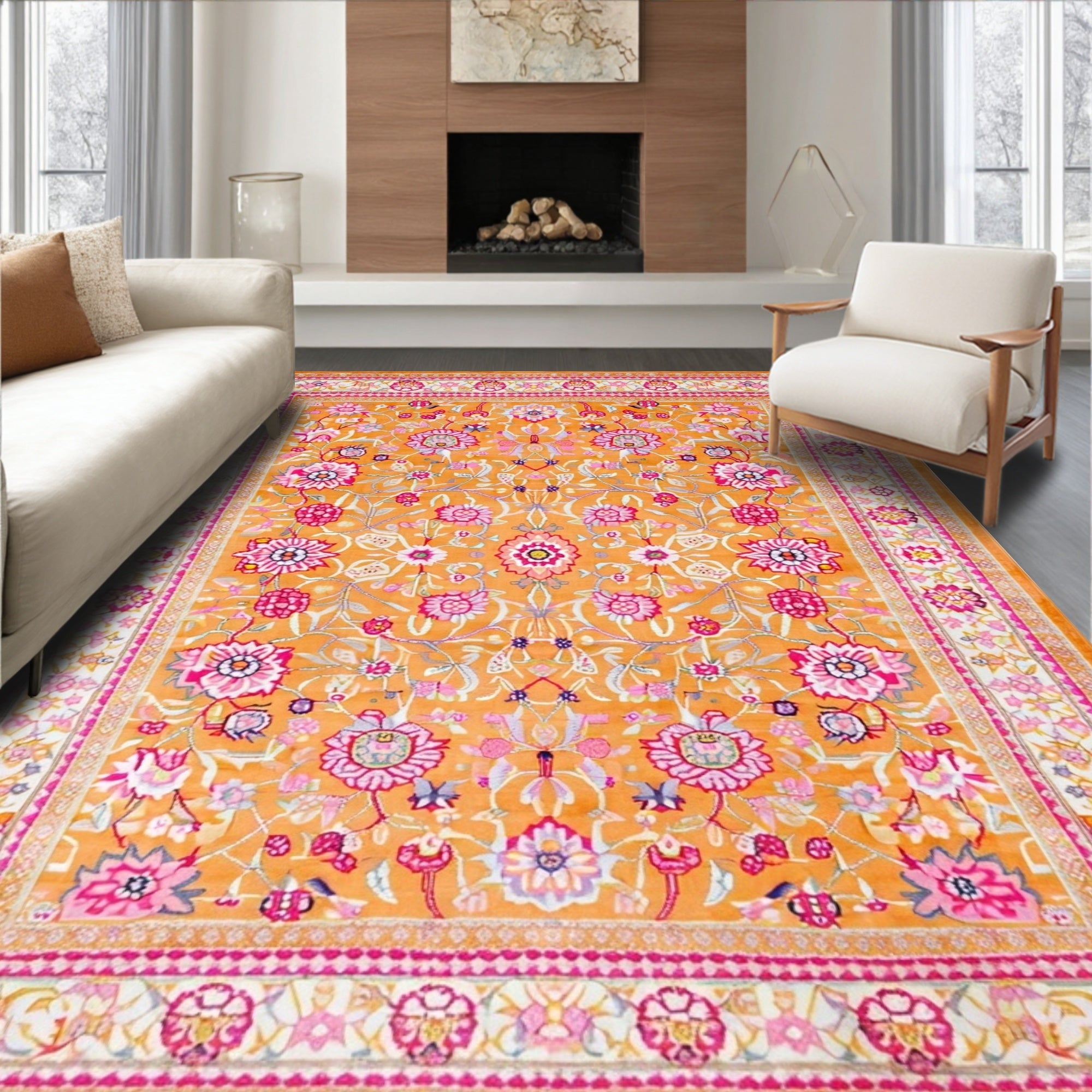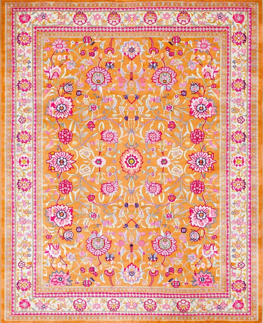 Flatwoven High Traffic Area Rug, Colorful Playful Petal Arrangement, Non Slip, Stain Resistant, Washable Area Rugs for Living Room, Bedroom (Orange) Overview: