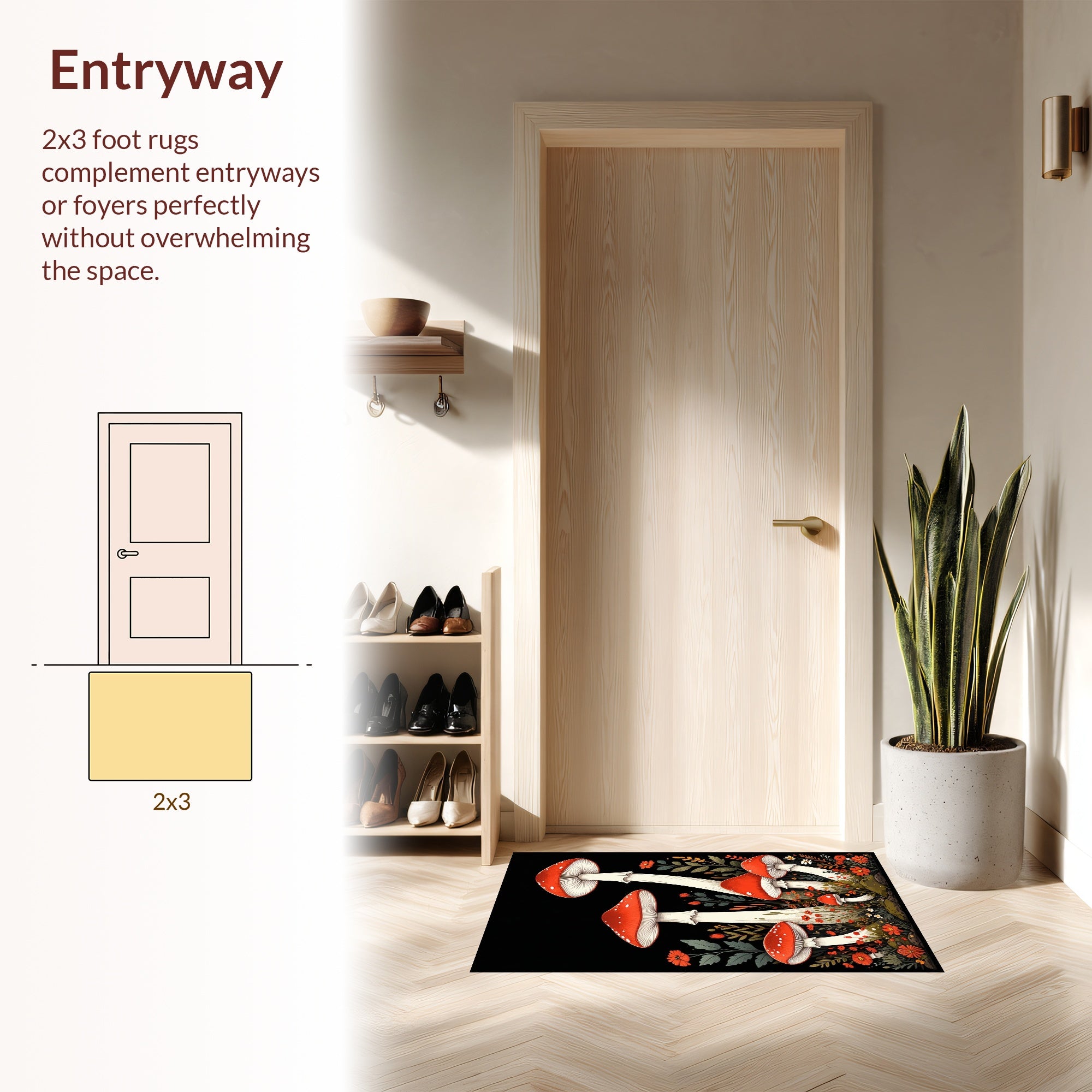 Flatwoven High Traffic Area Rug, Colorful Retro Mushroom Motif, Non Slip, Stain Resistant, Washable Area Rugs for Living Room, Bedroom (Red) Overview:
