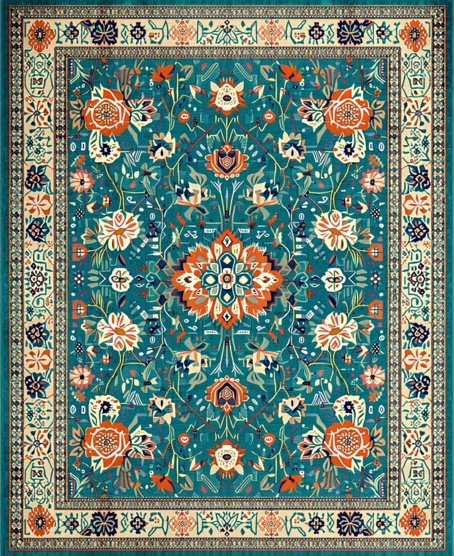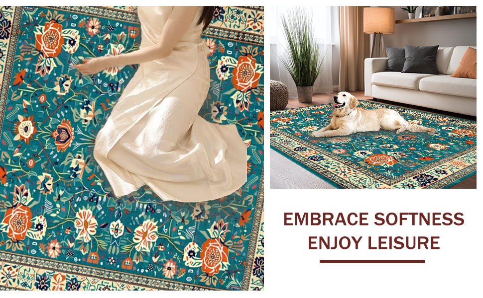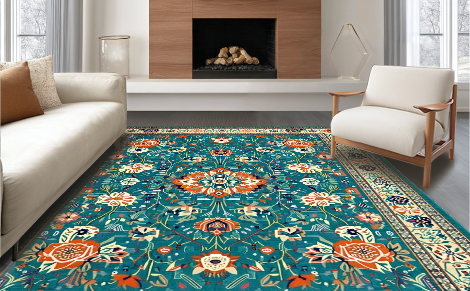 Ultra Soft Area Rug, Non Slip, Stain Resistant, Washable Area Rugs for Living Room, Bedroom, Colorful Rustic Flower Arrangement(Green) Overview: