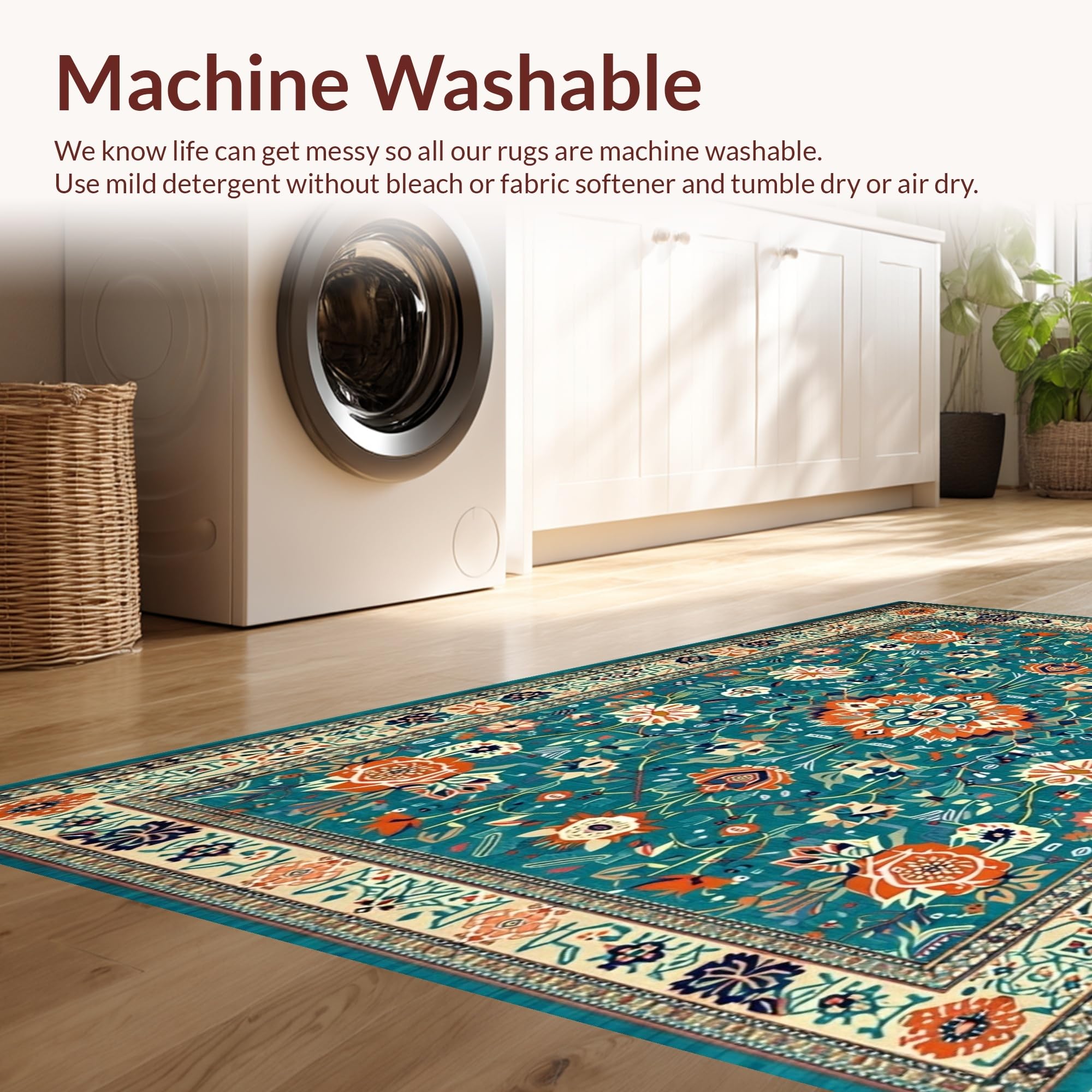 - Machine Washable: Our rugs can be easily thrown in the wash machine.