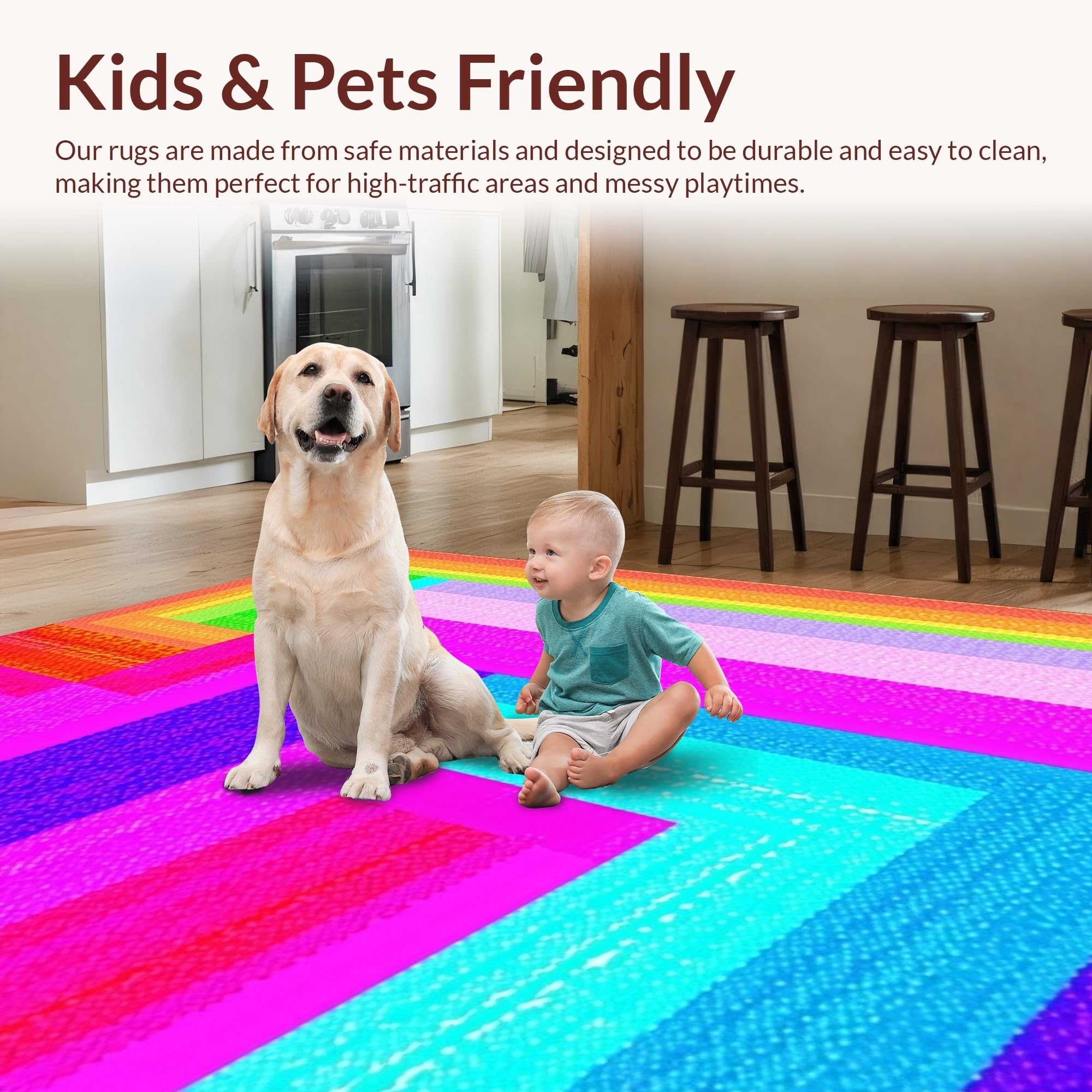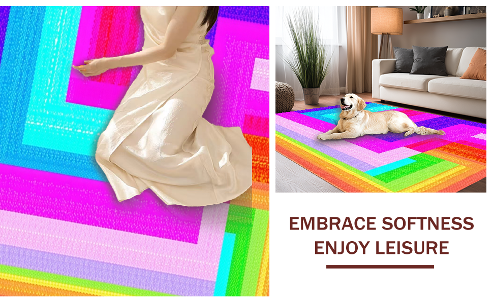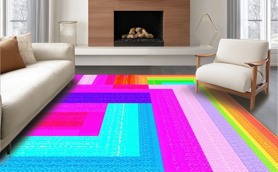Ultra Soft Area Rug, Non Slip, Stain Resistant, Washable Area Rugs for Living Room, Bedroom, Colorful Shaggy Abstract Aesthetic(Pink) Overview: