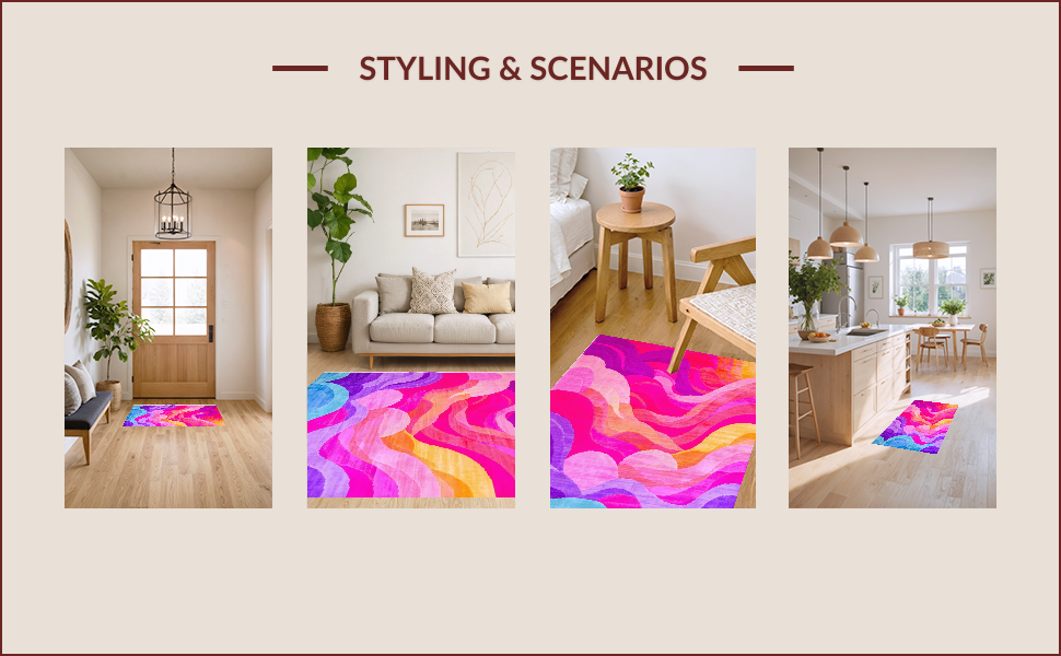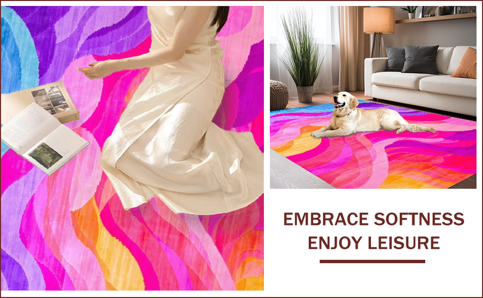 Ultra Soft Area Rug, Non Slip, Stain Resistant, Washable Area Rugs for Living Room, Bedroom, Colorful Tie-Dye Chic Aesthetic(Pink) Overview: