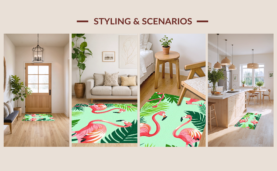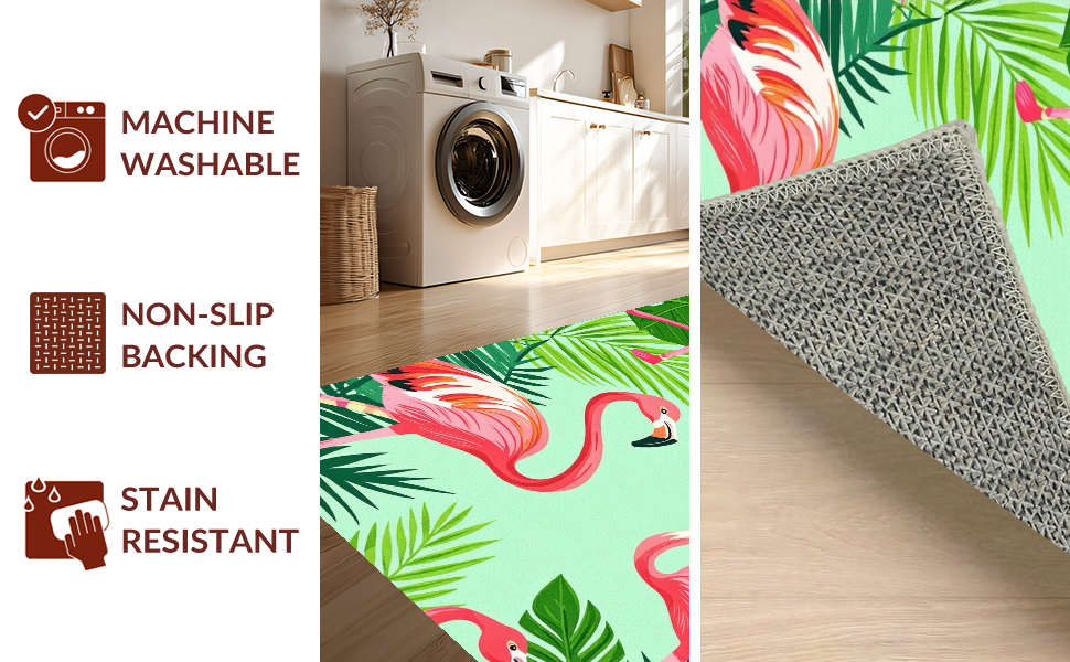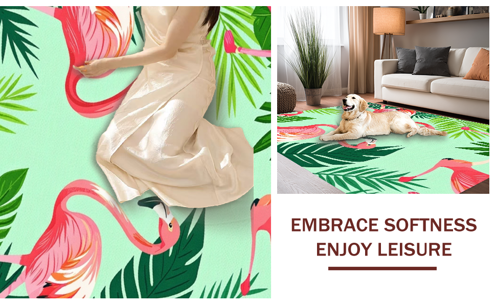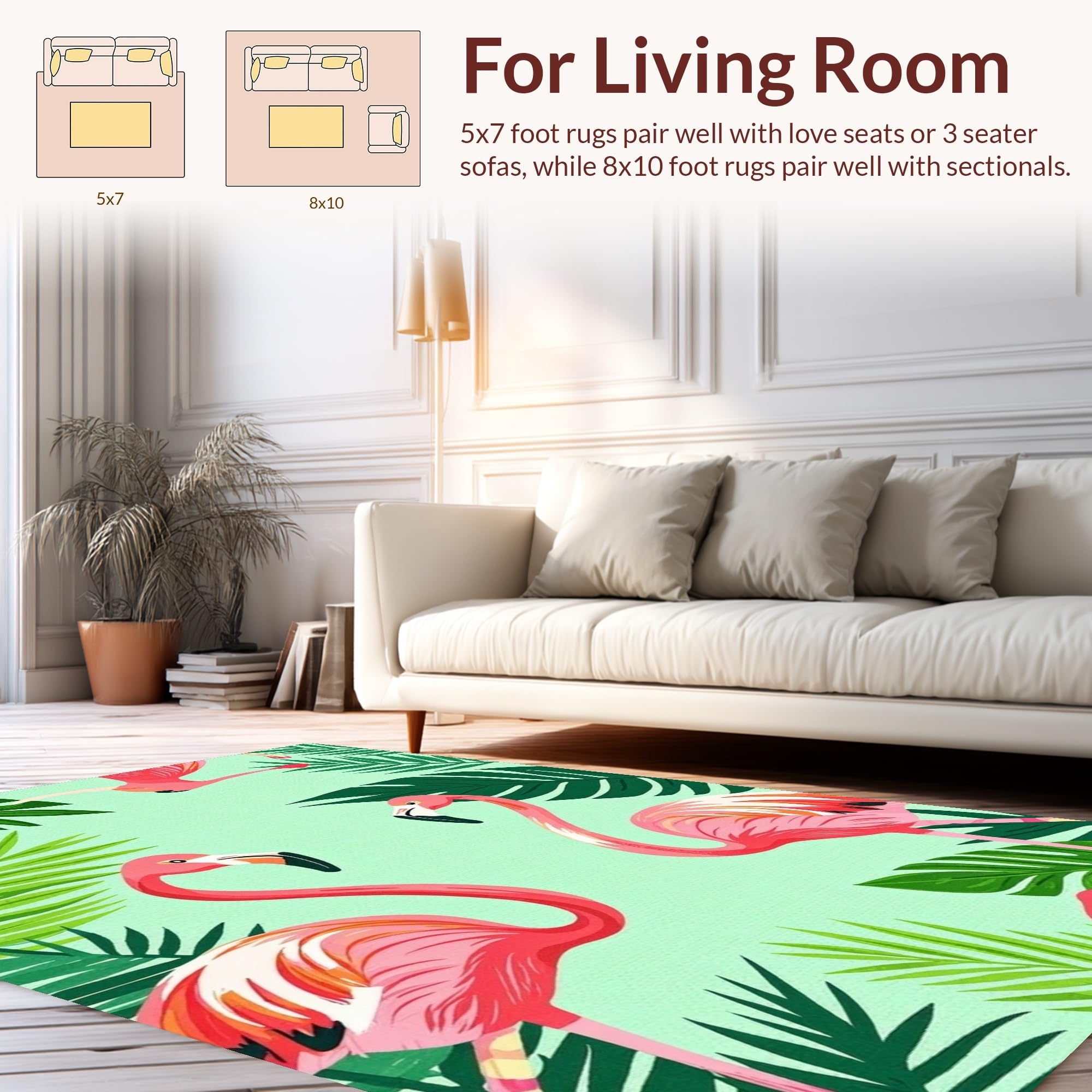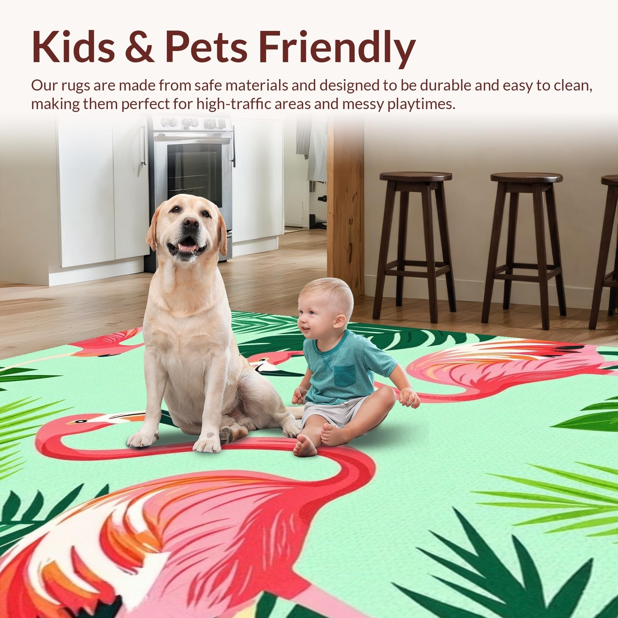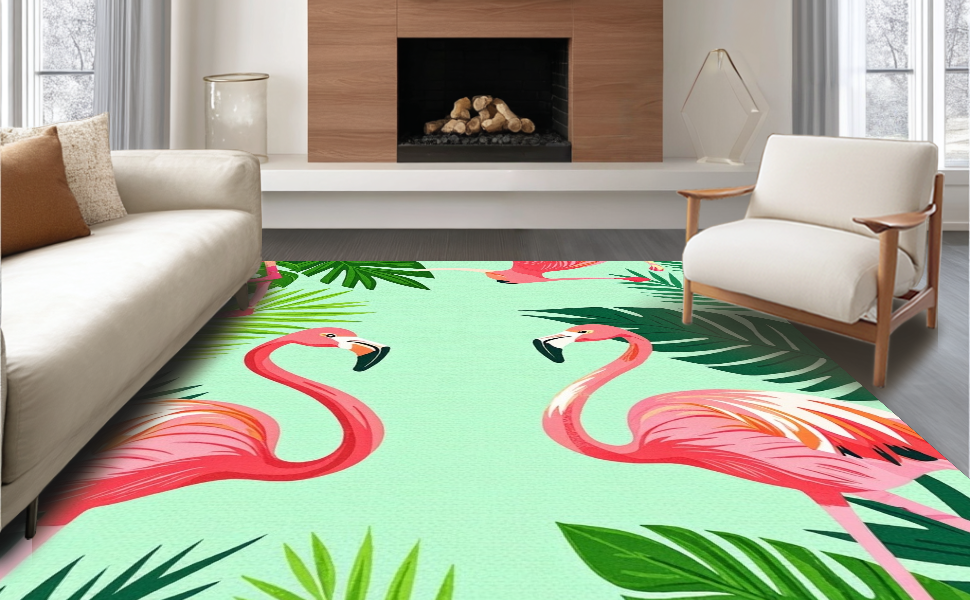 Ultra Soft Area Rug, Non Slip, Stain Resistant, Washable Area Rugs for Living Room, Bedroom, Colorful Tropical Oasis Inspiration(Pink) Overview: