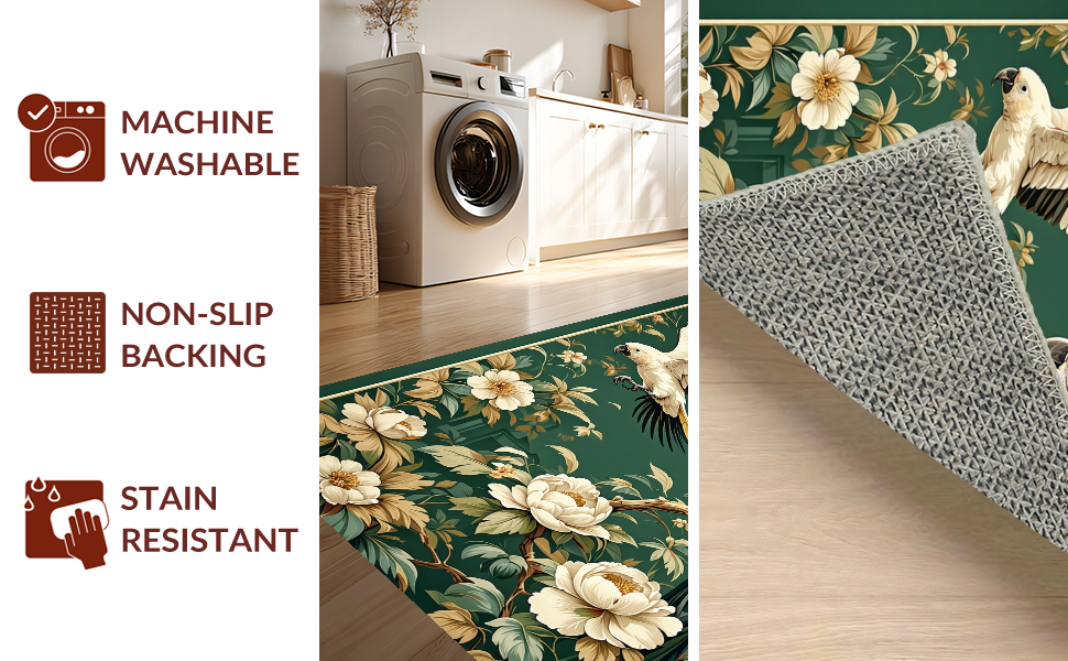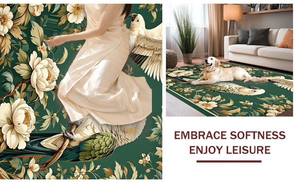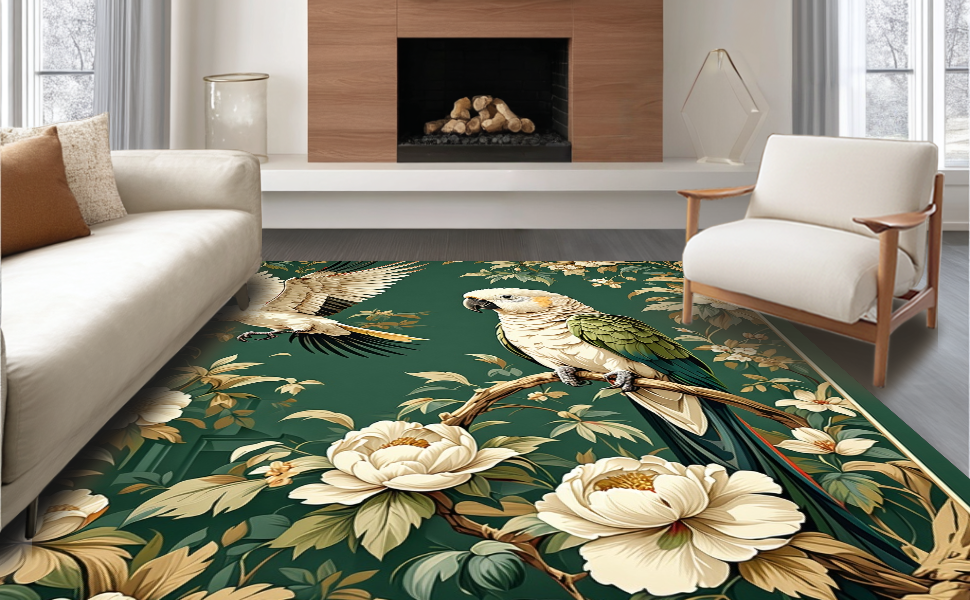 Ultra Soft Area Rug, Non Slip, Stain Resistant, Washable Area Rugs for Living Room, Bedroom, Colorful Tropical Plant Arrangement(Green) Overview: