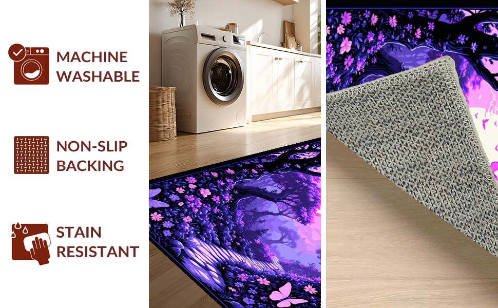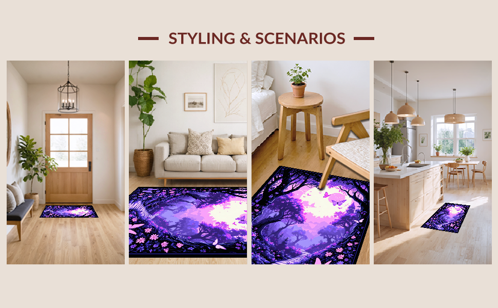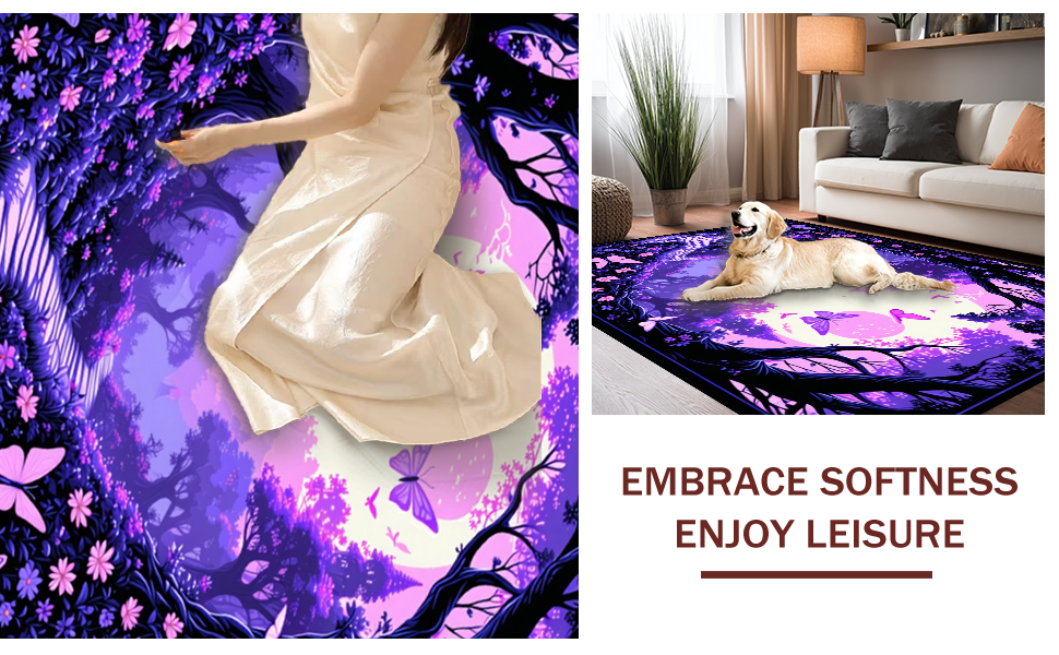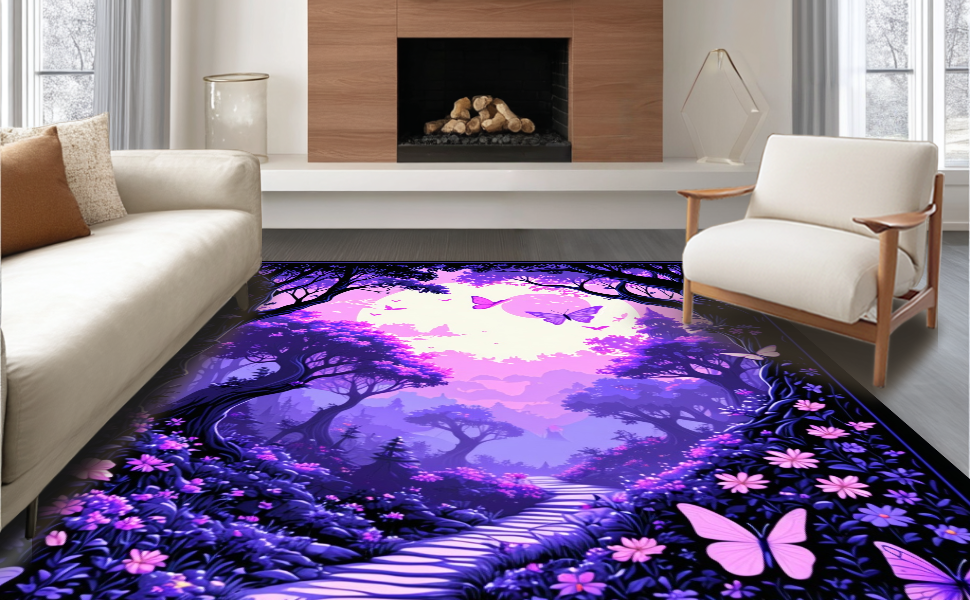 Ultra Soft Area Rug, Non Slip, Stain Resistant, Washable Area Rugs for Living Room, Bedroom, Colorful Wildlife Wonderland Display(Purple) Overview: