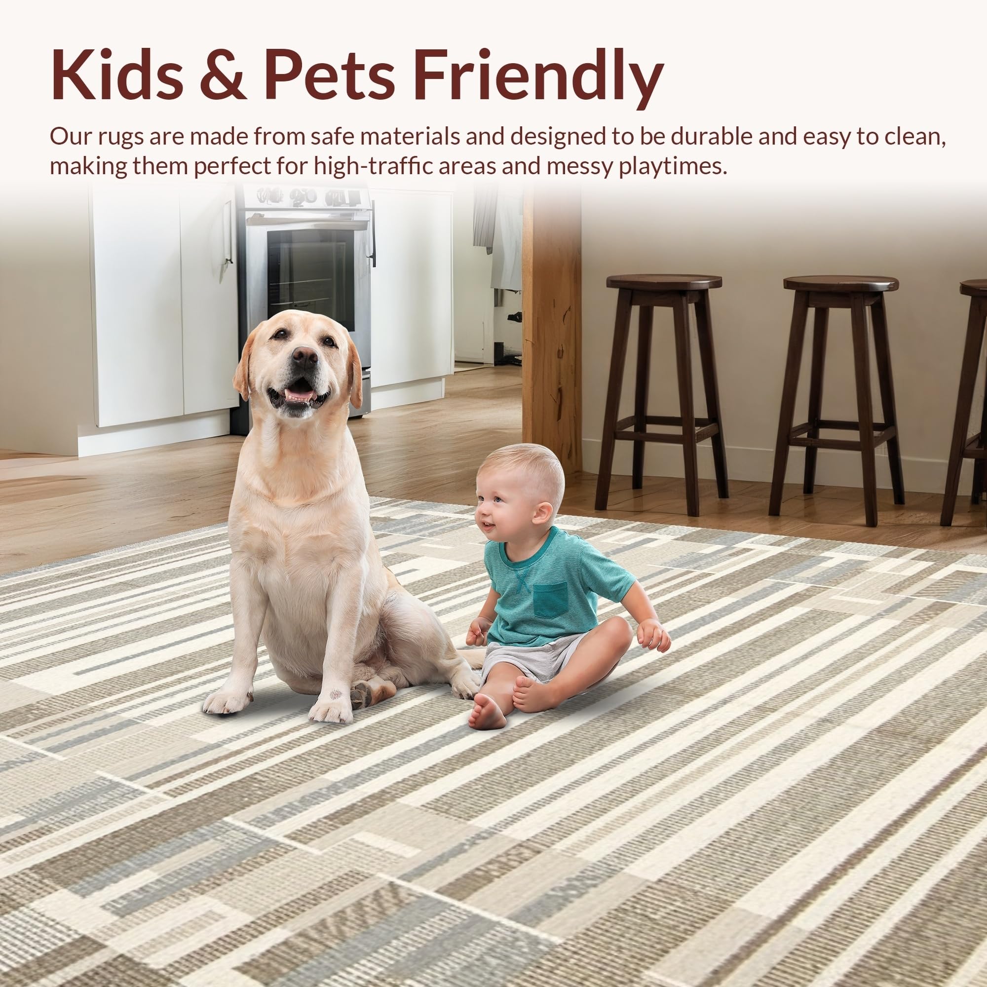 Ultra Soft Area Rug, Non Slip, Stain Resistant, Washable Area Rugs for Living Room, Bedroom, Contemporary 3D Geometric Elegance(Gray) Overview: