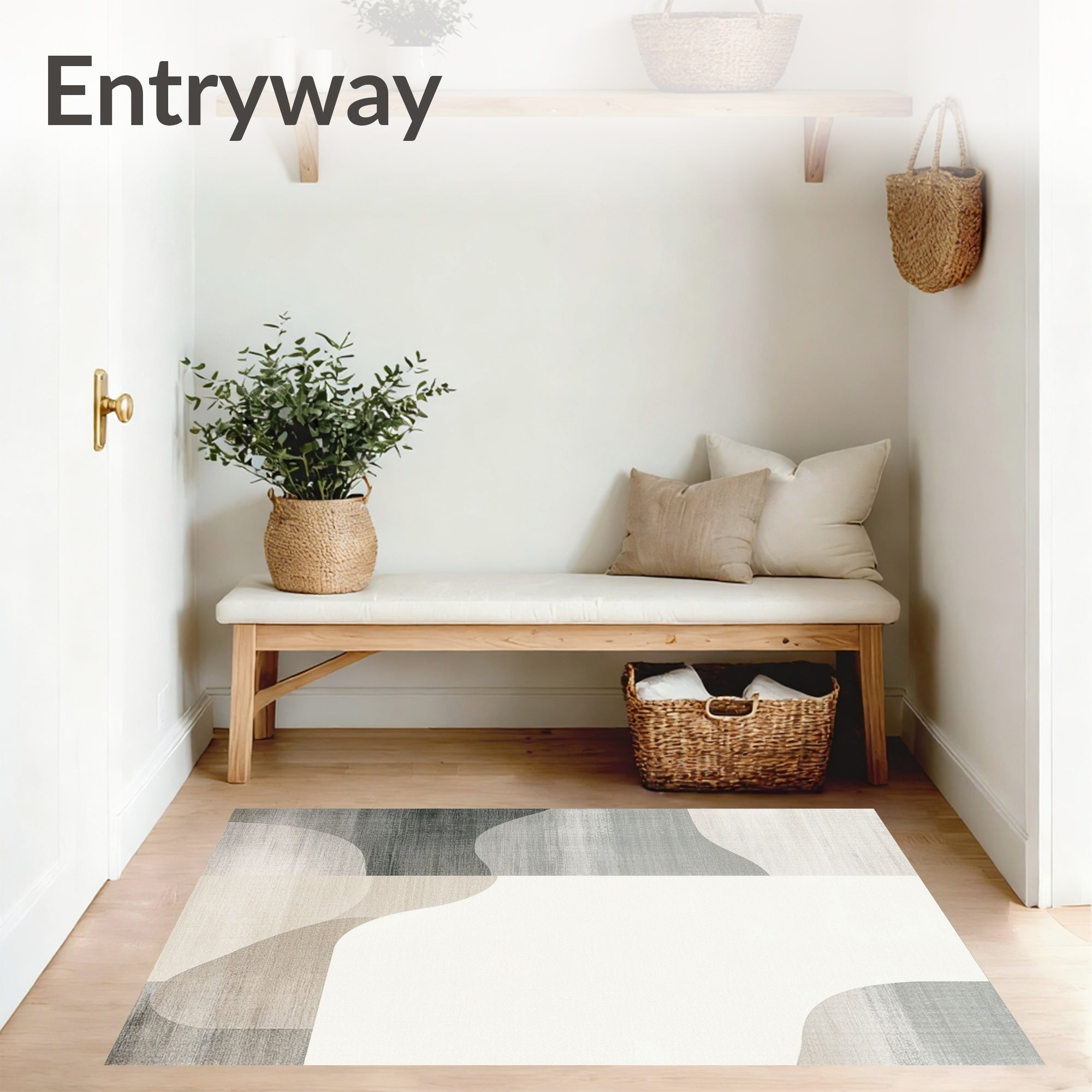 Ultra Soft Area Rug, Non Slip, Stain Resistant, Washable Area Rugs for Living Room, Bedroom, Contemporary Abstract Area Grey & Beige Minimalist Design(Beige) Overview: