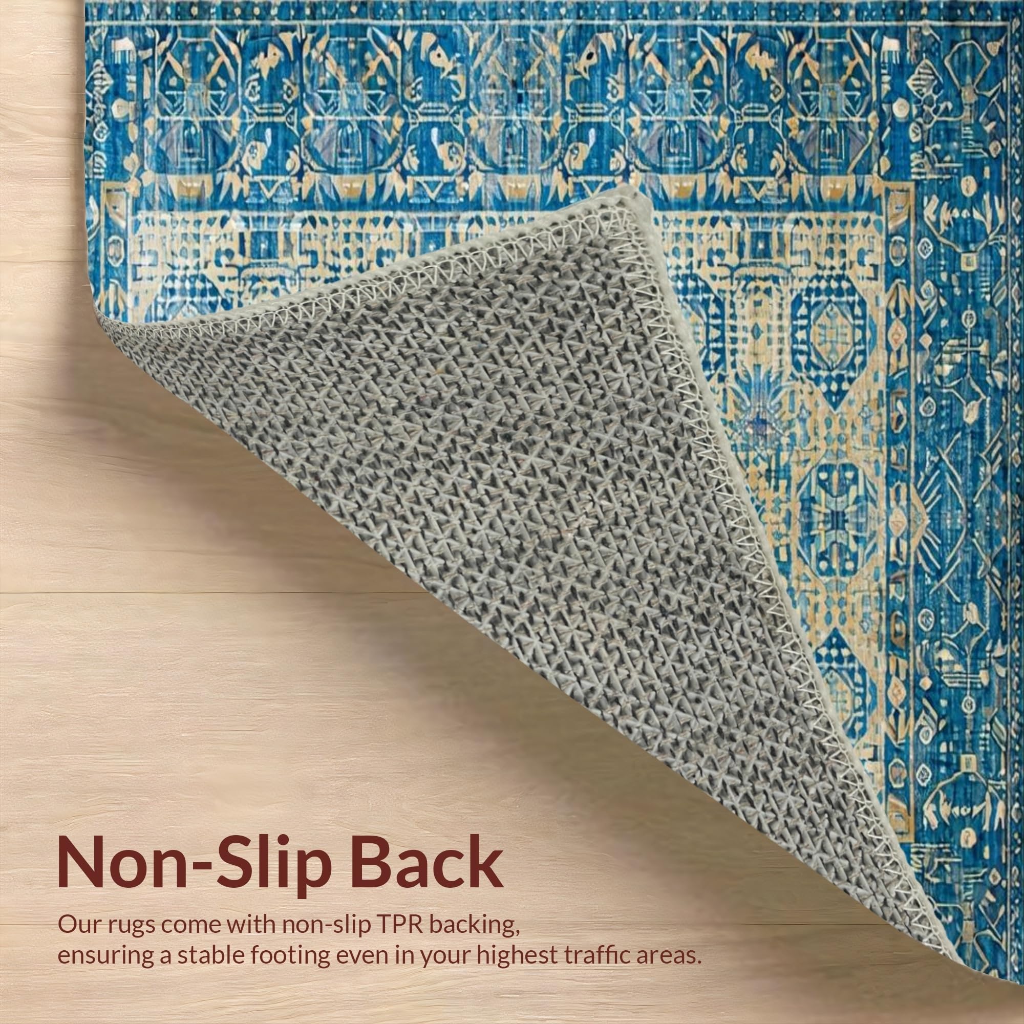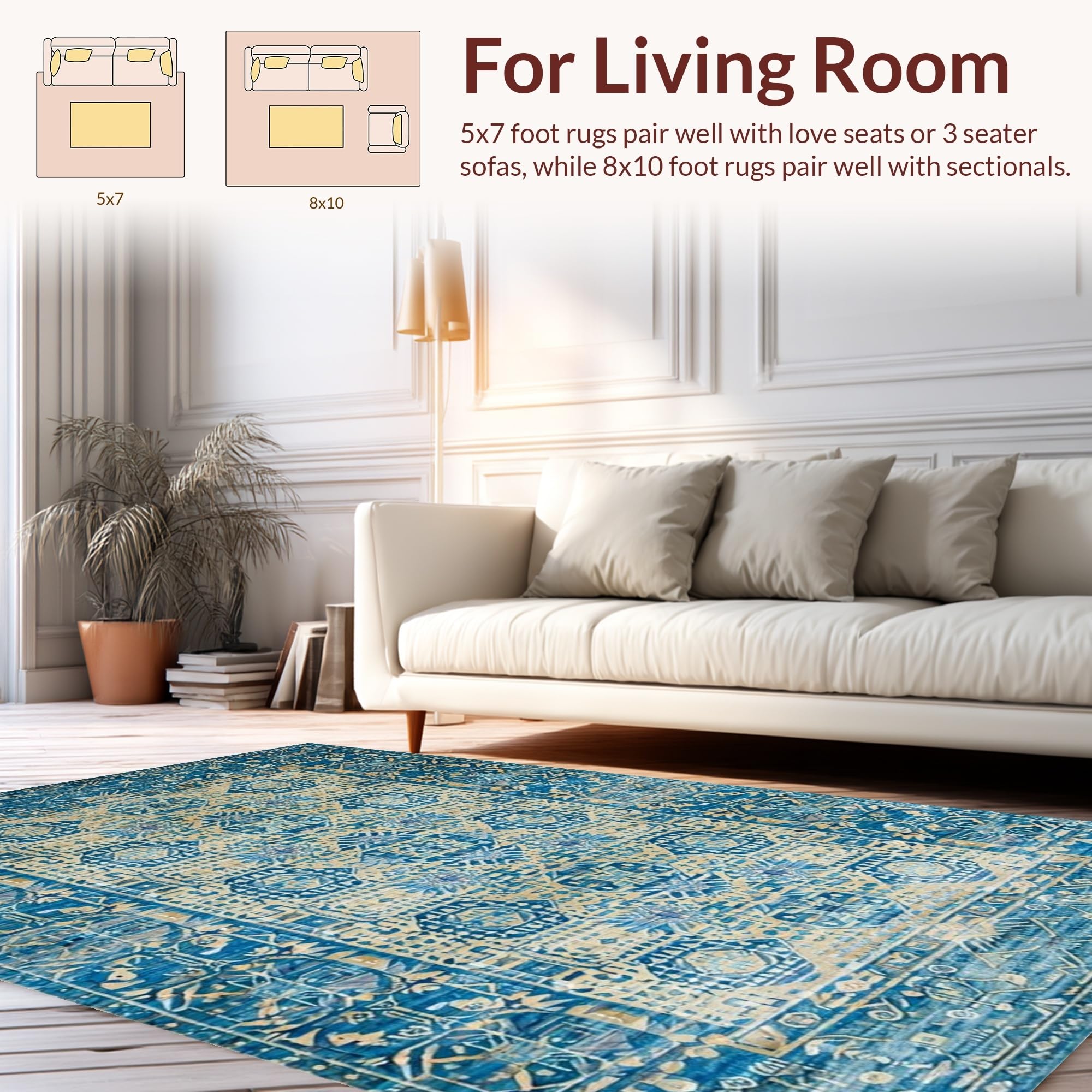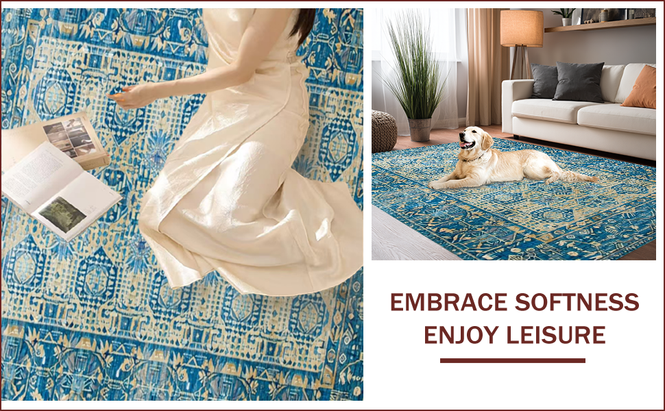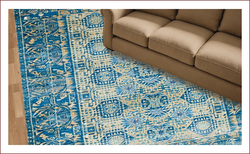 Ultra Soft Area Rug, Non Slip, Stain Resistant, Washable Area Rugs for Living Room, Bedroom, Contemporary Abstract Blue Tones(Blue) Overview: