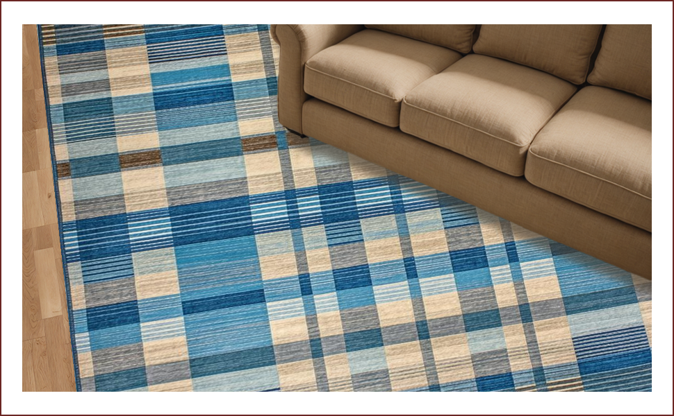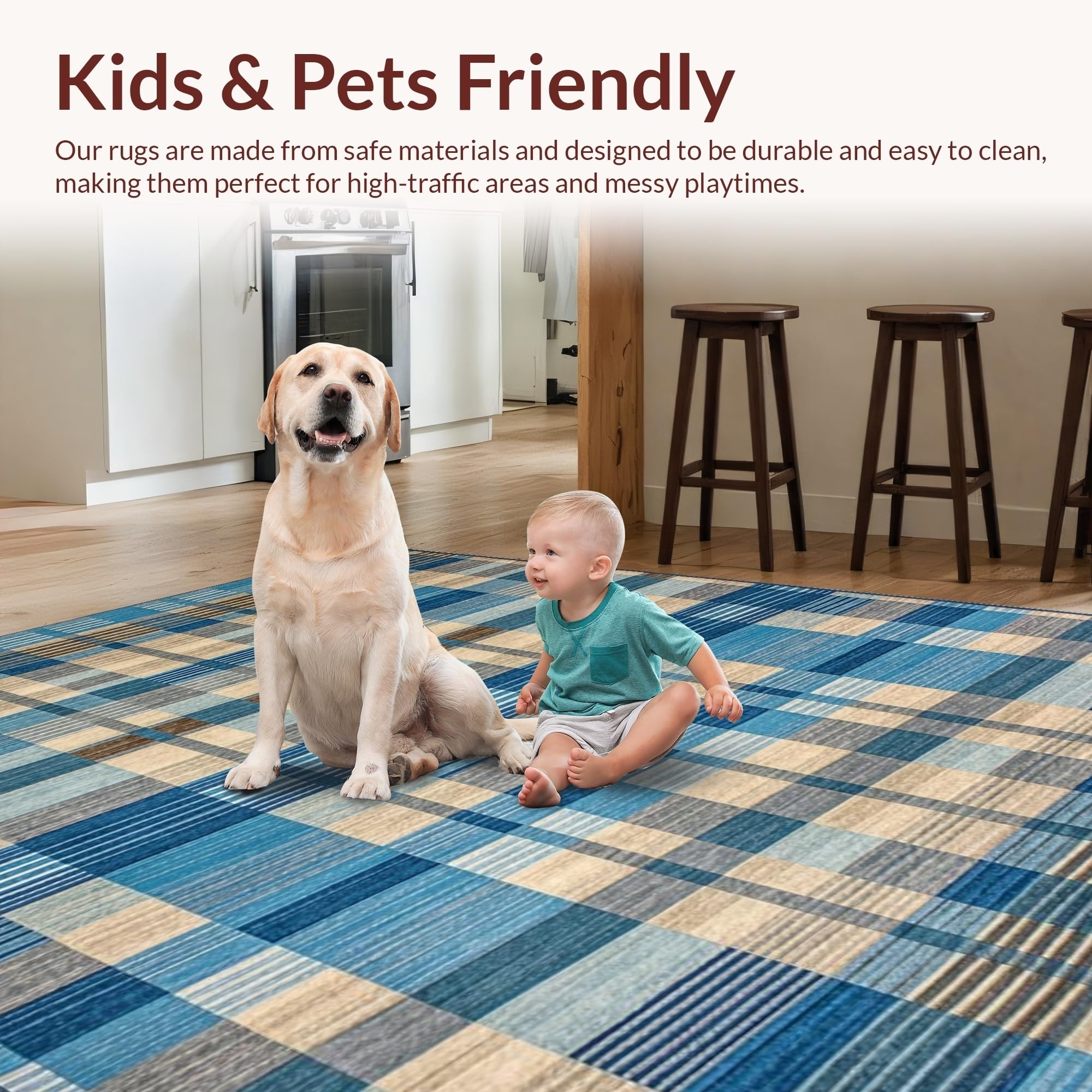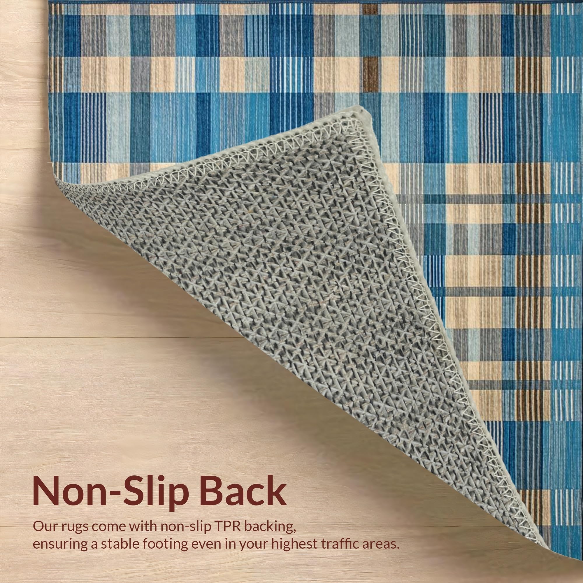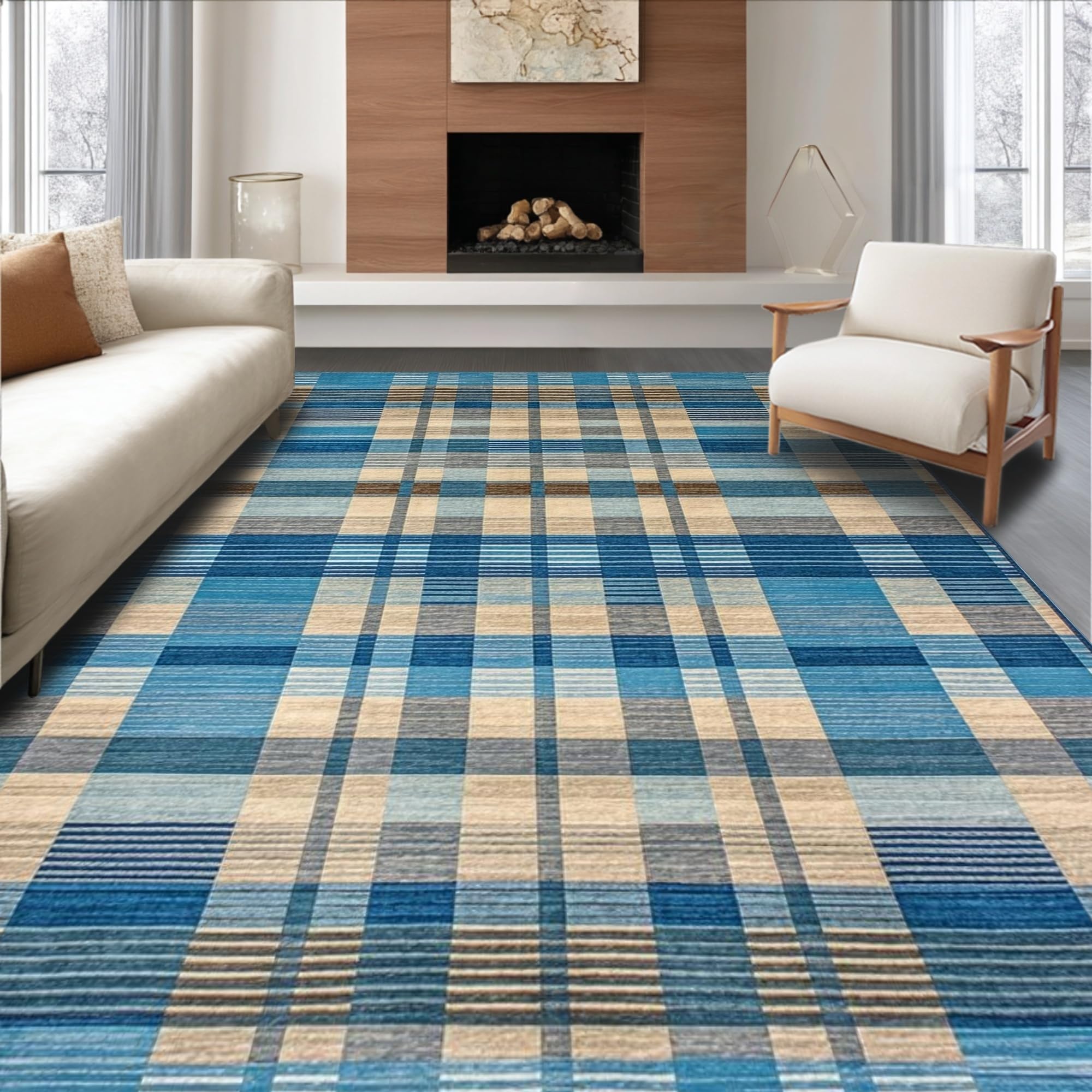 Ultra Soft Area Rug, Non Slip, Stain Resistant, Washable Area Rugs for Living Room, Bedroom, Contemporary Abstract Color Block(Blue) Overview: