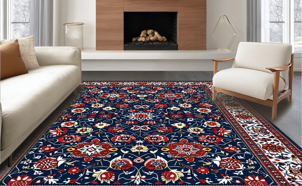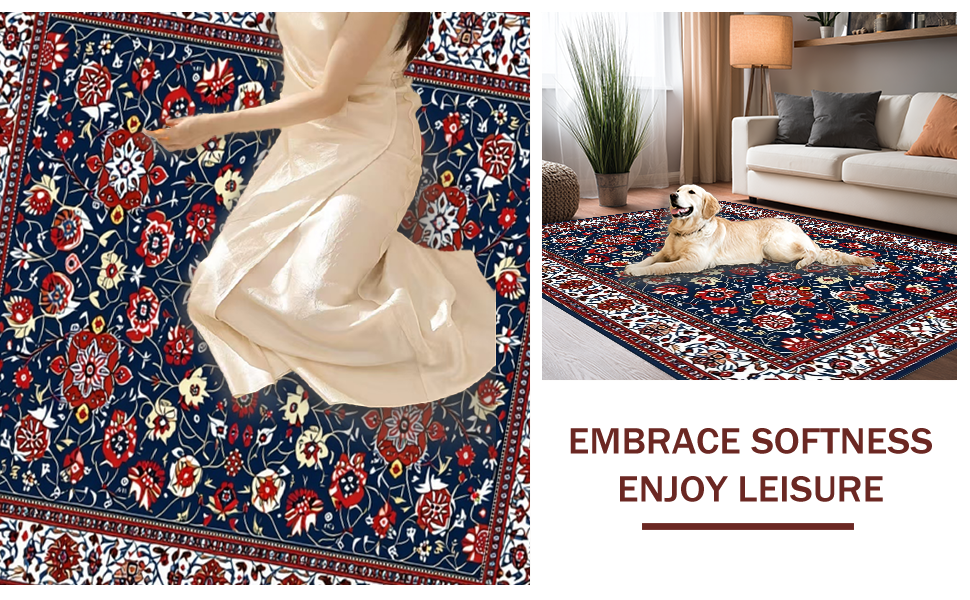 Ultra Soft Area Rug, Non Slip, Stain Resistant, Washable Area Rugs for Living Room, Bedroom, Contemporary Abstract Floral Touch(Blue) Overview: