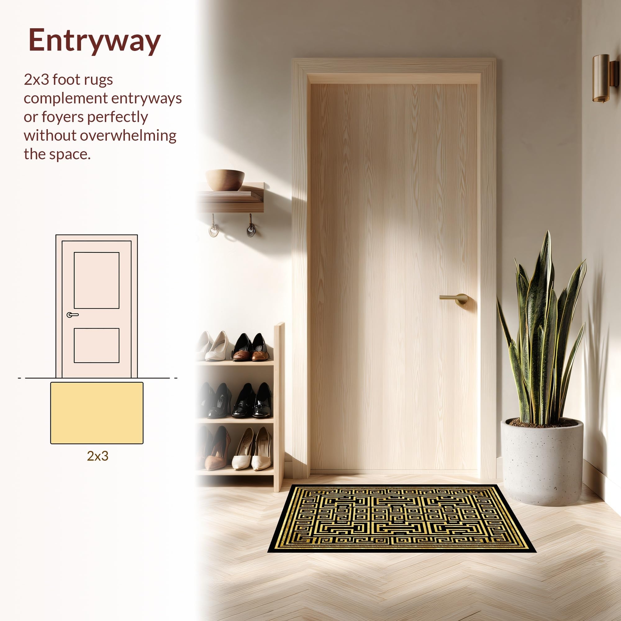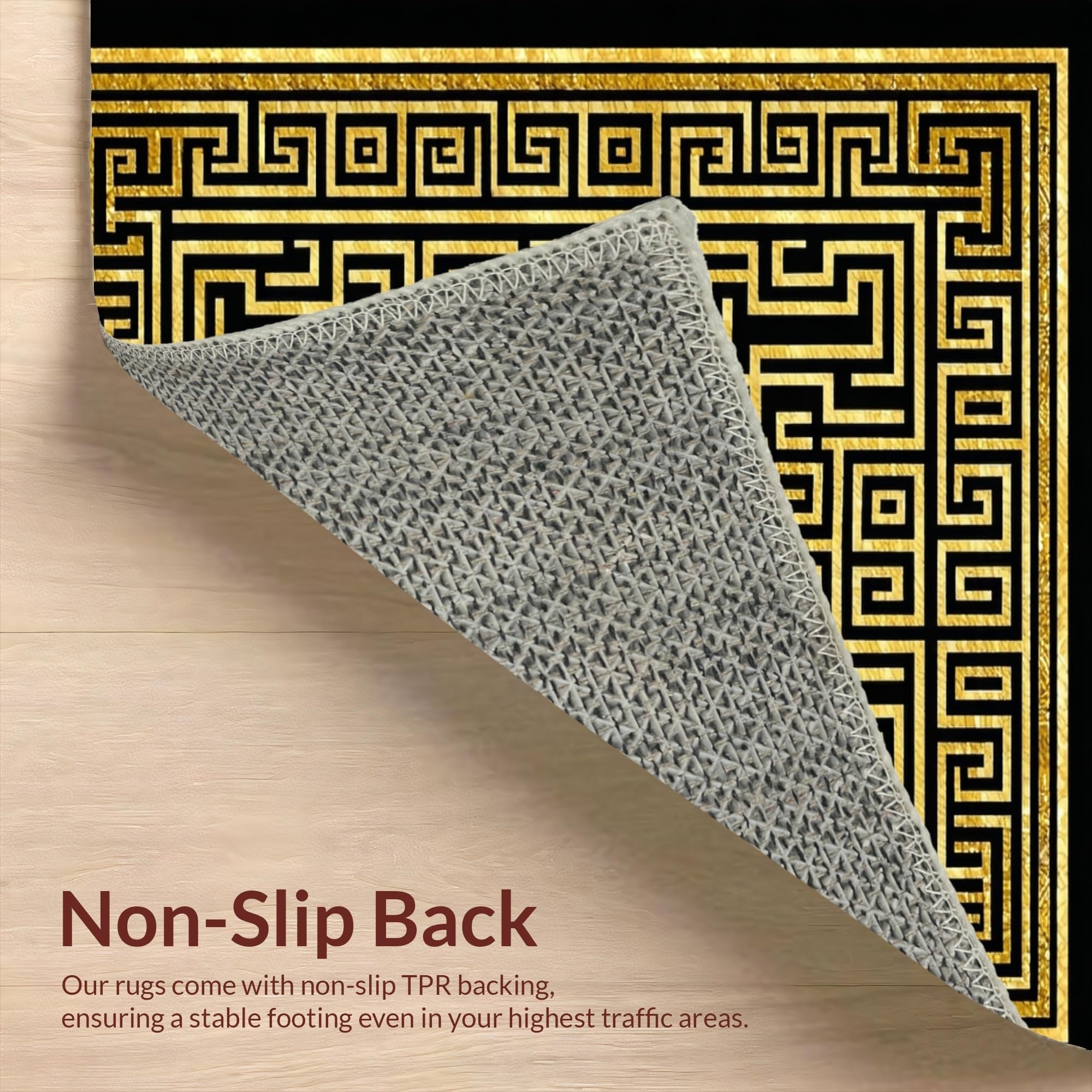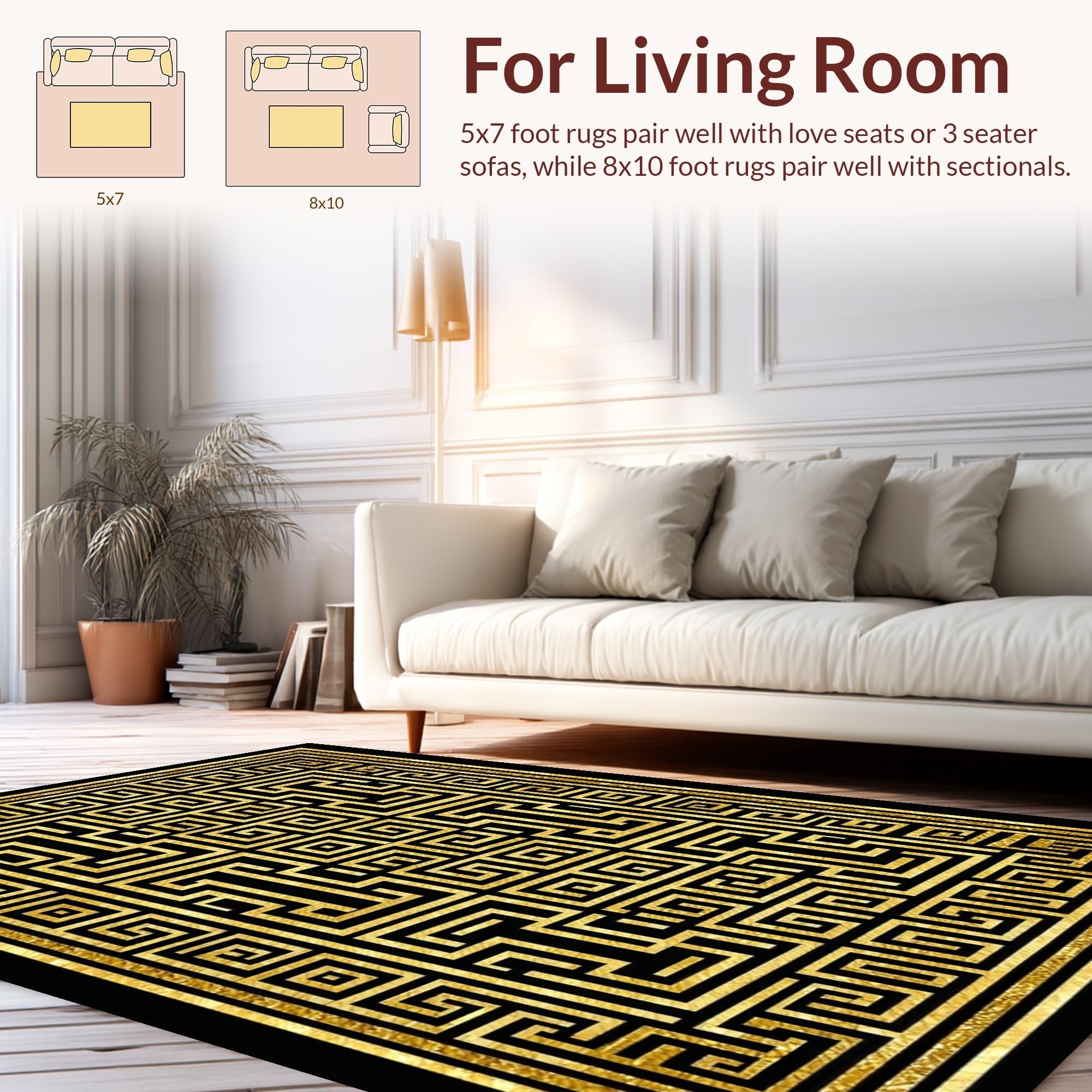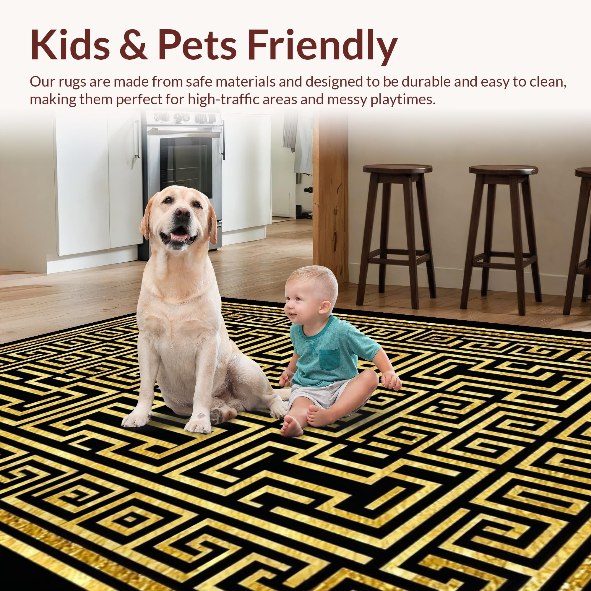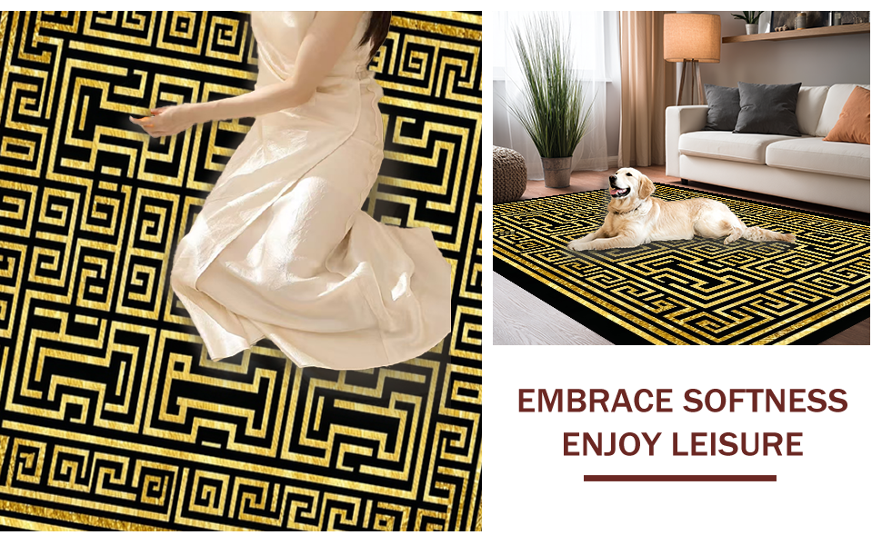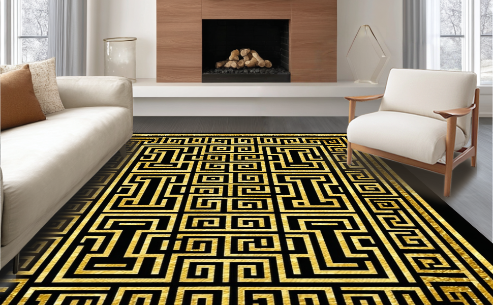Ultra Soft Area Rug, Non Slip, Stain Resistant, Washable Area Rugs for Living Room, Bedroom, Contemporary Abstract Linear Aesthetic(Gold) Overview: