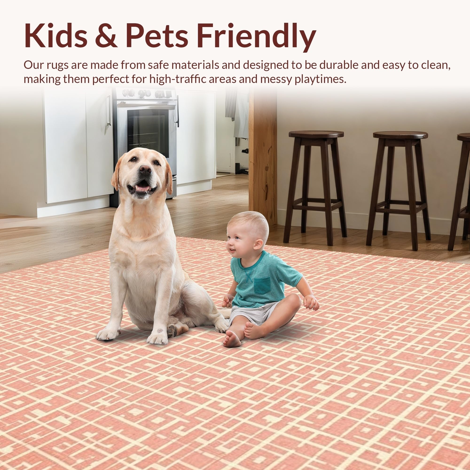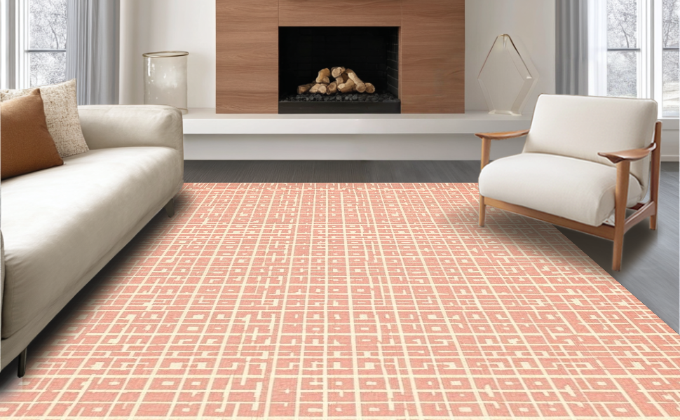 Ultra Soft Area Rug, Non Slip, Stain Resistant, Washable Area Rugs for Living Room, Bedroom, Contemporary Abstract Peach Aesthetic(Red) Overview: