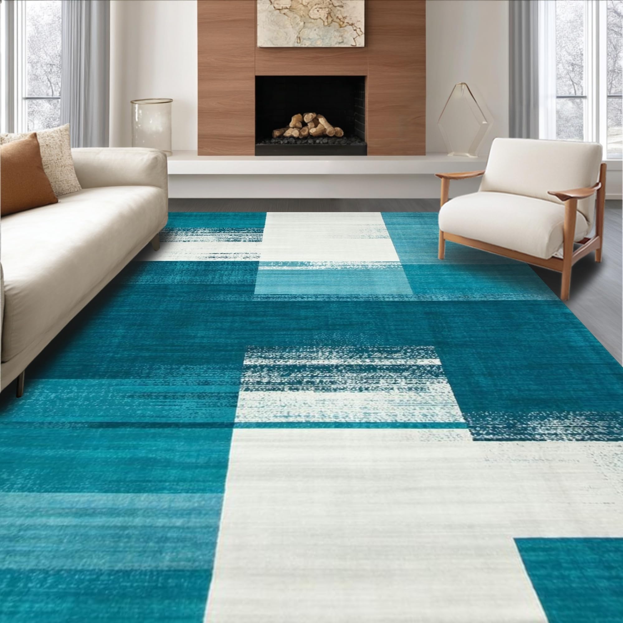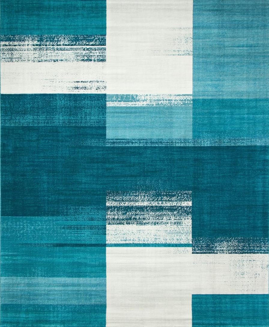 Ultra Soft Area Rug, Non Slip, Stain Resistant, Washable Area Rugs for Living Room, Bedroom, Contemporary Abstract Teal Geometry(Blue) Overview: