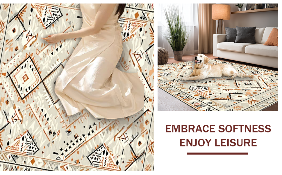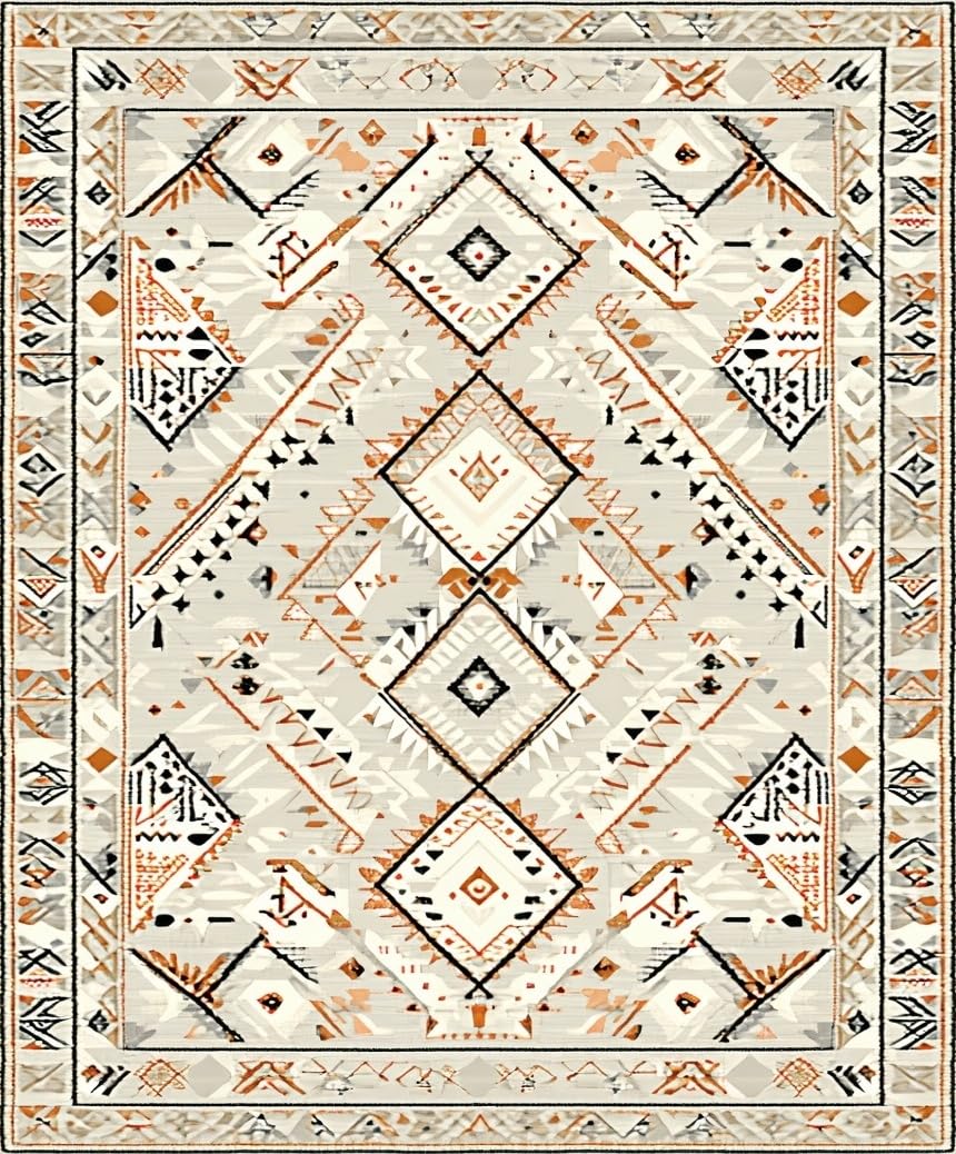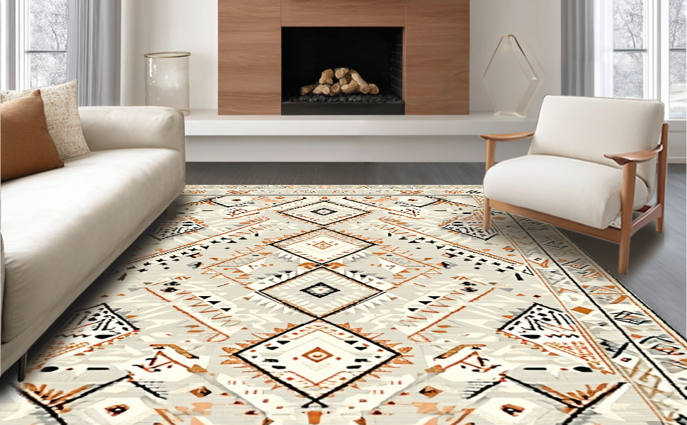 Ultra Soft Area Rug, Non Slip, Stain Resistant, Washable Area Rugs for Living Room, Bedroom, Contemporary Abstract Tiled Motif(Beige) Overview:
