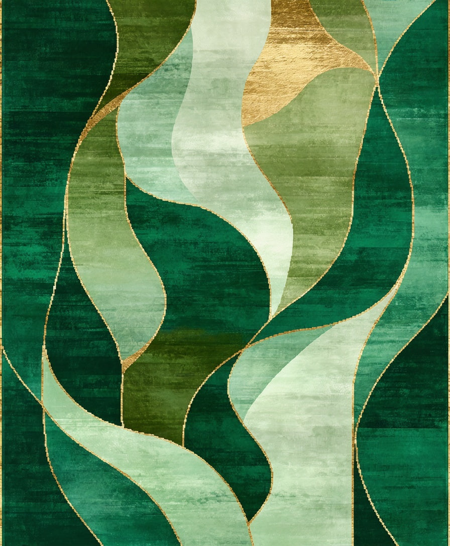 Contemporary Abstract Wave with Fluid Overlapping Curves(Green)