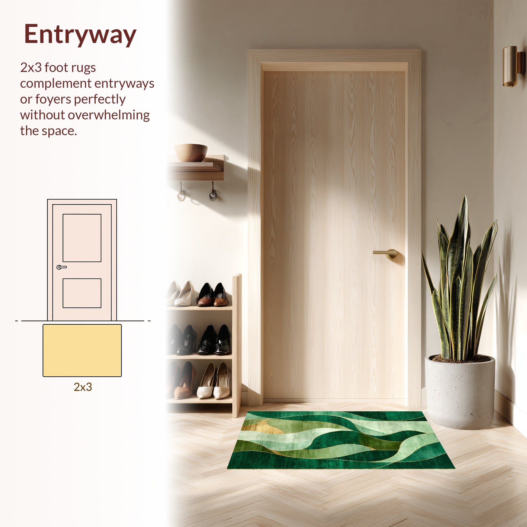 Flatwoven High Traffic Area Rug, Contemporary Abstract Wave with Fluid Overlapping Curves, Non Slip, Stain Resistant, Washable Area Rugs for Living Room, Bedroom (Green) Overview: