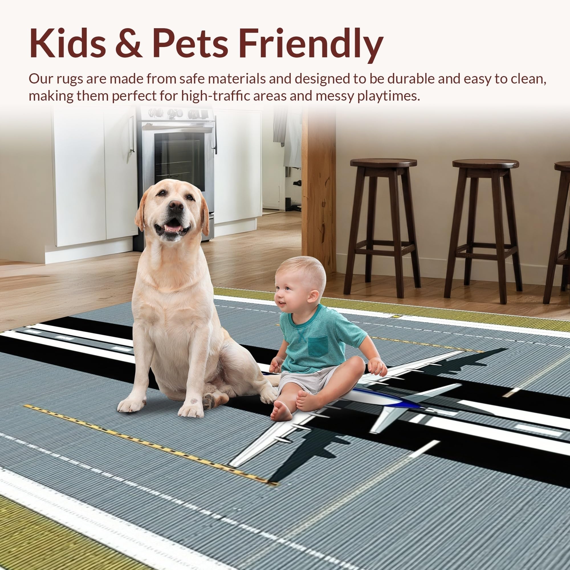 Ultra Soft Area Rug, Non Slip, Stain Resistant, Washable Area Rugs for Living Room, Bedroom, Contemporary Aero Road Aesthetic(Gray) Overview:
