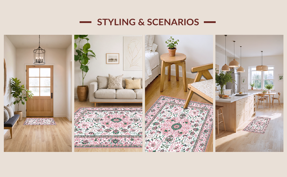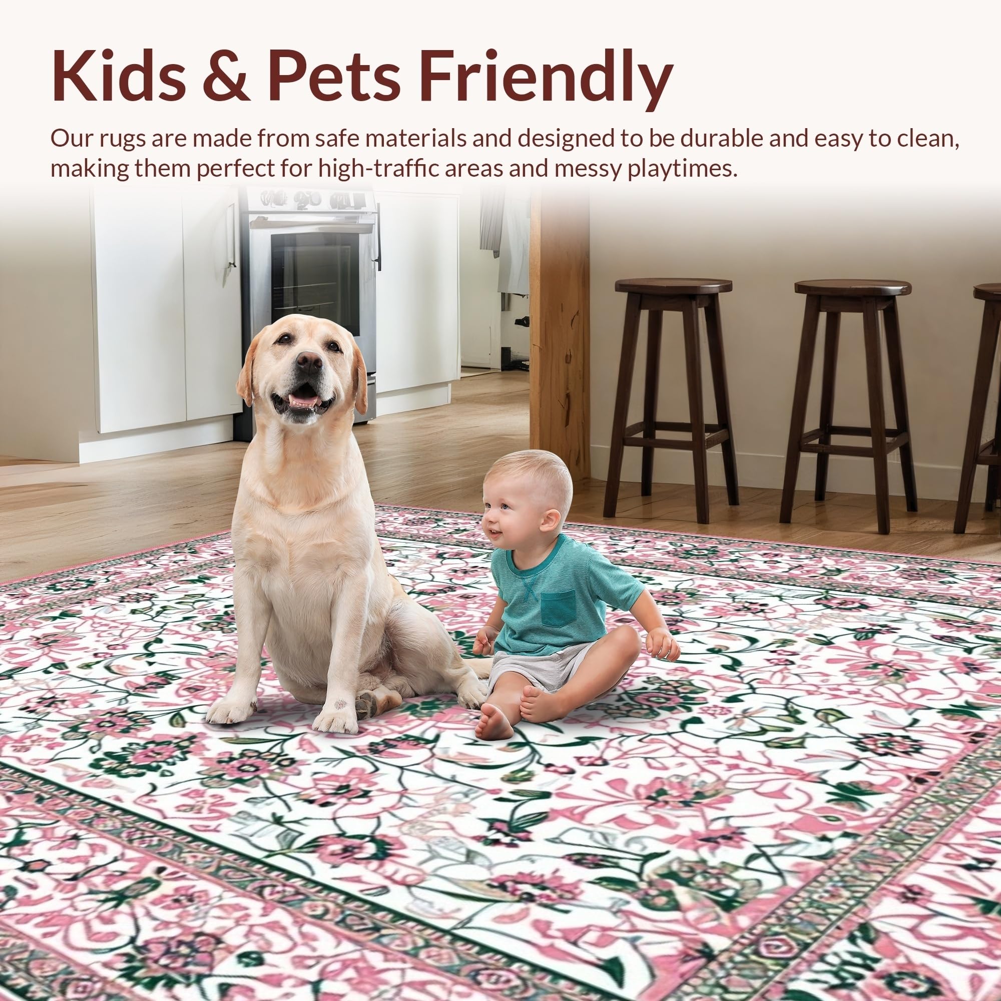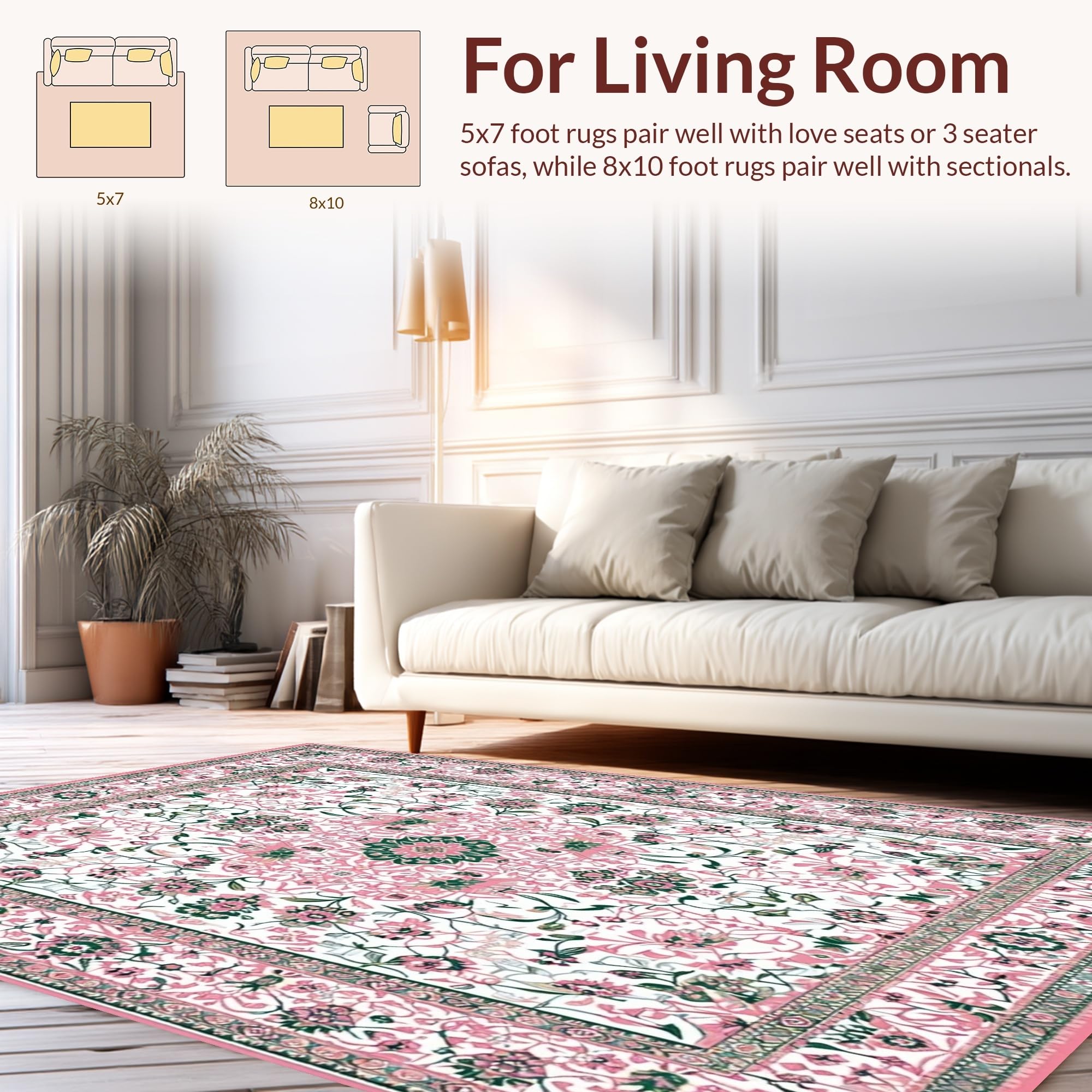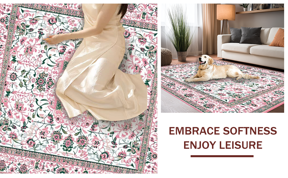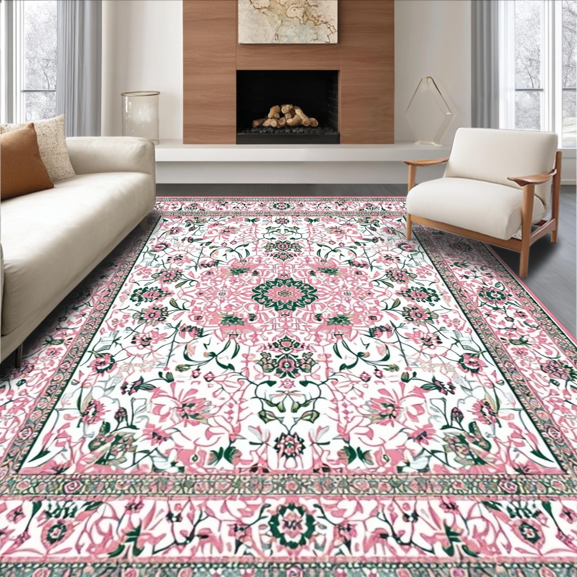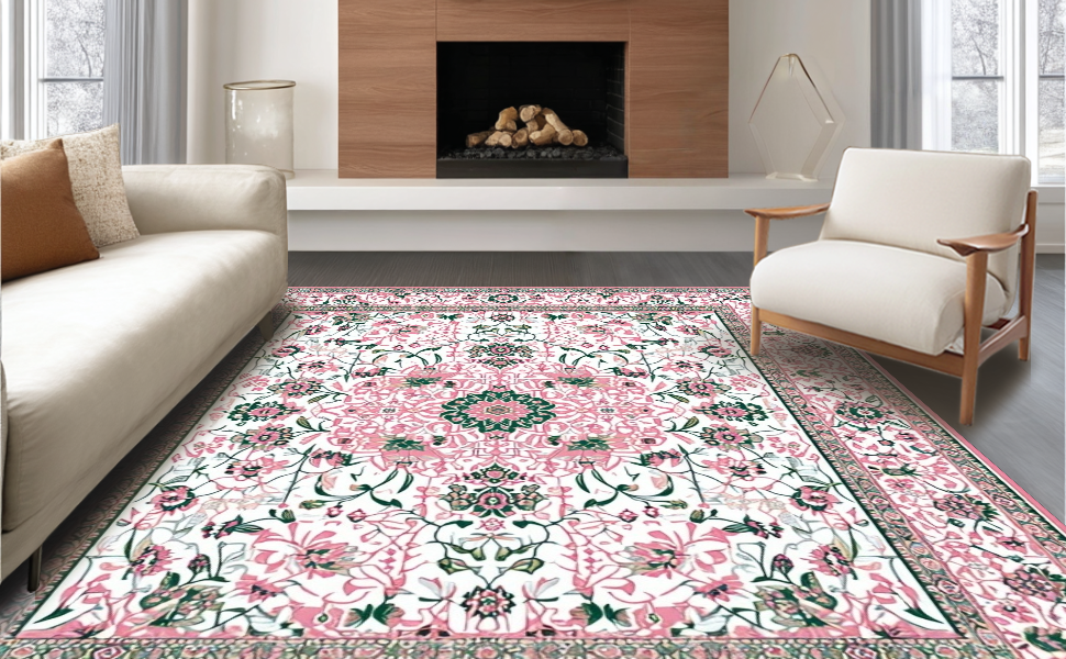 Ultra Soft Area Rug, Non Slip, Stain Resistant, Washable Area Rugs for Living Room, Bedroom, Contemporary Artistic Floral Fusion(White) Overview: