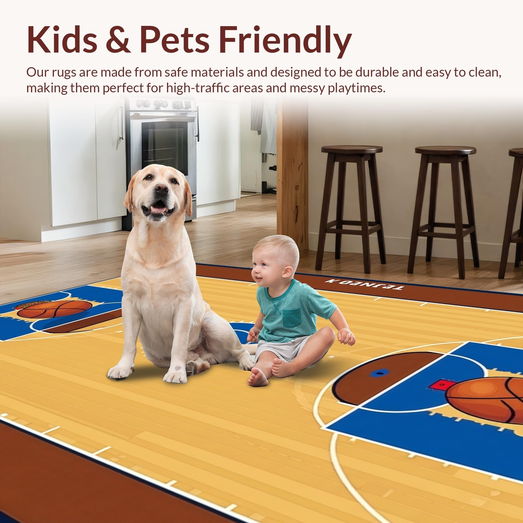 Ultra Soft Area Rug, Non Slip, Stain Resistant, Washable Area Rugs for Living Room, Bedroom, Contemporary Athletic Graphic Design(Brown) Overview: