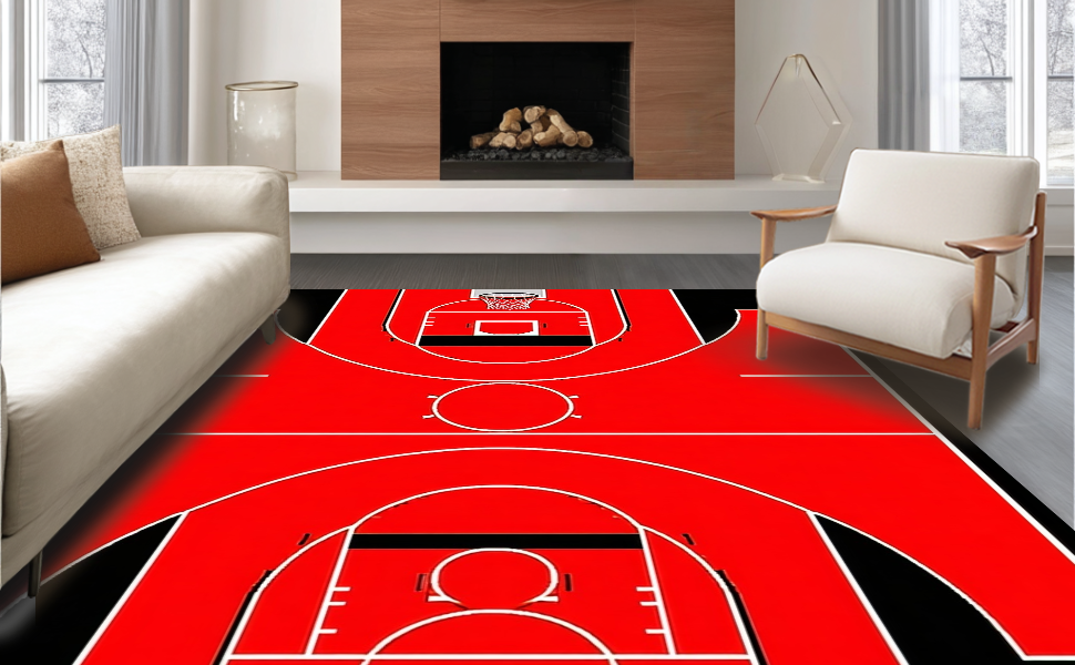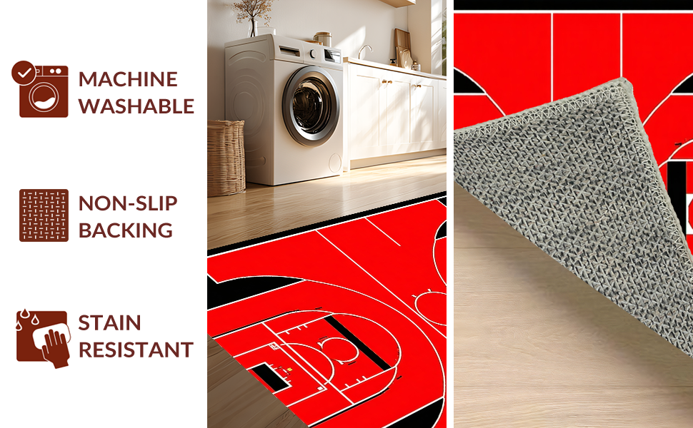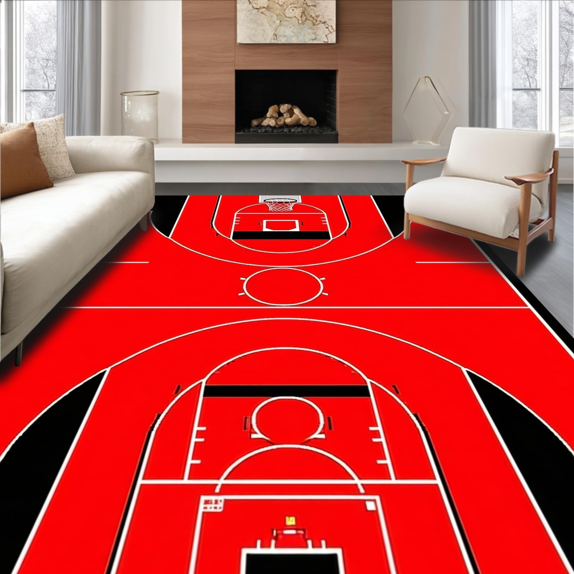 Ultra Soft Area Rug, Non Slip, Stain Resistant, Washable Area Rugs for Living Room, Bedroom, Contemporary Athletic Print Design(Red) Overview: