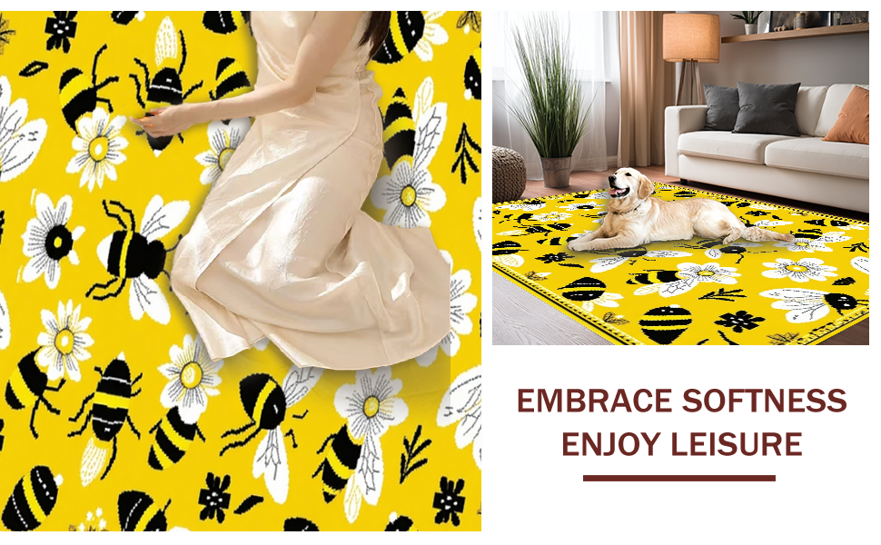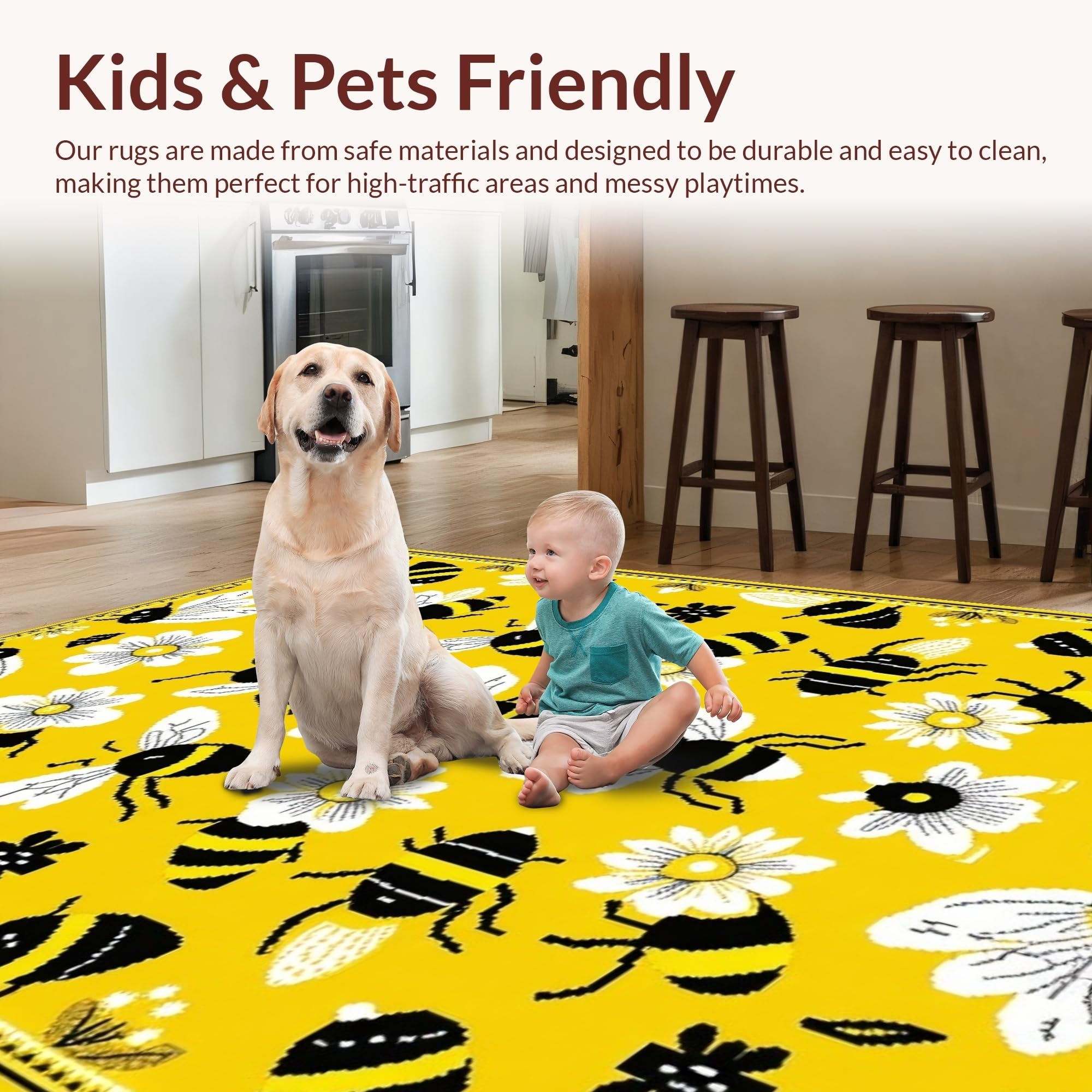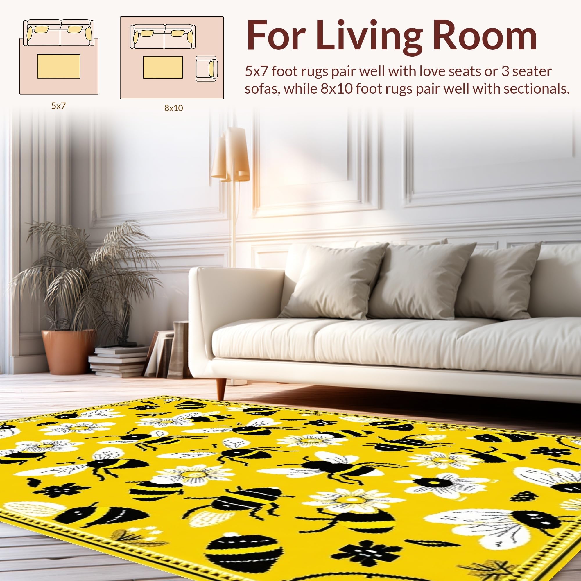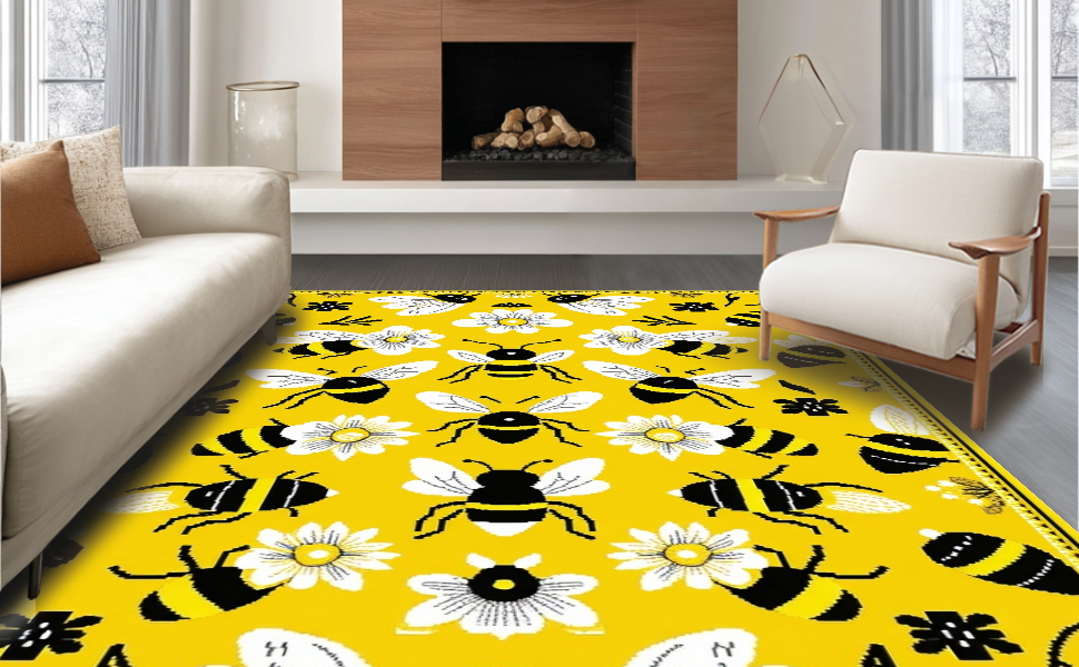 Ultra Soft Area Rug, Non Slip, Stain Resistant, Washable Area Rugs for Living Room, Bedroom, Contemporary Bee Theme Accent Piece(Yellow) Overview: