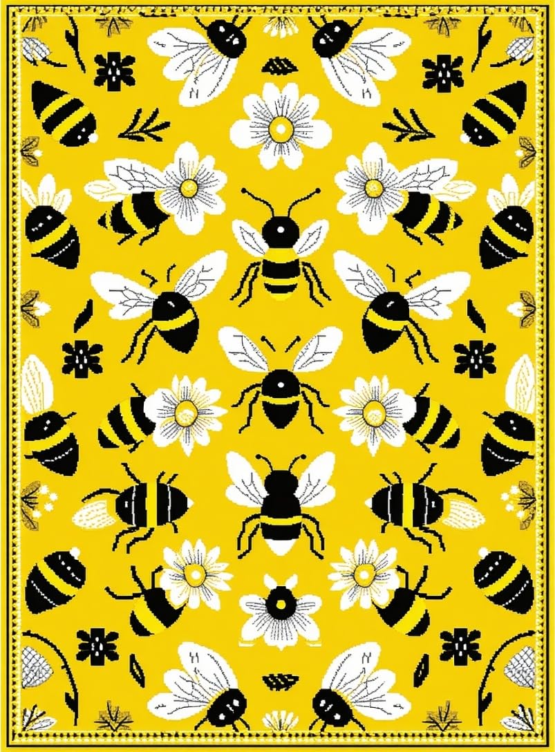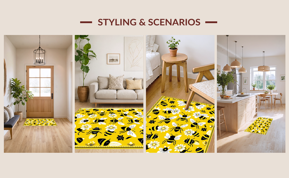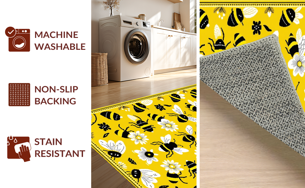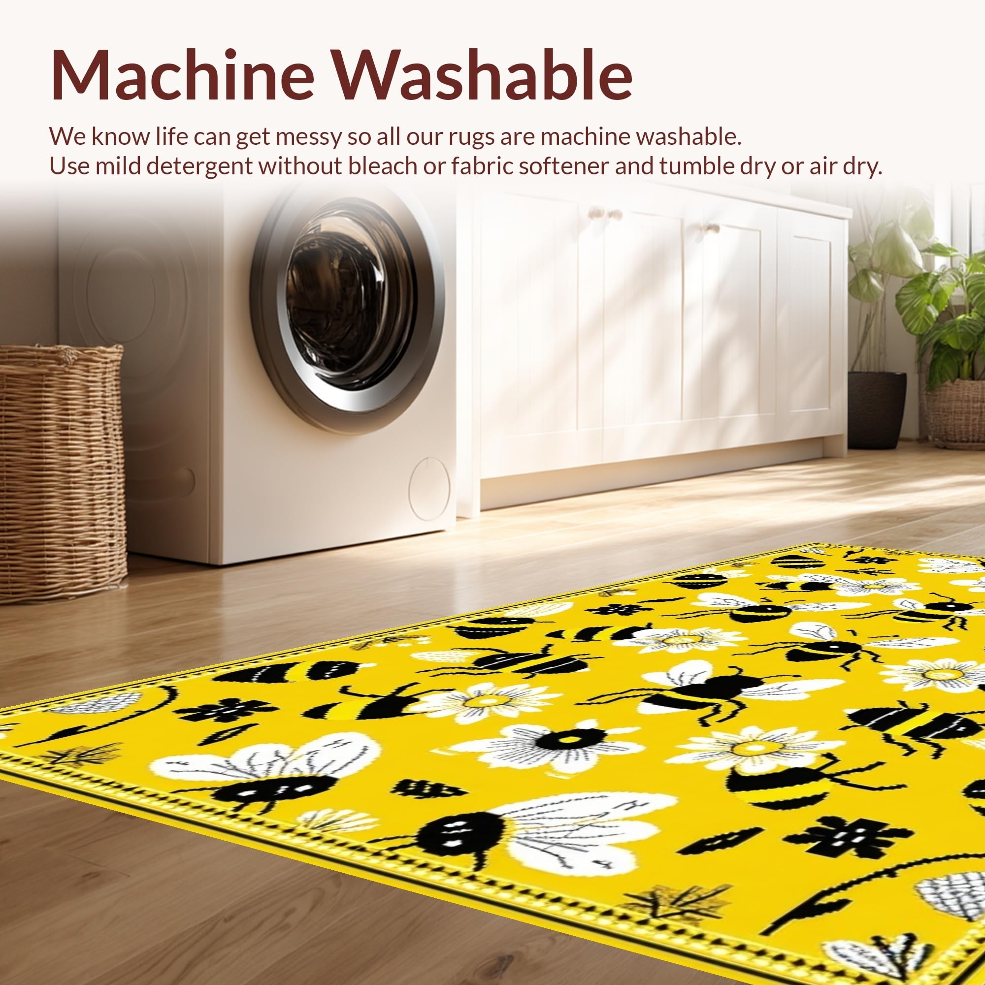 Ultra Soft Area Rug, Non Slip, Stain Resistant, Washable Area Rugs for Living Room, Bedroom, Contemporary Bee Theme Accent Piece(Yellow) Overview:
