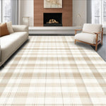 Ultra Soft Area Rug, Non Slip, Stain Resistant, Washable Area Rugs for Living Room, Bedroom, Contemporary Beige Plaid Area with Subtle Checkered Texture and Tones(Beige) Overview:
