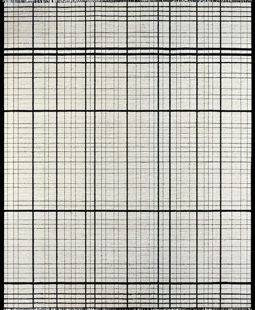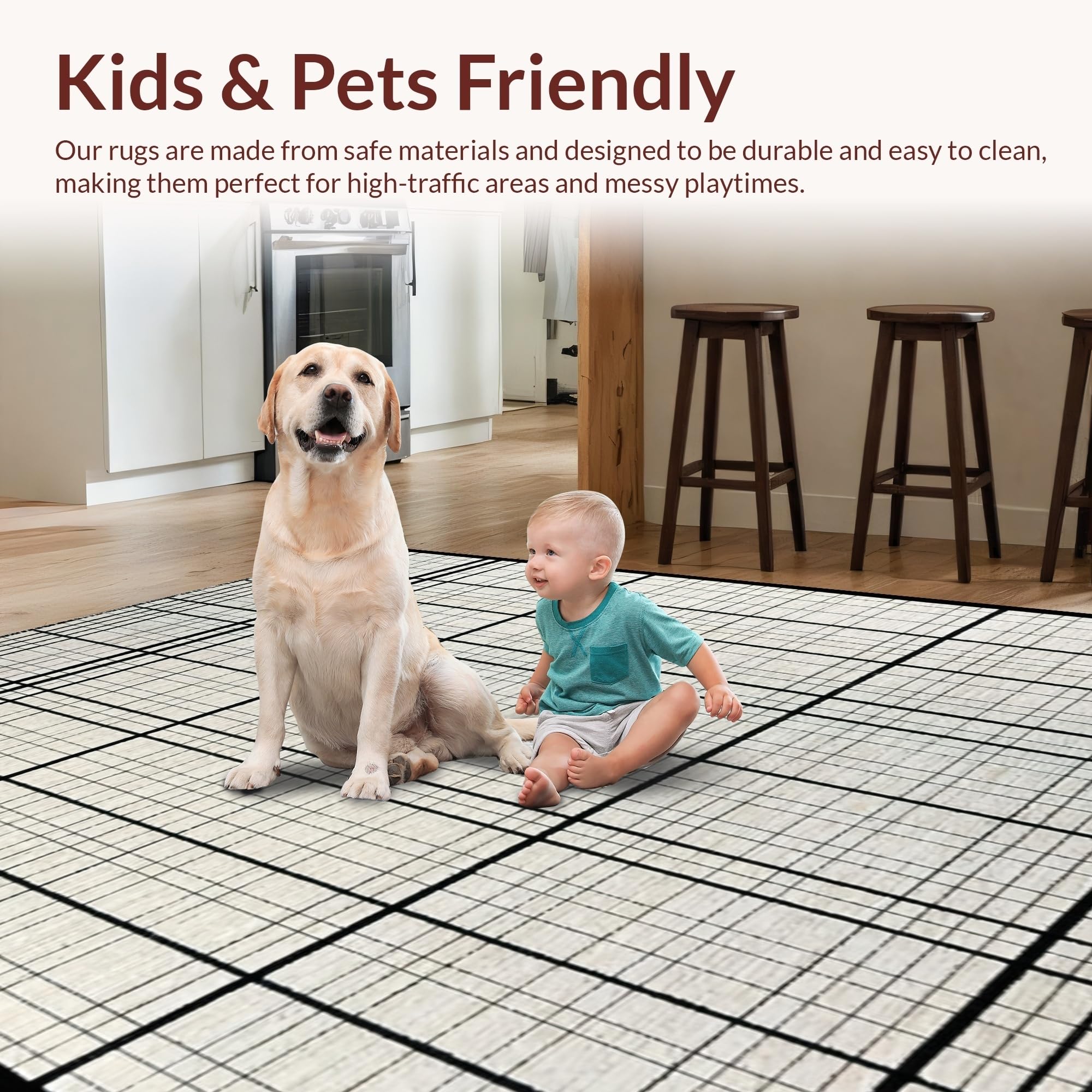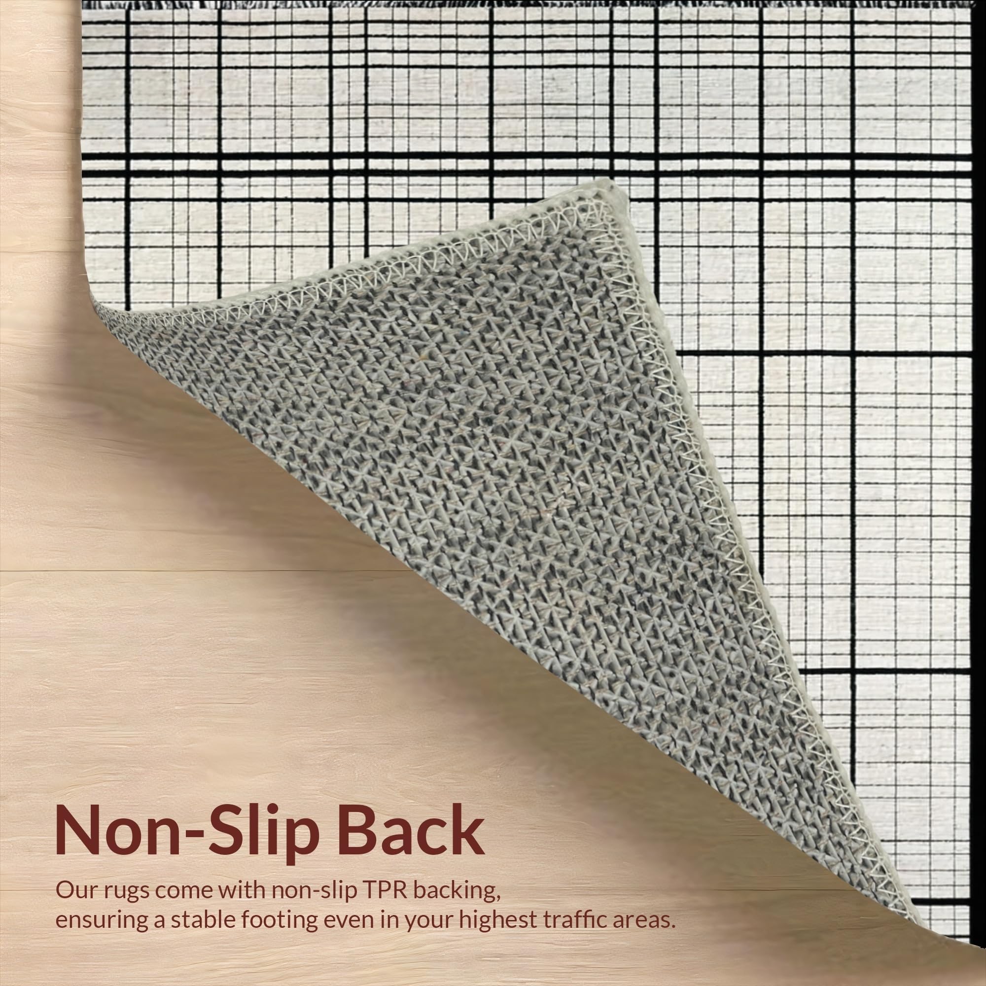 Ultra Soft Area Rug, Non Slip, Stain Resistant, Washable Area Rugs for Living Room, Bedroom, Contemporary Black and White Grid Stripe Rug with Minimalist Layered Motif(Beige) Overview: