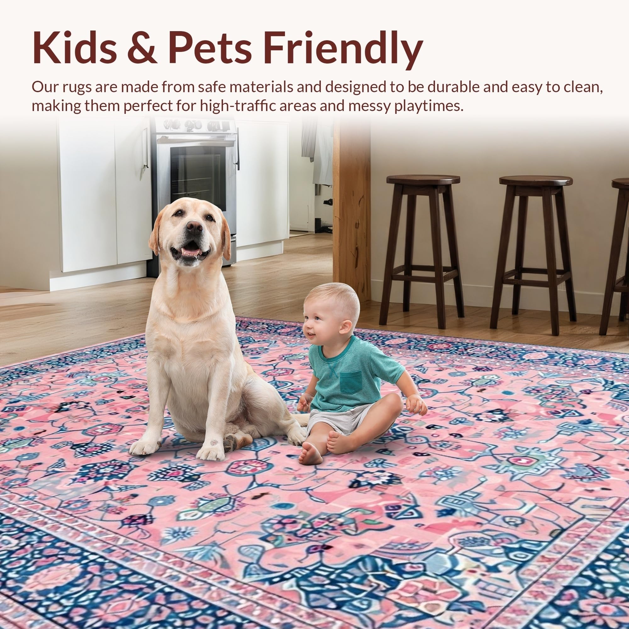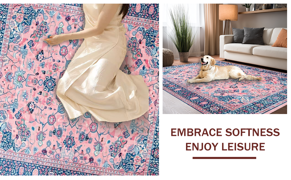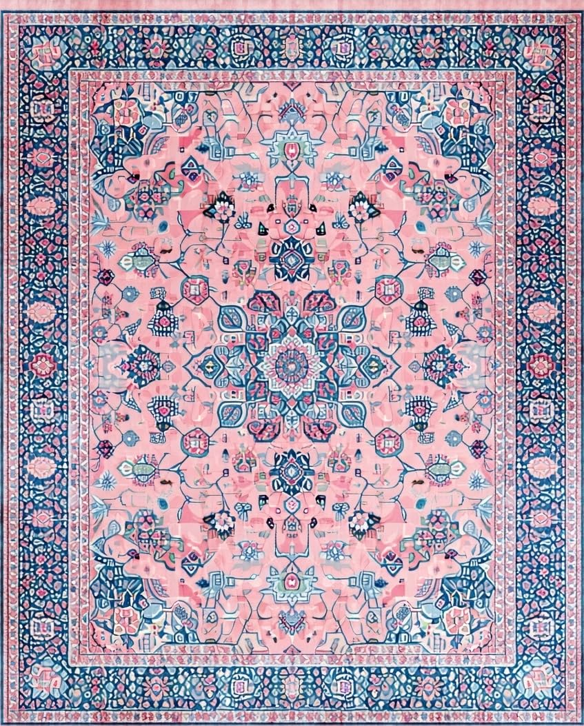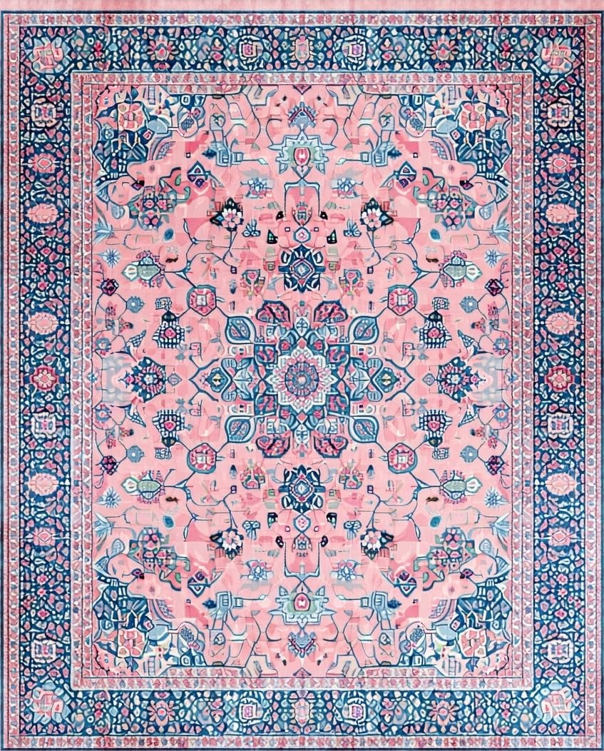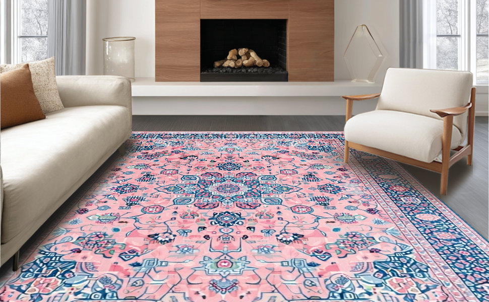 Ultra Soft Area Rug, Non Slip, Stain Resistant, Washable Area Rugs for Living Room, Bedroom, Contemporary Blue Tones Design(Pink) Overview: