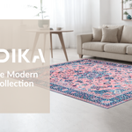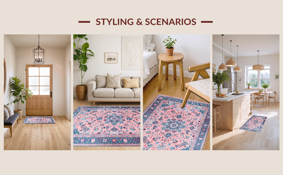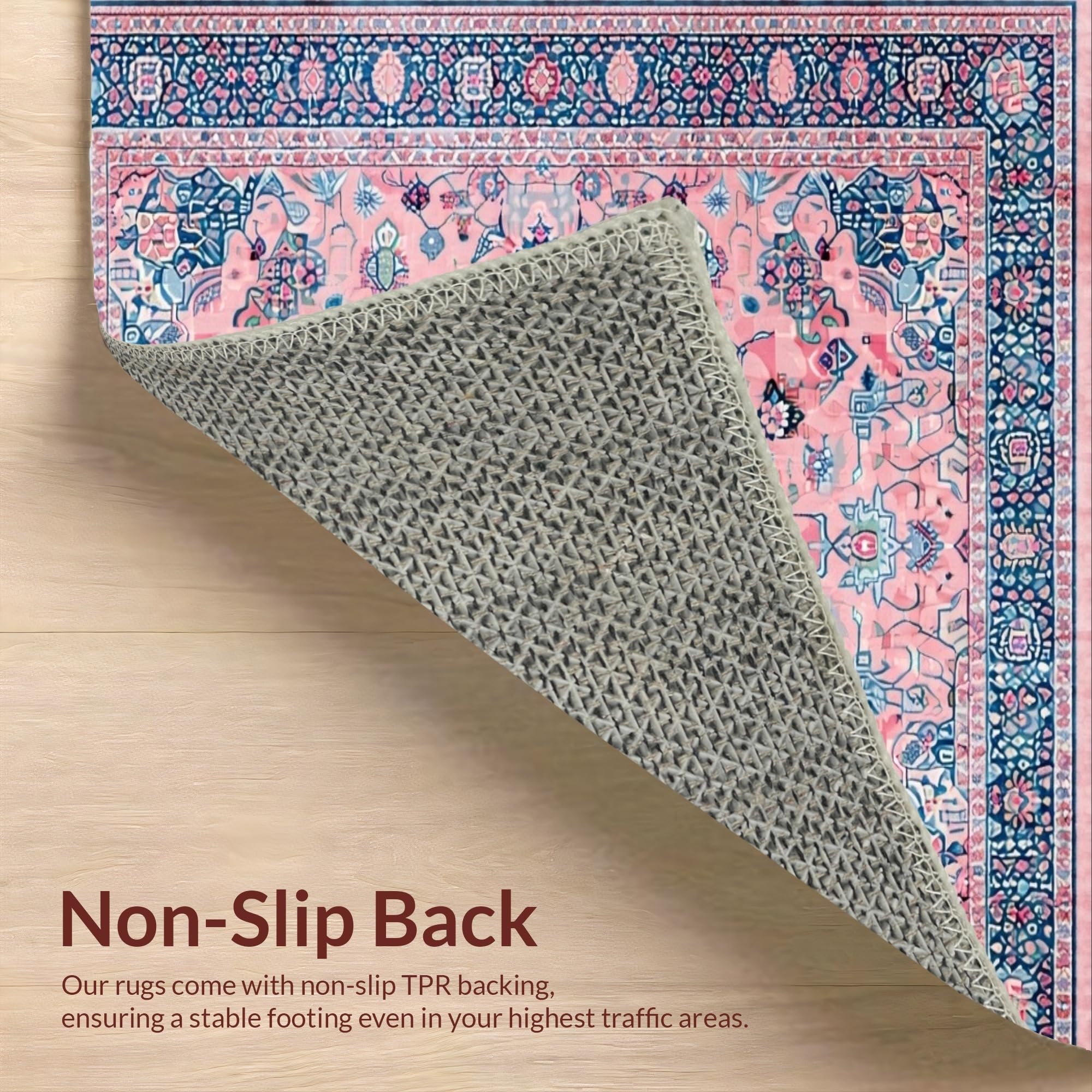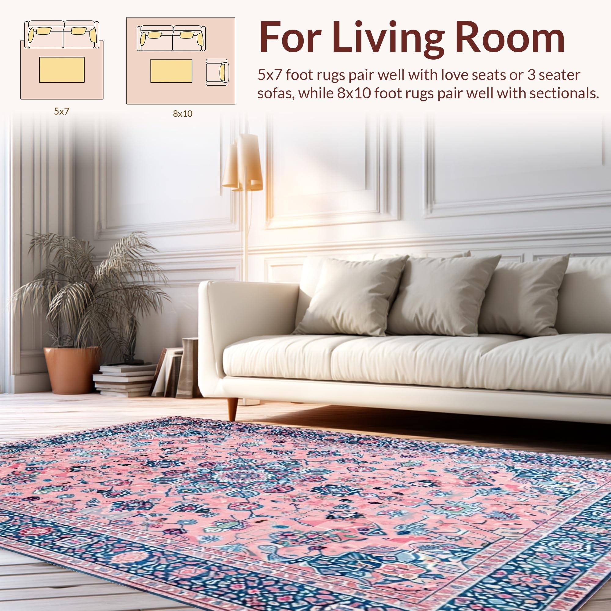 Ultra Soft Area Rug, Non Slip, Stain Resistant, Washable Area Rugs for Living Room, Bedroom, Contemporary Blue Tones Design(Pink) Overview: