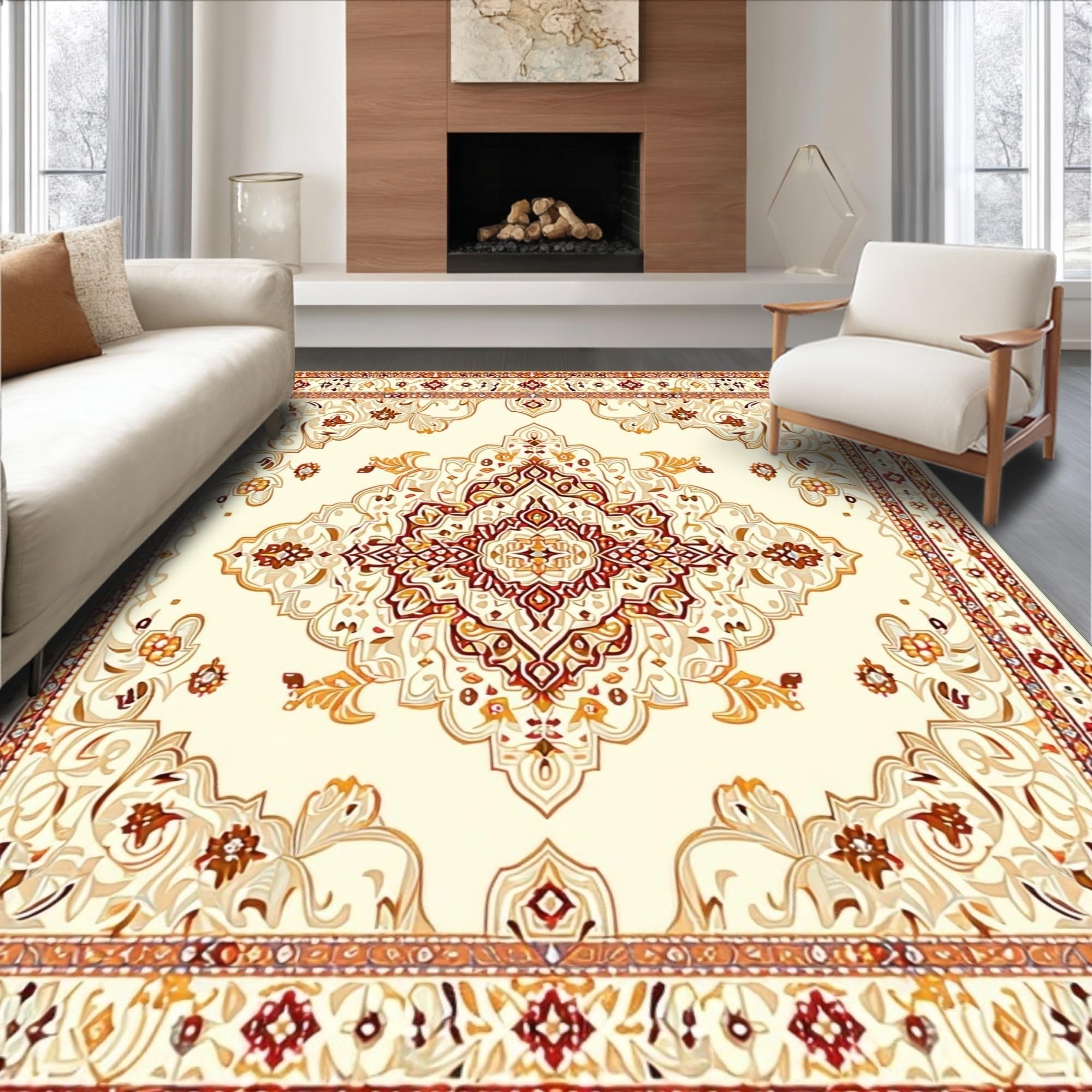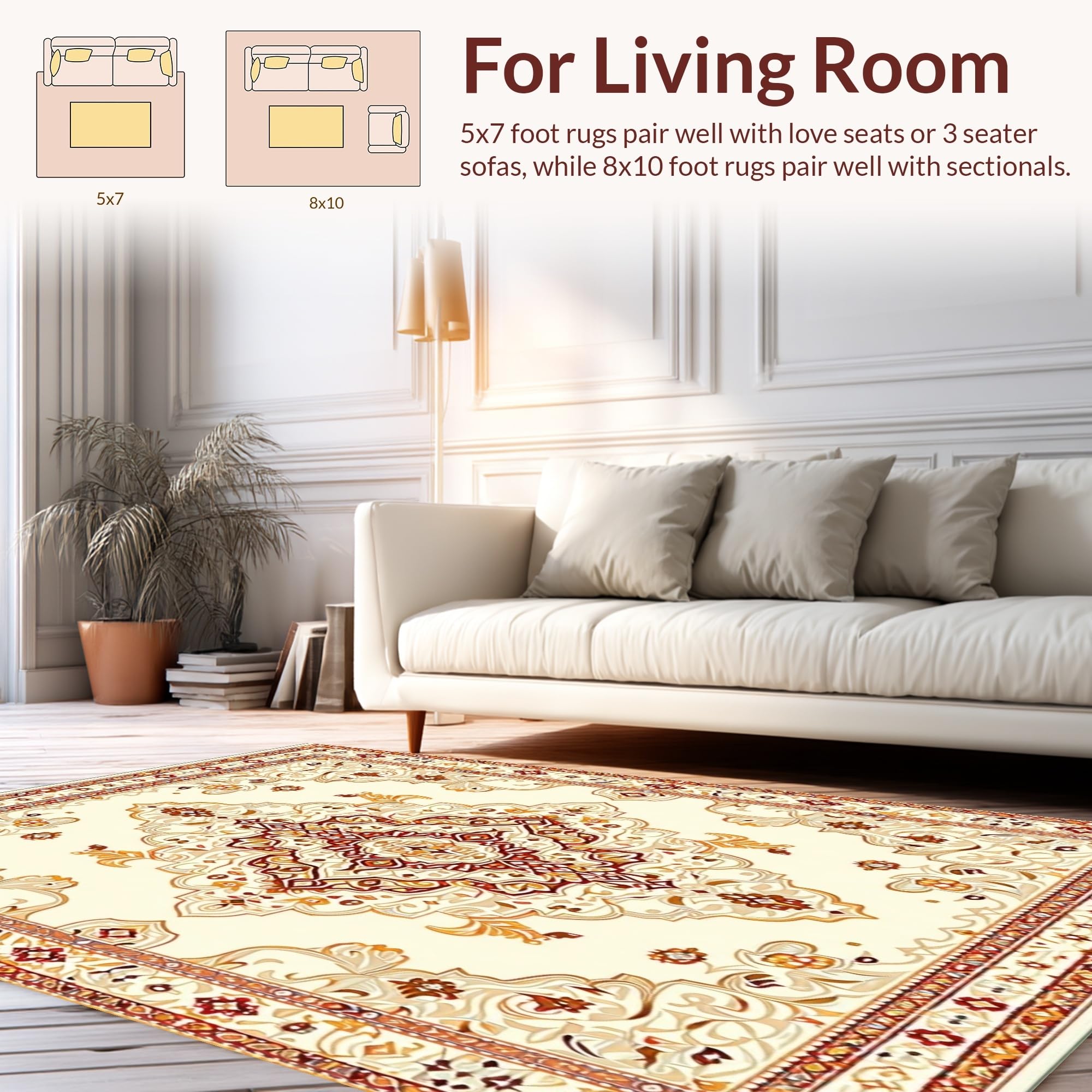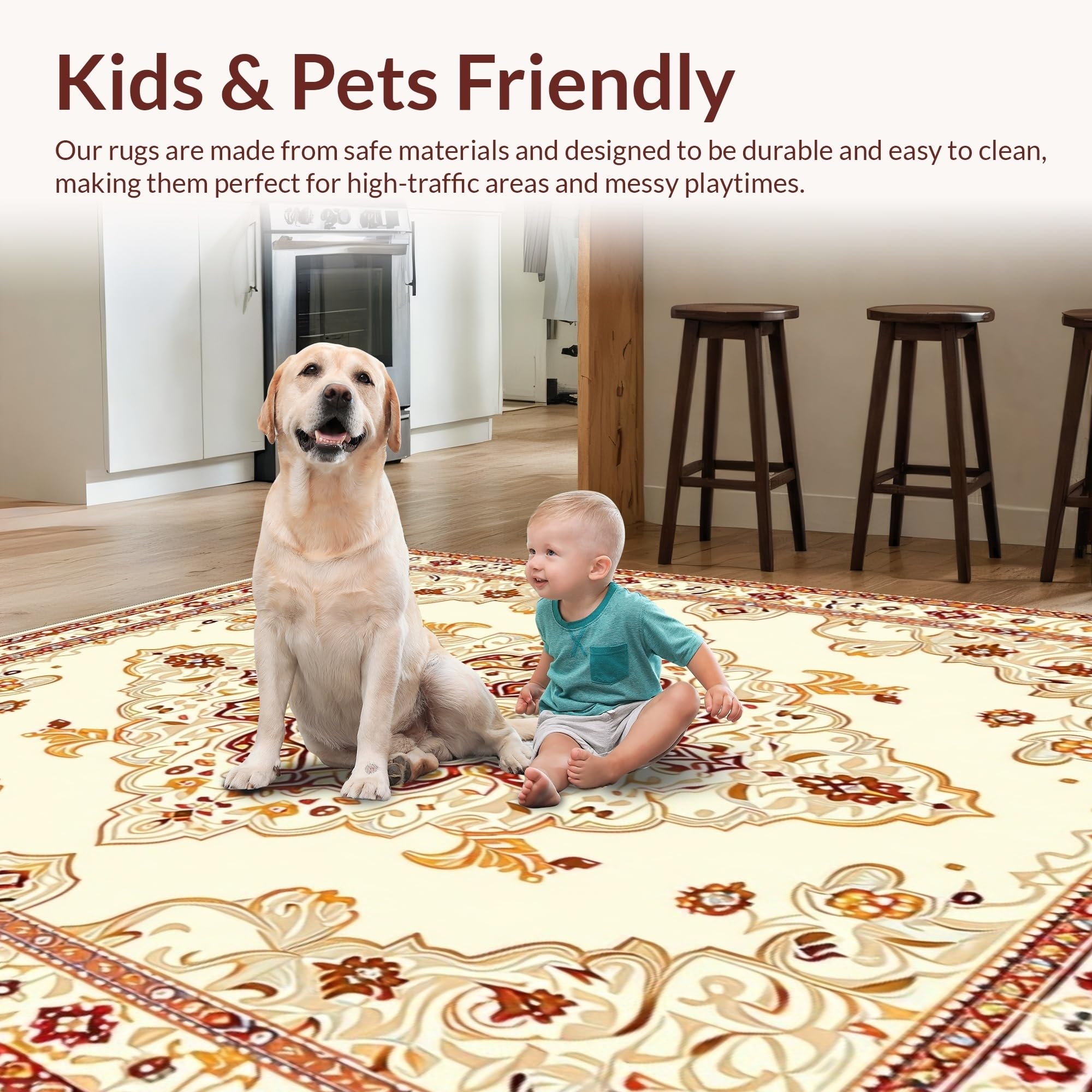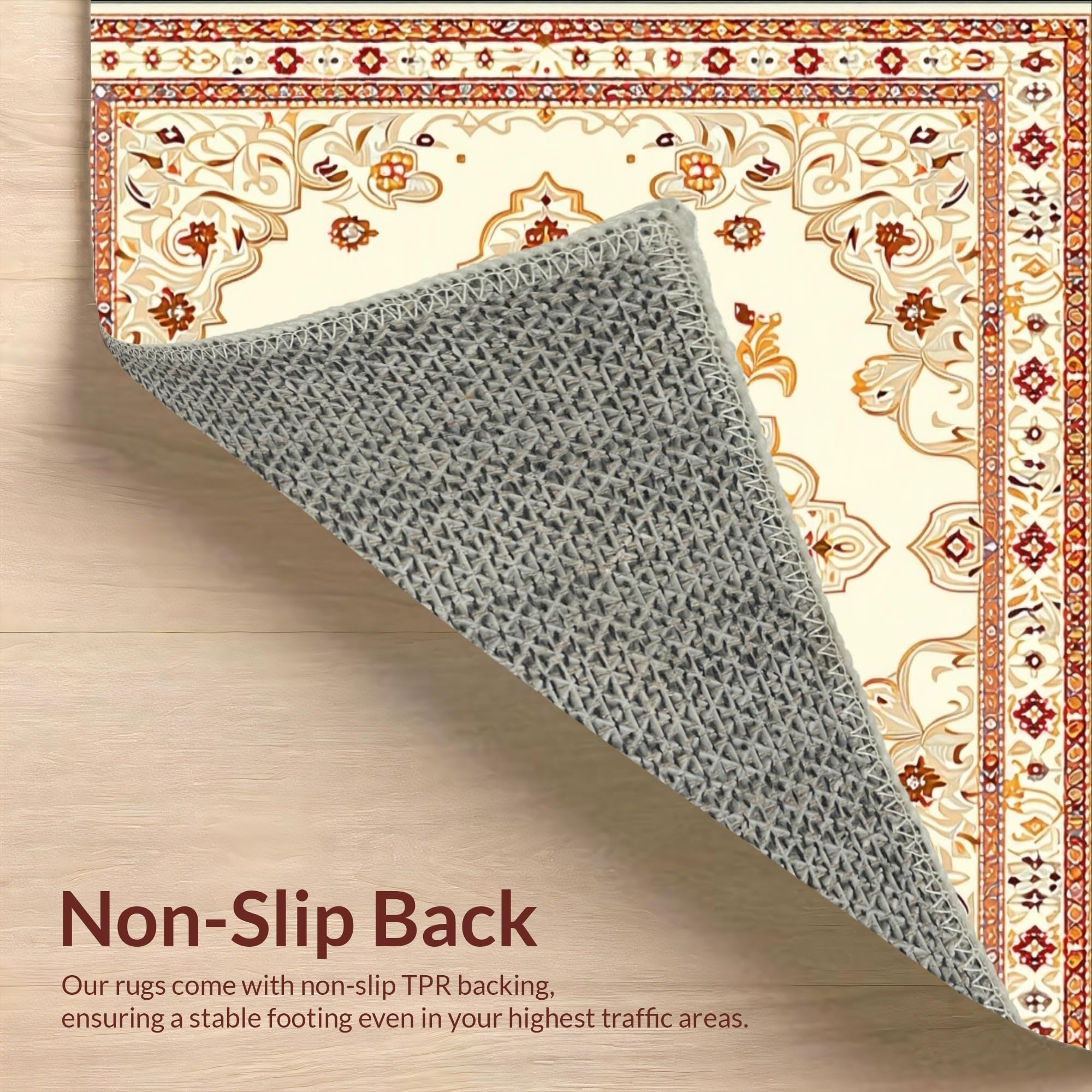 Ultra Soft Area Rug, Non Slip, Stain Resistant, Washable Area Rugs for Living Room, Bedroom, Contemporary Boho Medallion with Intricate Caramel and Cream(Ivory) Overview: