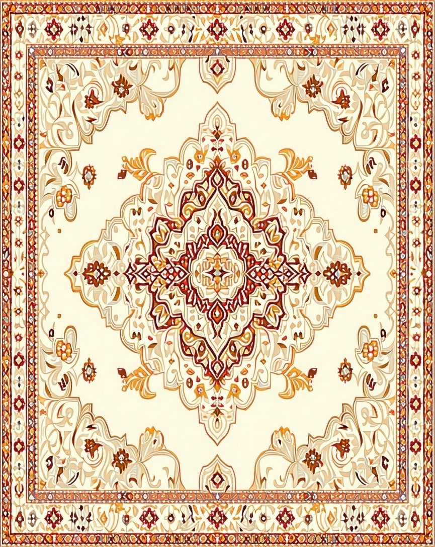 Flatwoven High Traffic Area Rug, Contemporary Boho Medallion with Intricate Caramel and Cream, Non Slip, Stain Resistant, Washable Area Rugs for Living Room, Bedroom (Ivory) Overview: