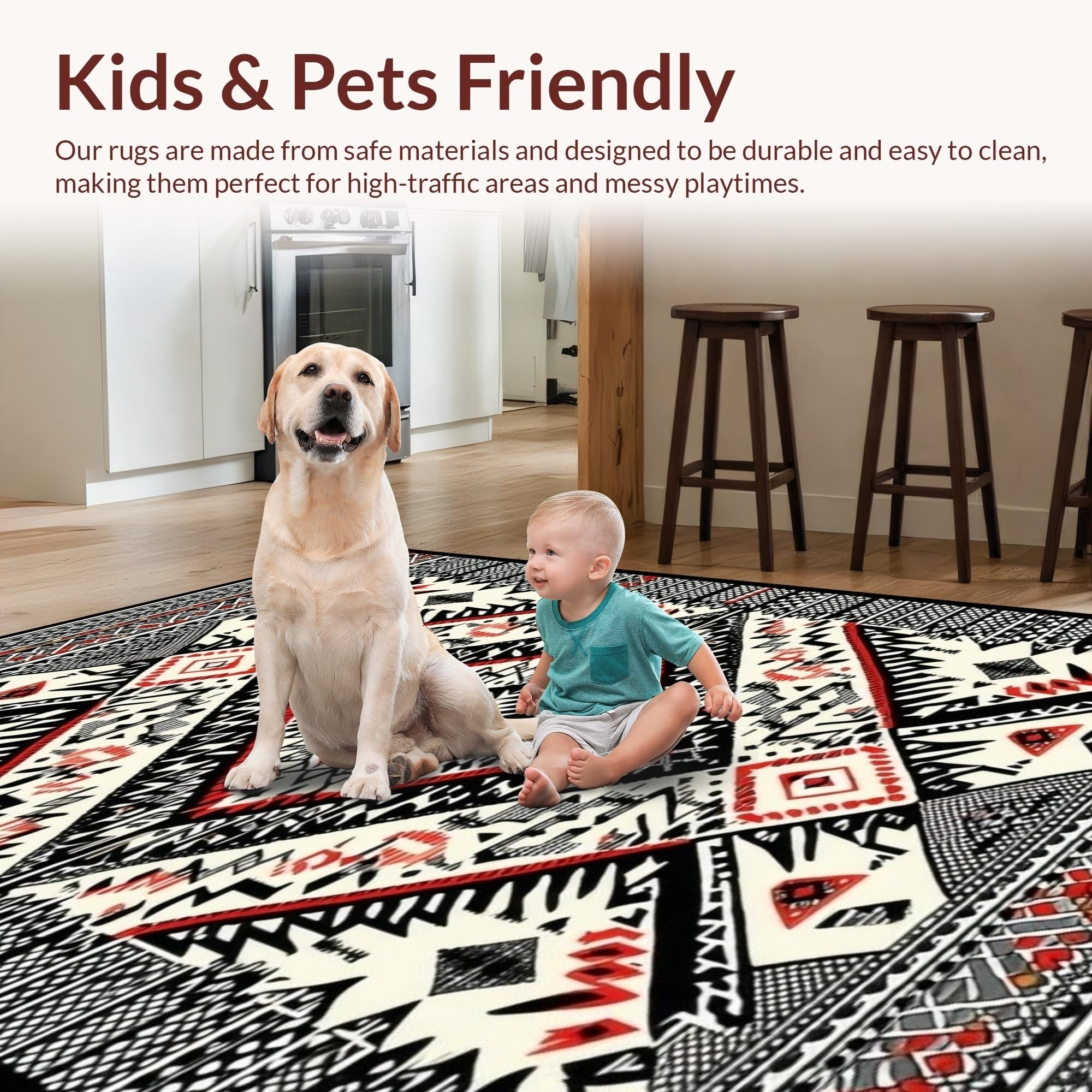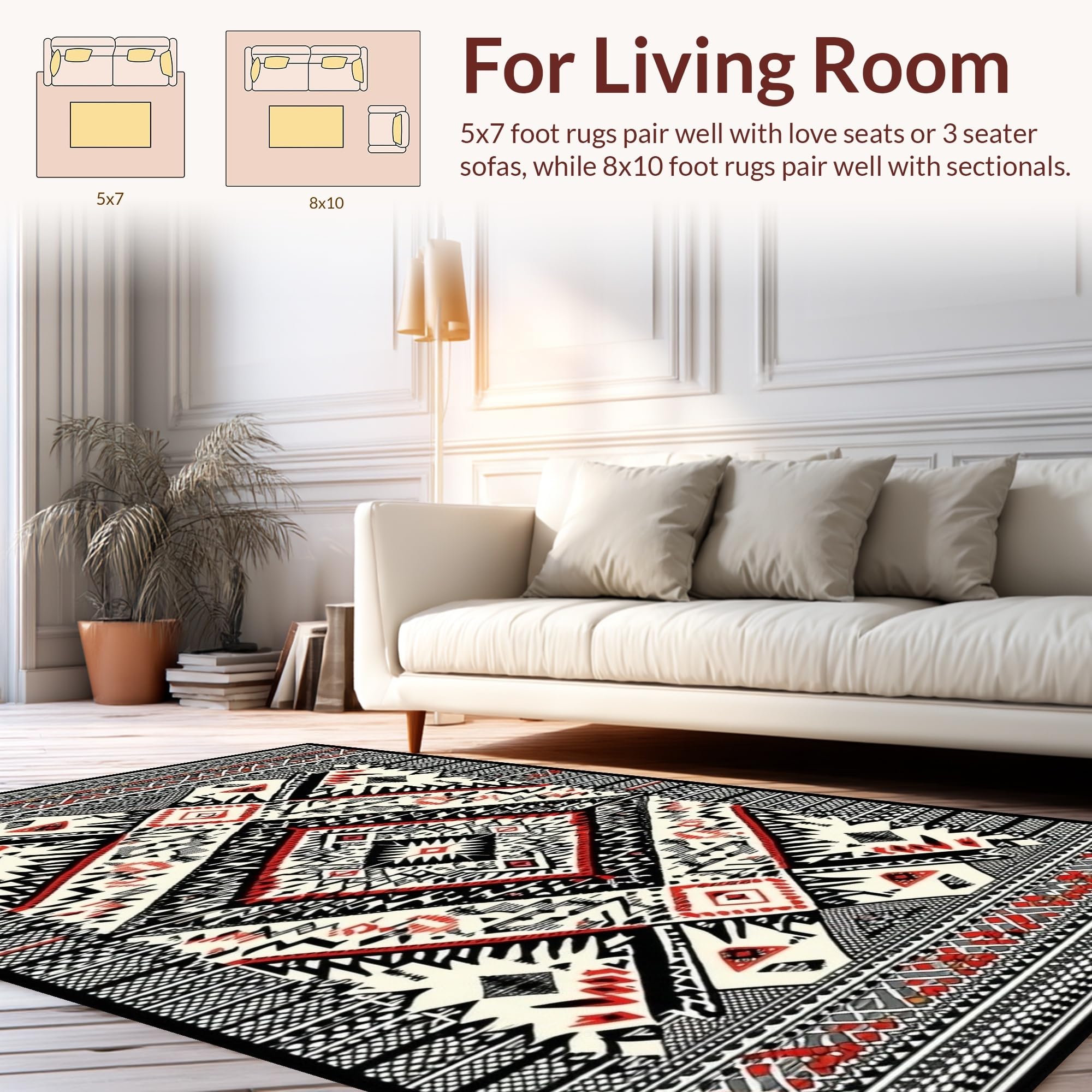 Ultra Soft Area Rug, Non Slip, Stain Resistant, Washable Area Rugs for Living Room, Bedroom, Contemporary Bold Linear Arrangement(Black) Overview: