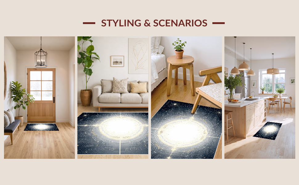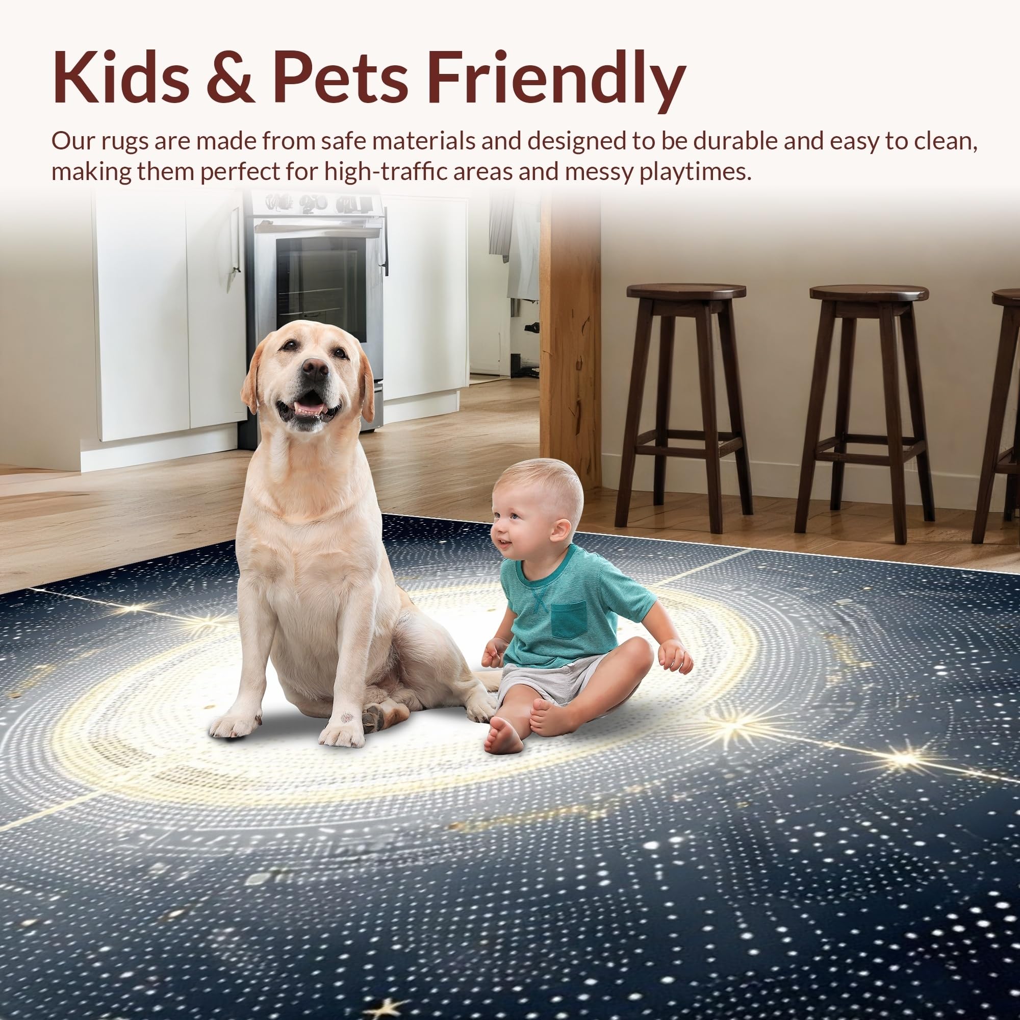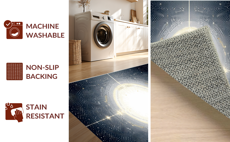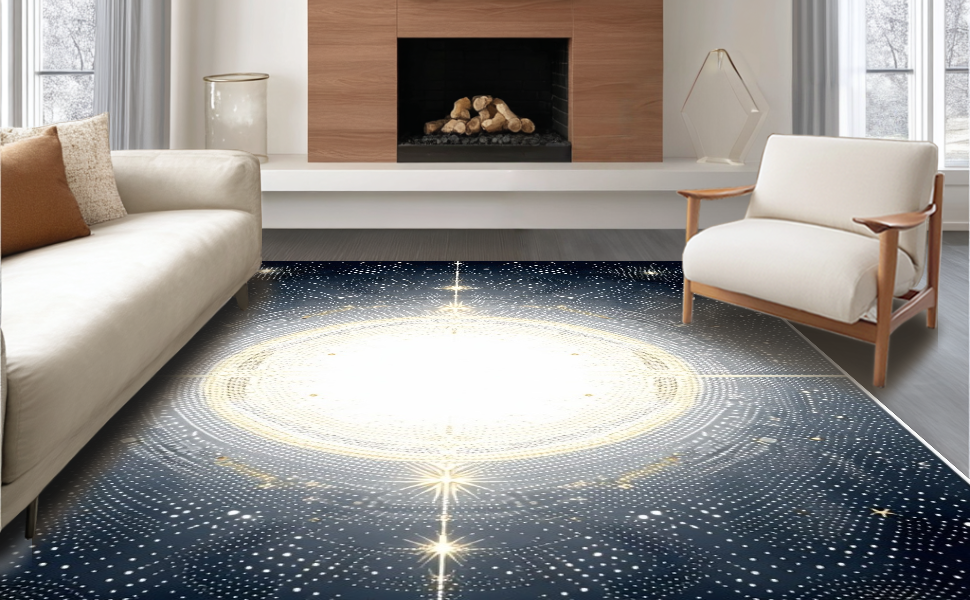 Ultra Soft Area Rug, Non Slip, Stain Resistant, Washable Area Rugs for Living Room, Bedroom, Contemporary Celestial Pattern(White) Overview:
