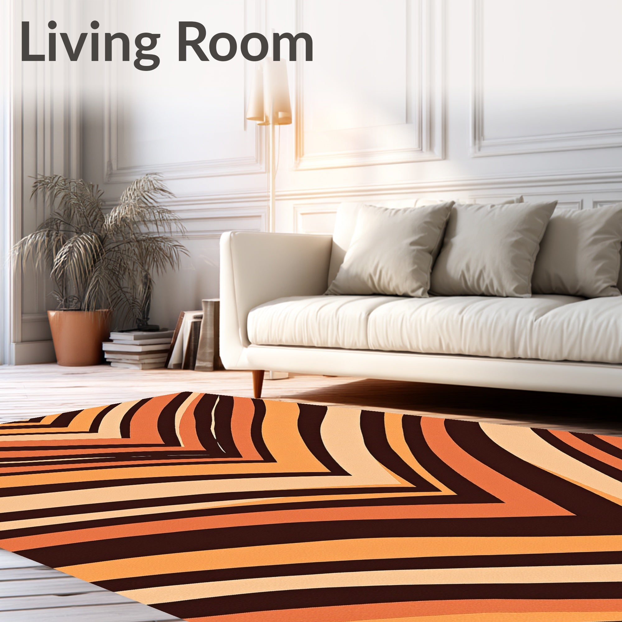 Contemporary Chevron Wave Design Featuring Warm Tangerine Accents(Brown)