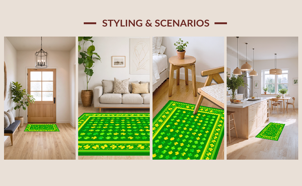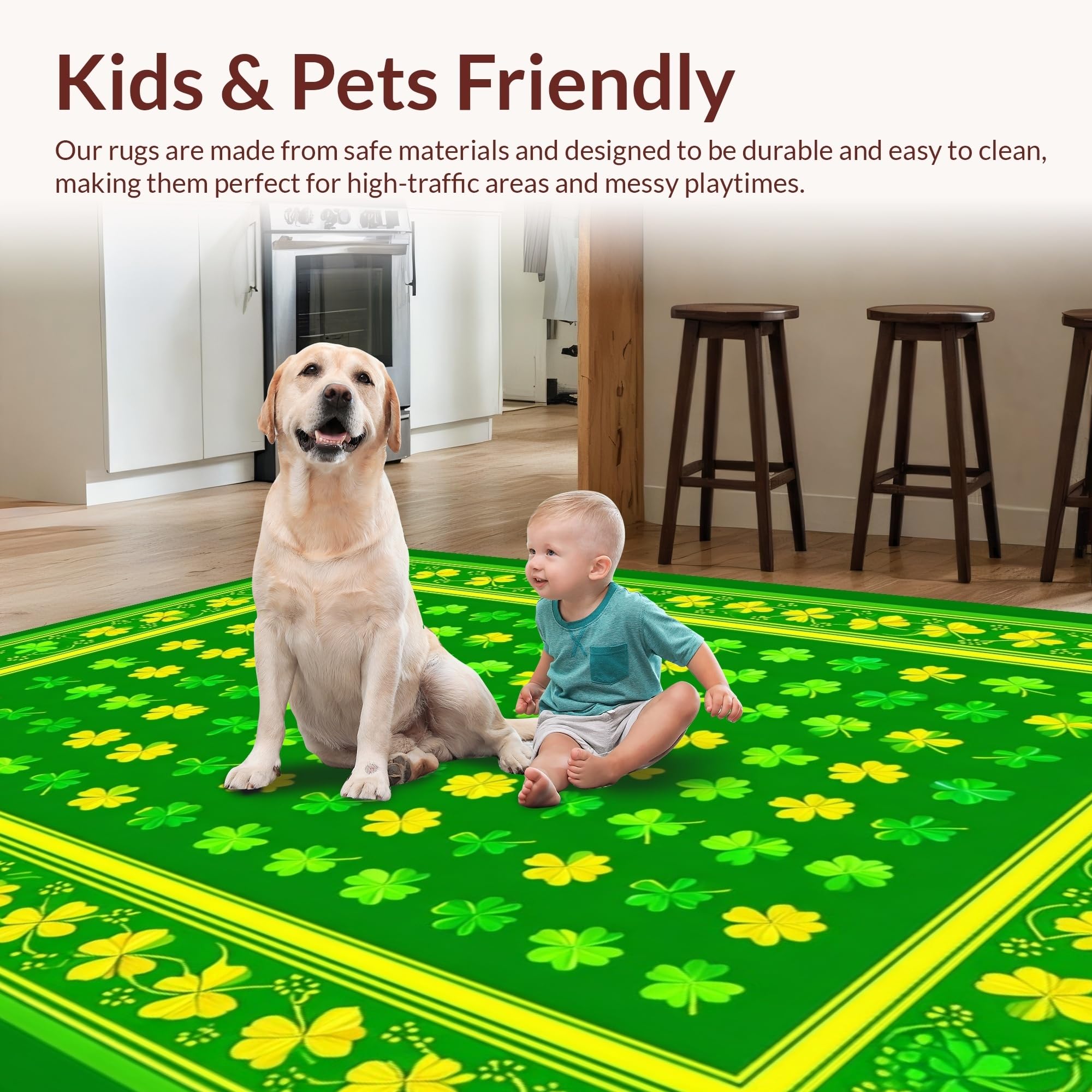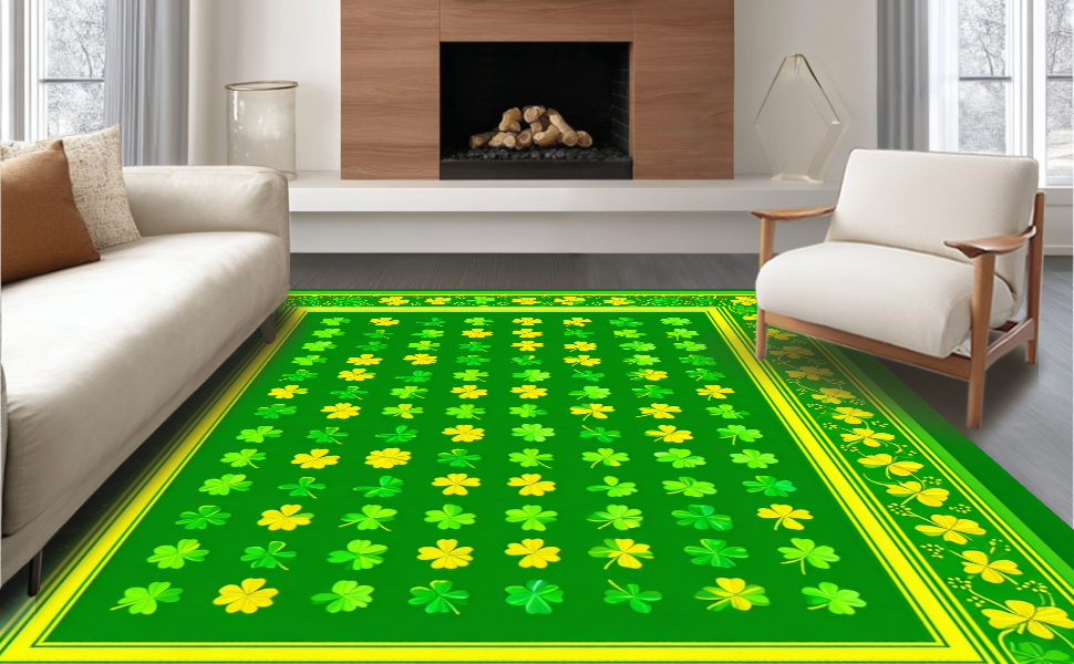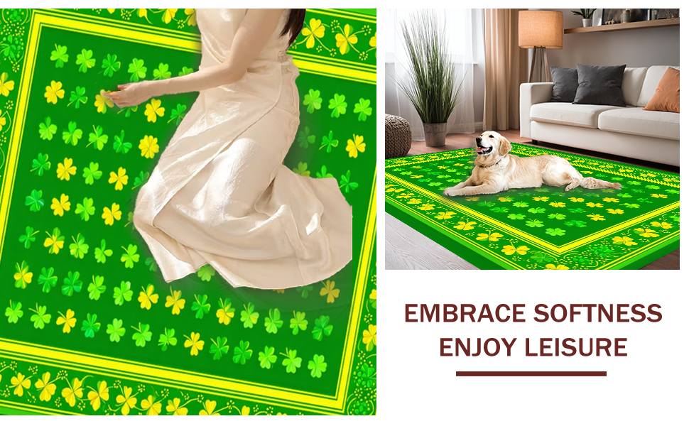 Ultra Soft Area Rug, Non Slip, Stain Resistant, Washable Area Rugs for Living Room, Bedroom, Contemporary Clover Geometric Style(Green) Overview: