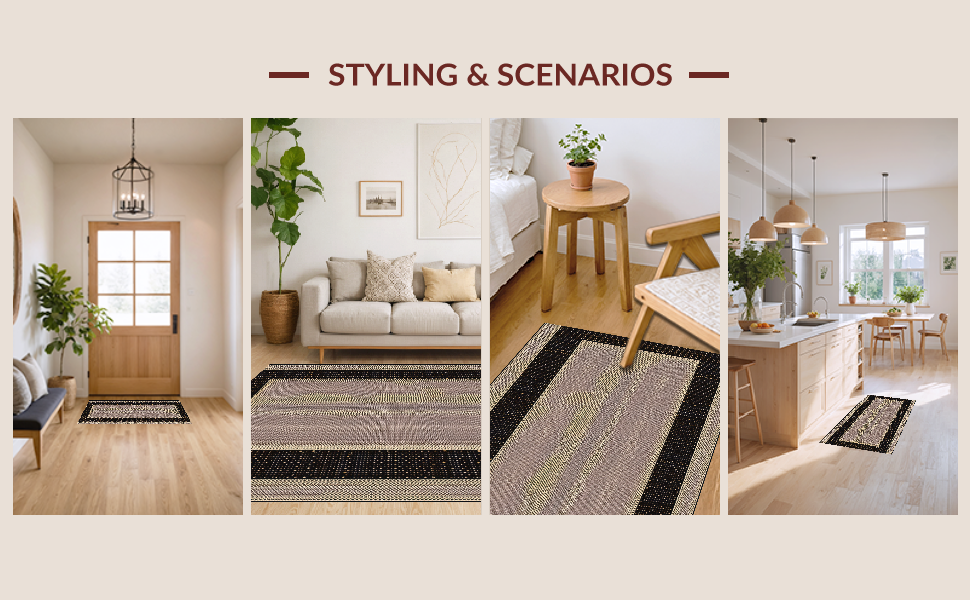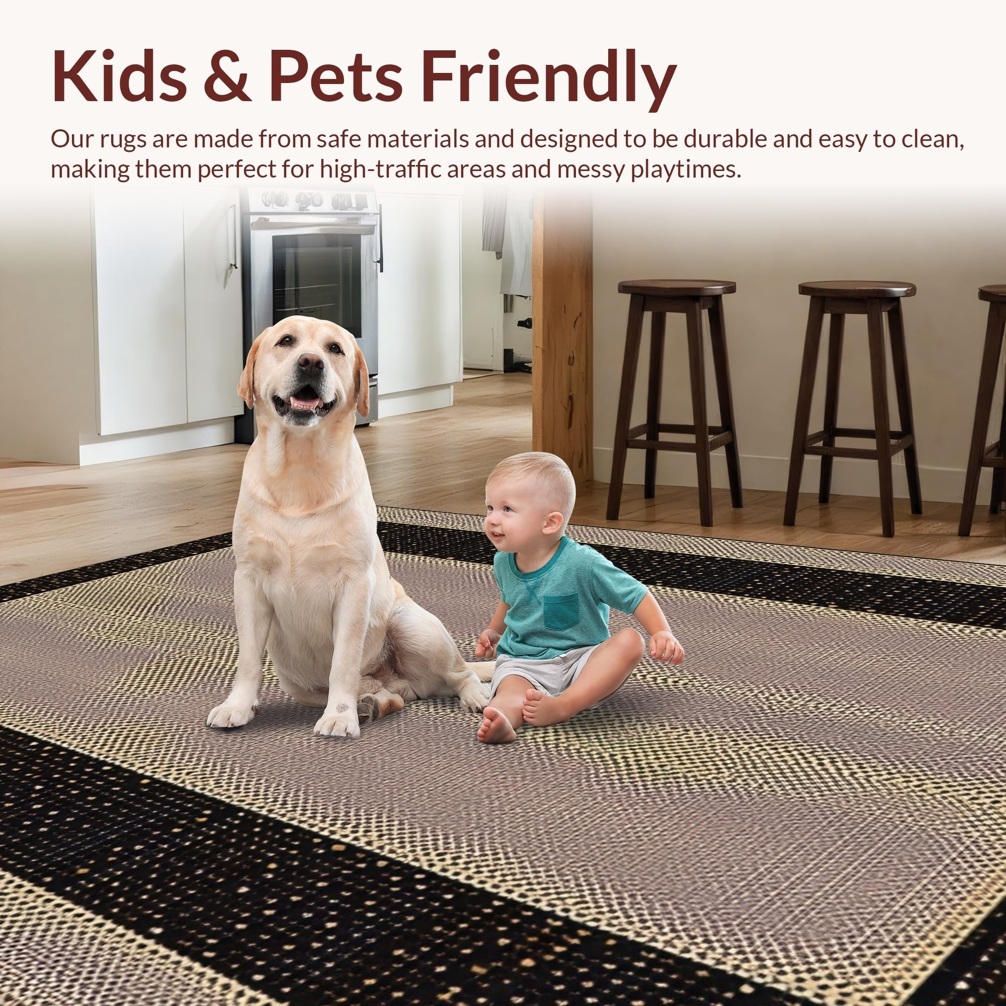 Ultra Soft Area Rug, Non Slip, Stain Resistant, Washable Area Rugs for Living Room, Bedroom, Contemporary Coffee and White Blend(Beige) Overview: