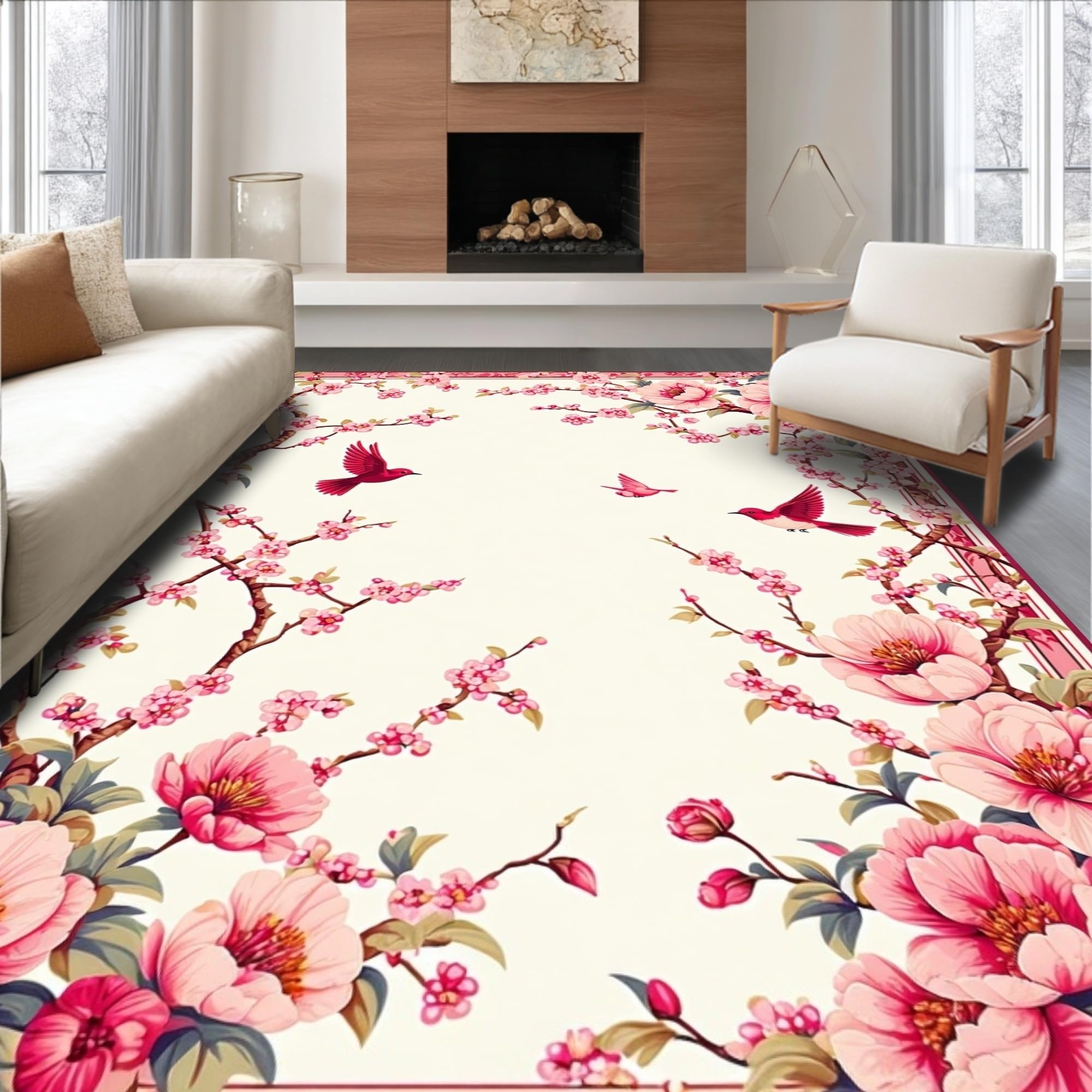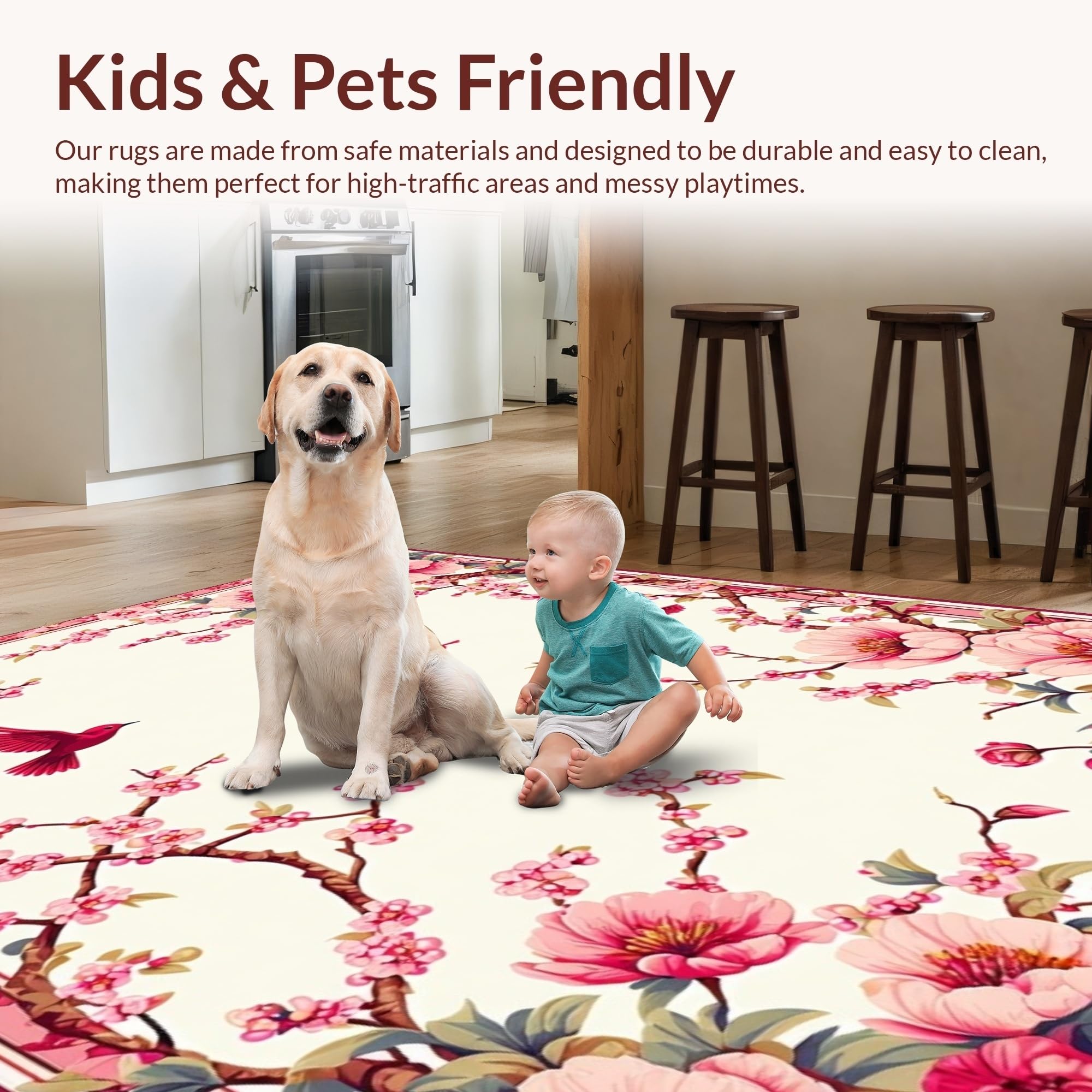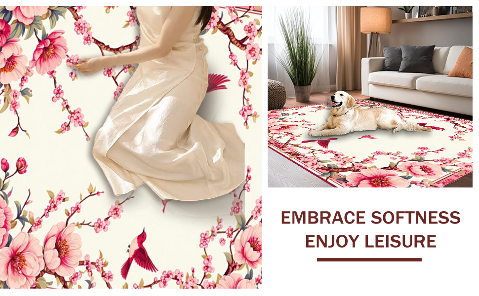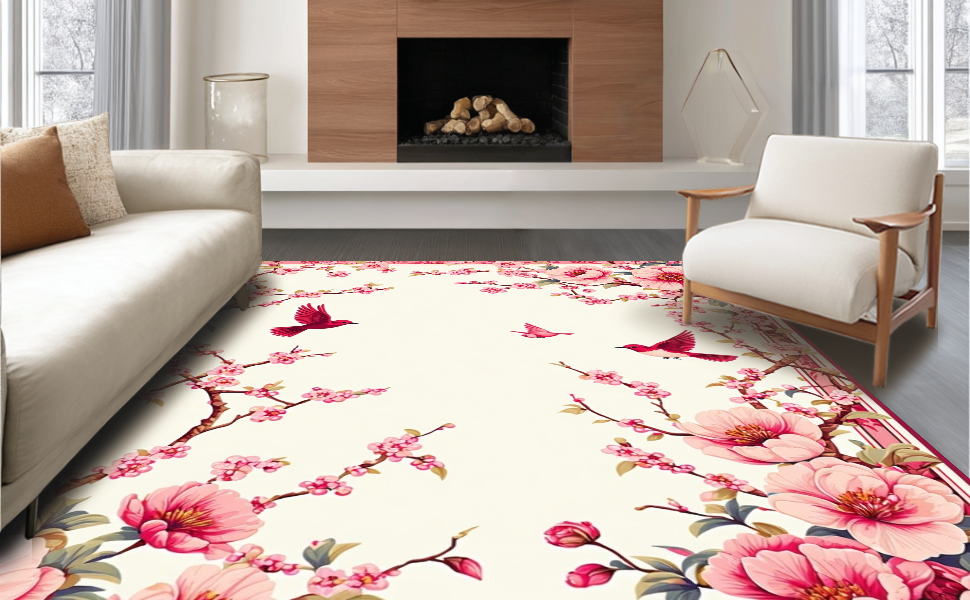 Ultra Soft Area Rug, Non Slip, Stain Resistant, Washable Area Rugs for Living Room, Bedroom, Contemporary Colorful Flower Arrangement(Pink) Overview: