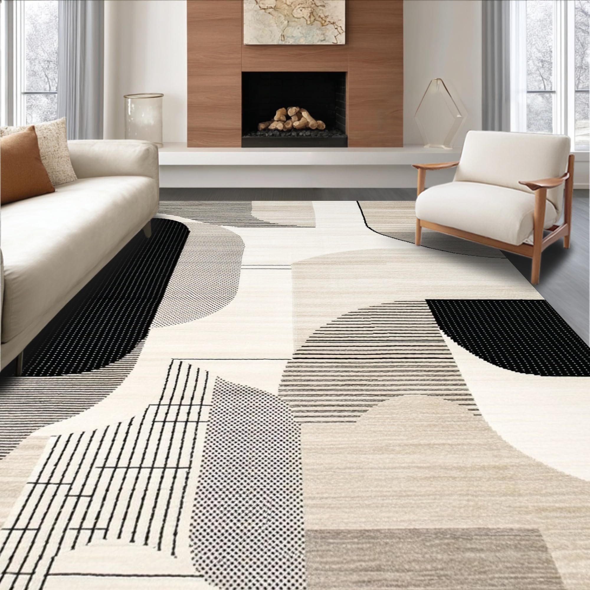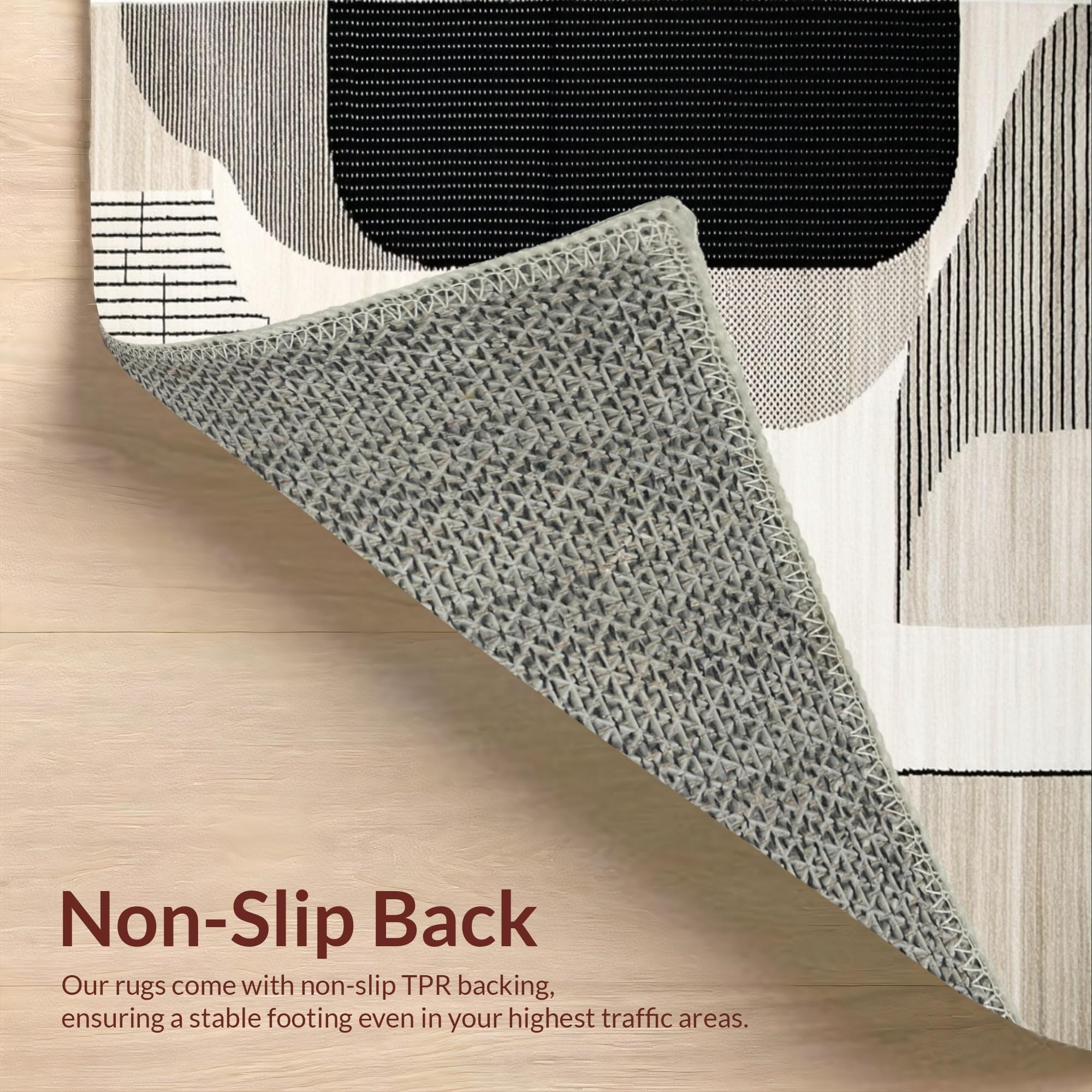 Ultra Soft Area Rug, Non Slip, Stain Resistant, Washable Area Rugs for Living Room, Bedroom, Contemporary Cream and Black Motif(Beige) Overview: