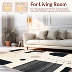Ultra Soft Area Rug, Non Slip, Stain Resistant, Washable Area Rugs for Living Room, Bedroom, Contemporary Deck Abstract Block Print Beige & Black(Beige) Overview: