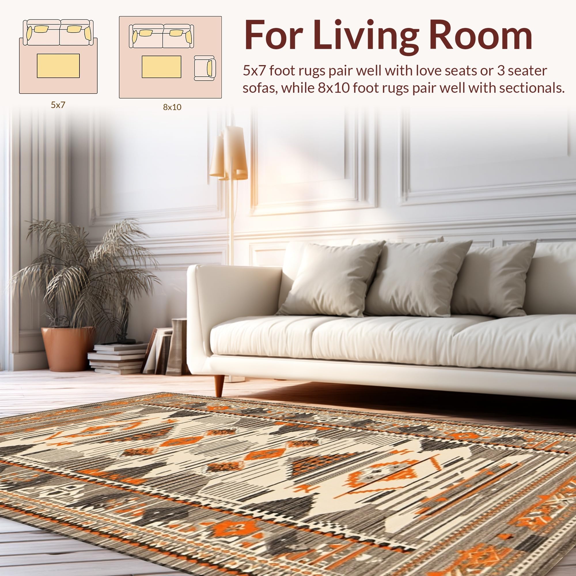 Ultra Soft Area Rug, Non Slip, Stain Resistant, Washable Area Rugs for Living Room, Bedroom, Contemporary Diamond Geometric Arrangement(Beige) Overview: