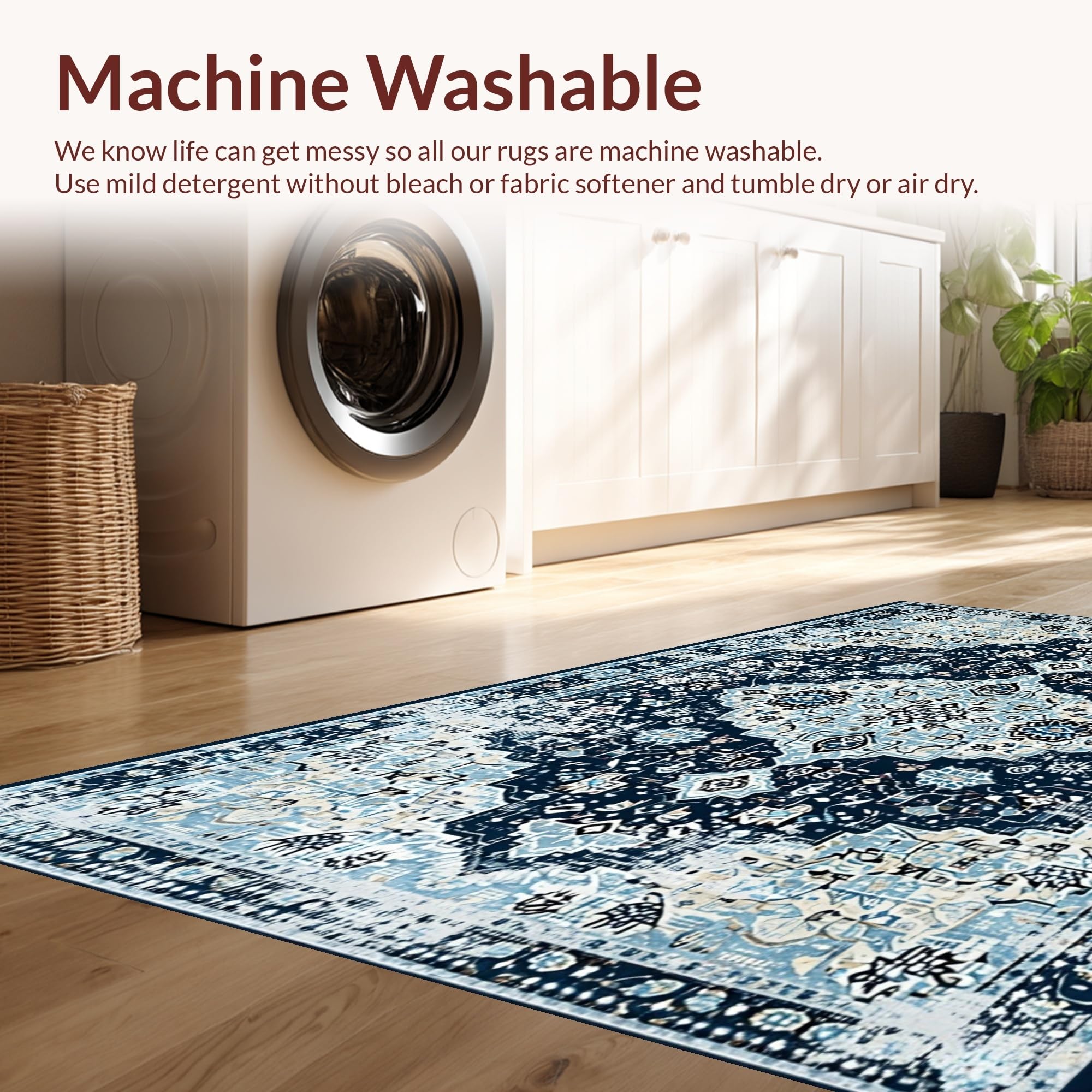 - Machine Washable: Our rugs can be easily thrown in the wash machine.
