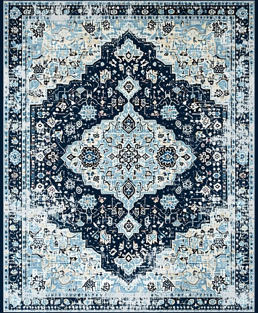 Ultra Soft Area Rug, Non Slip, Stain Resistant, Washable Area Rugs for Living Room, Bedroom, Contemporary Diamond Patterned Arrangement(Blue) Overview: