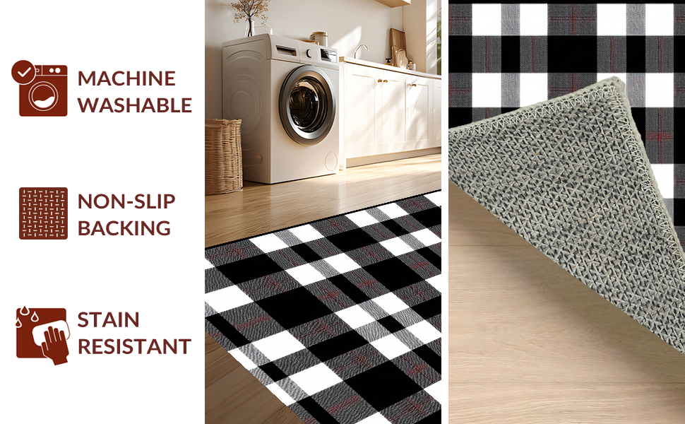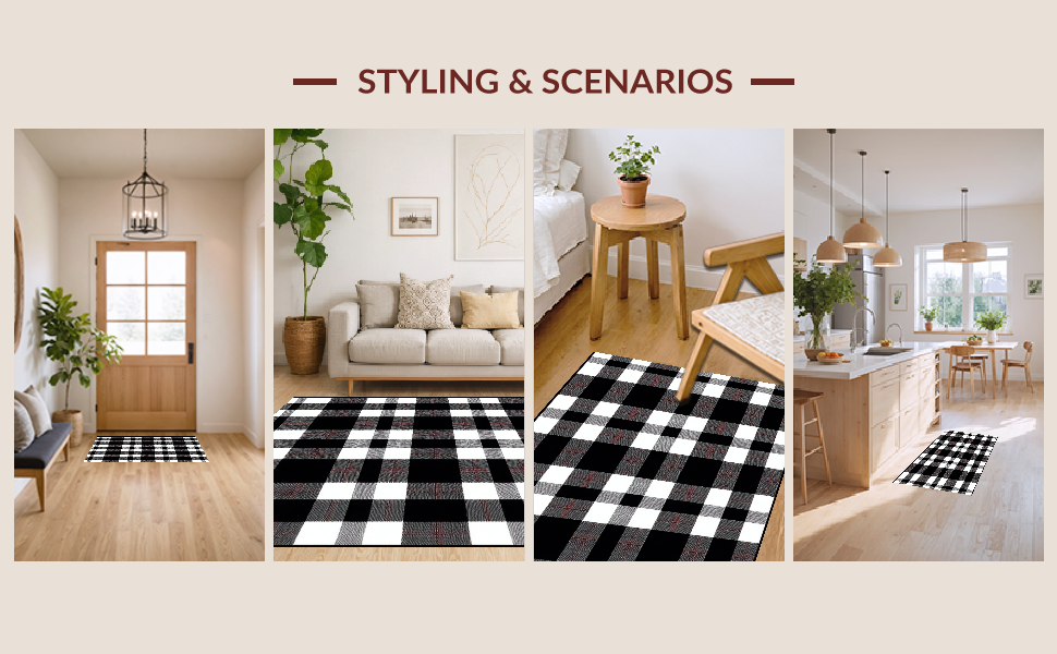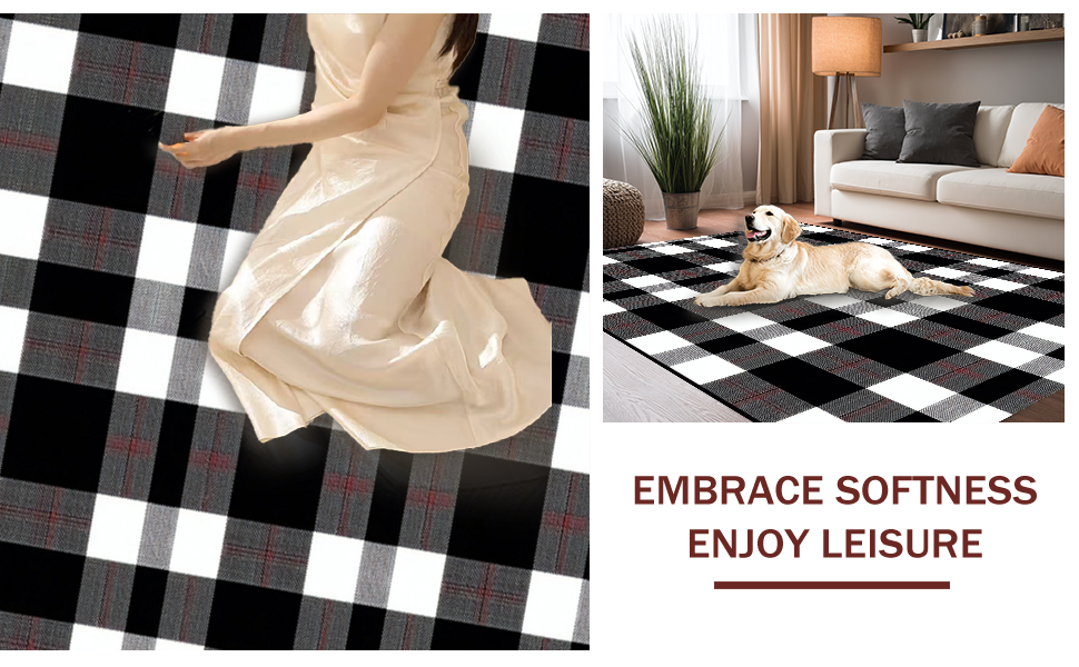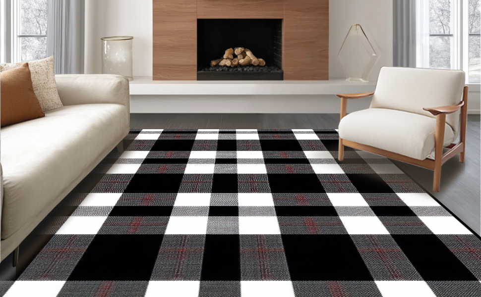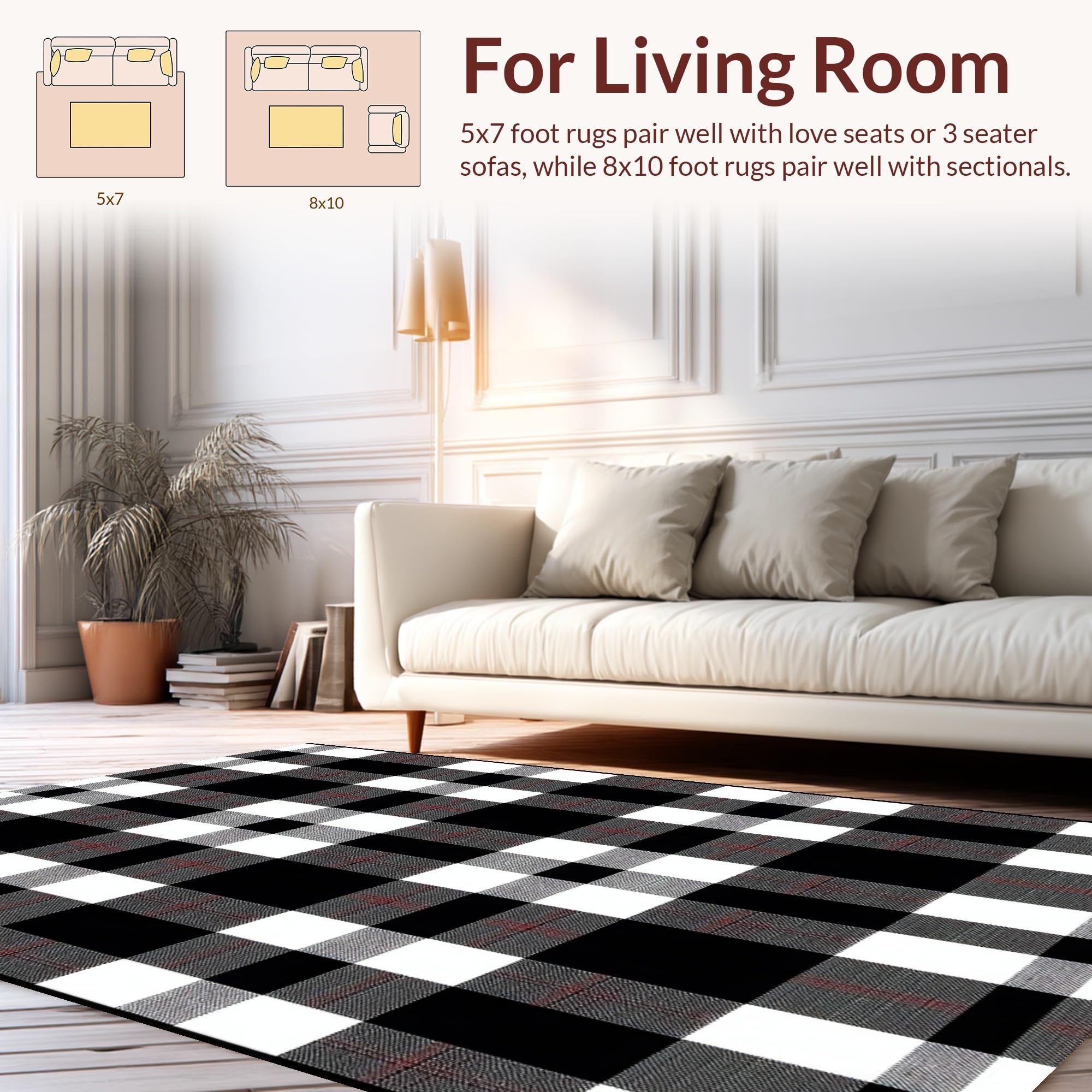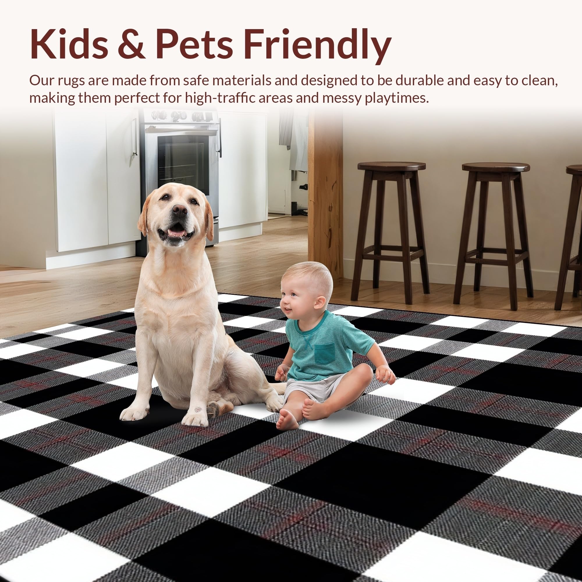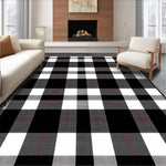 Ultra Soft Area Rug, Non Slip, Stain Resistant, Washable Area Rugs for Living Room, Bedroom, Contemporary Earth Tone Plaid Charm(Black) Overview: