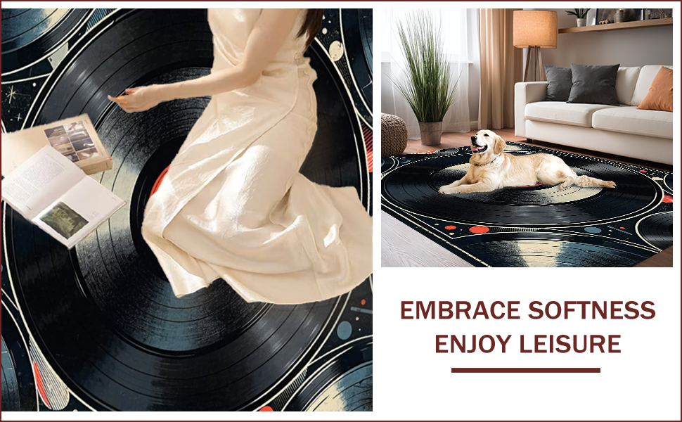 Ultra Soft Area Rug, Non Slip, Stain Resistant, Washable Area Rugs for Living Room, Bedroom, Contemporary Elegant Circular Motif(Black) Overview: