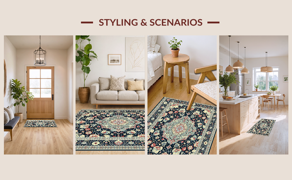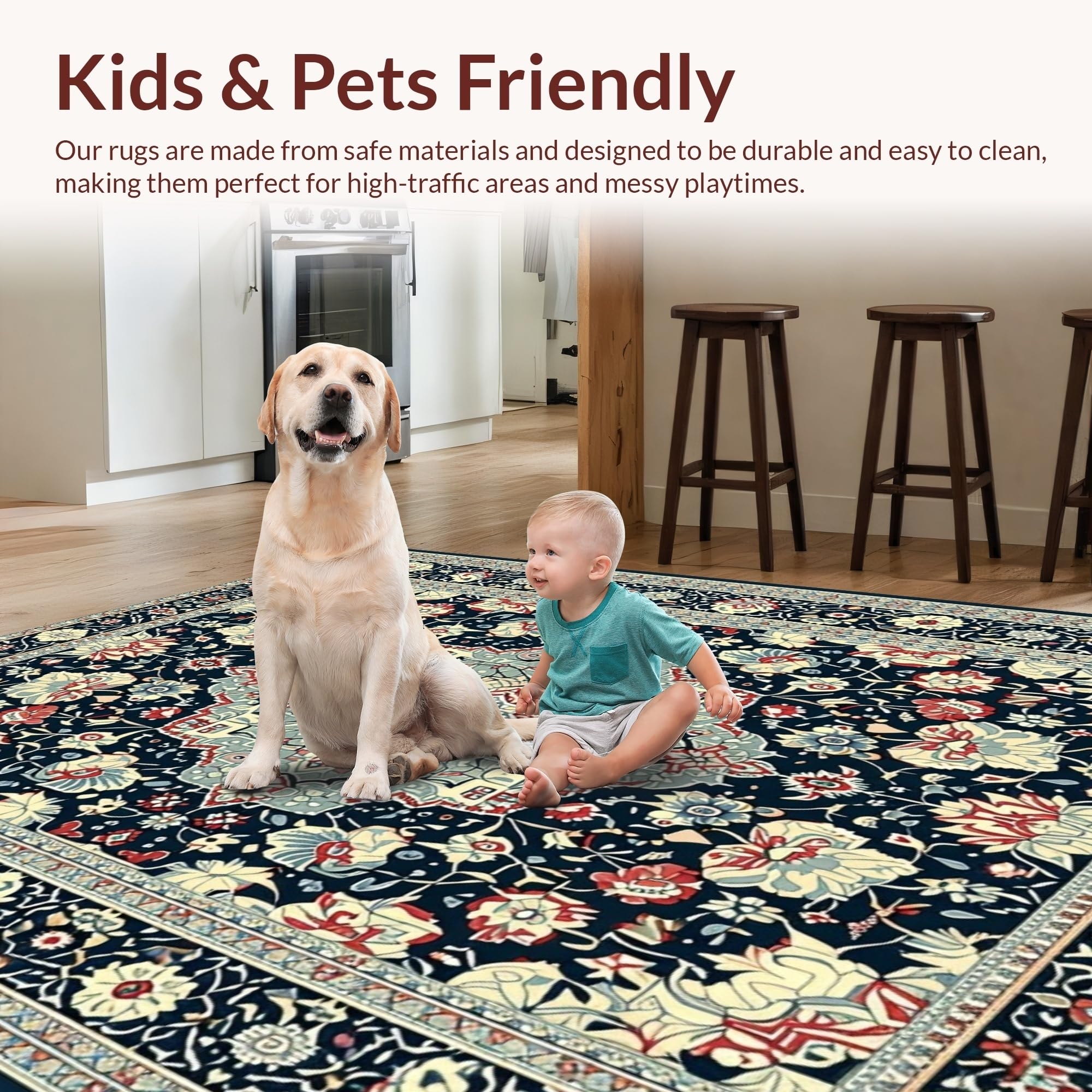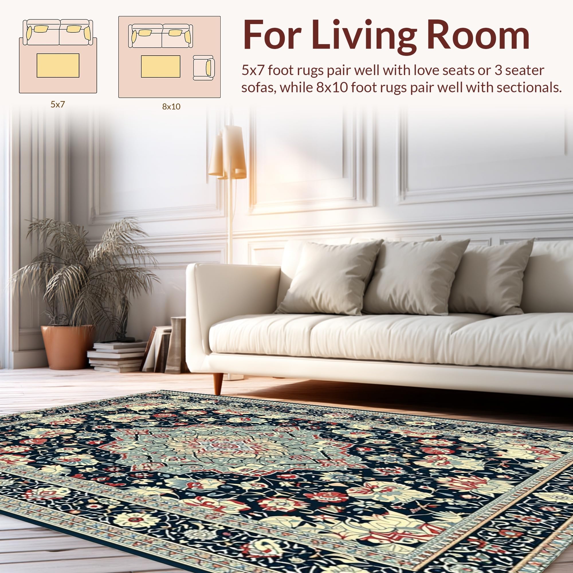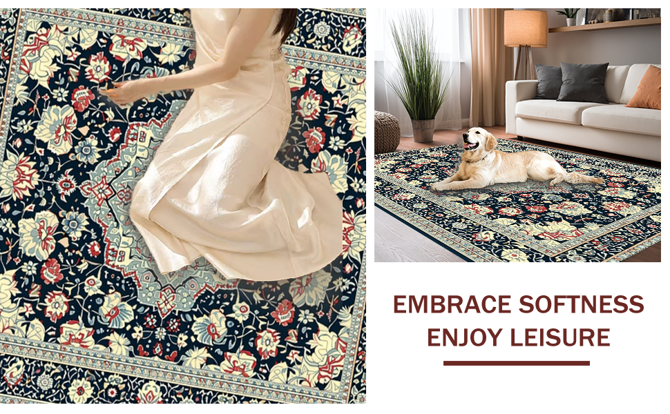 Ultra Soft Area Rug, Non Slip, Stain Resistant, Washable Area Rugs for Living Room, Bedroom, Contemporary Elegant Floral Aesthetic(Black) Overview: