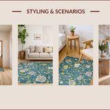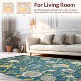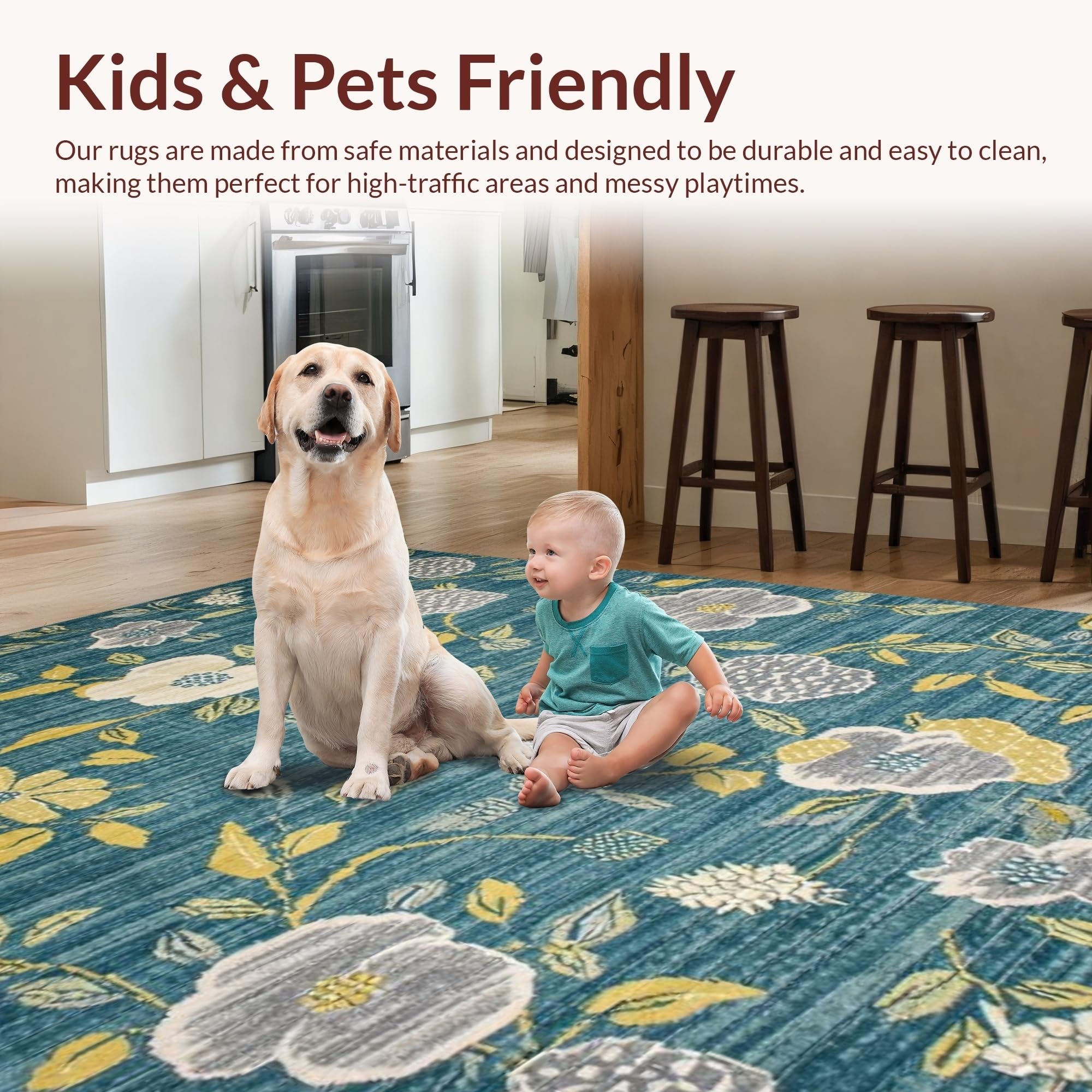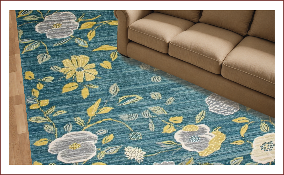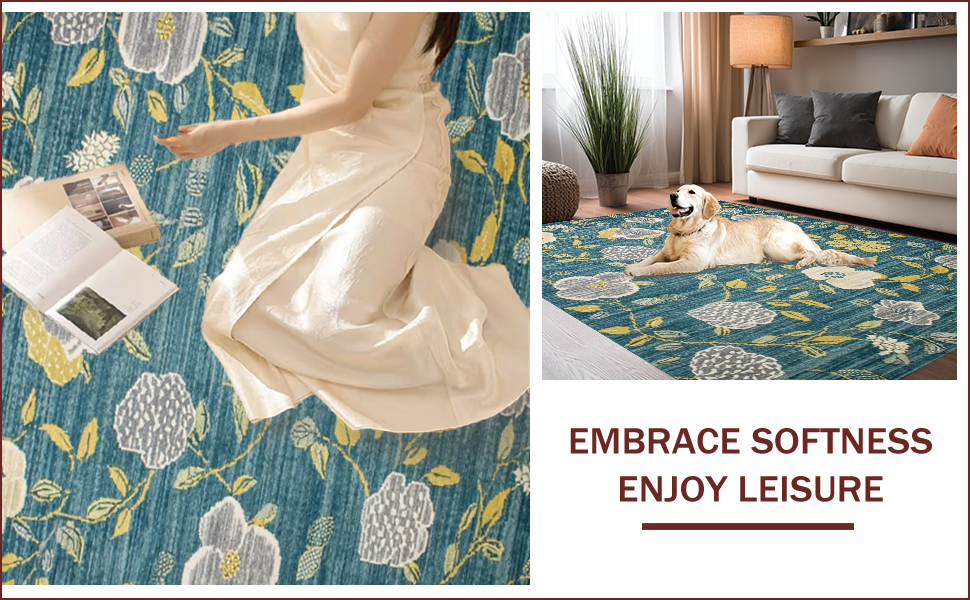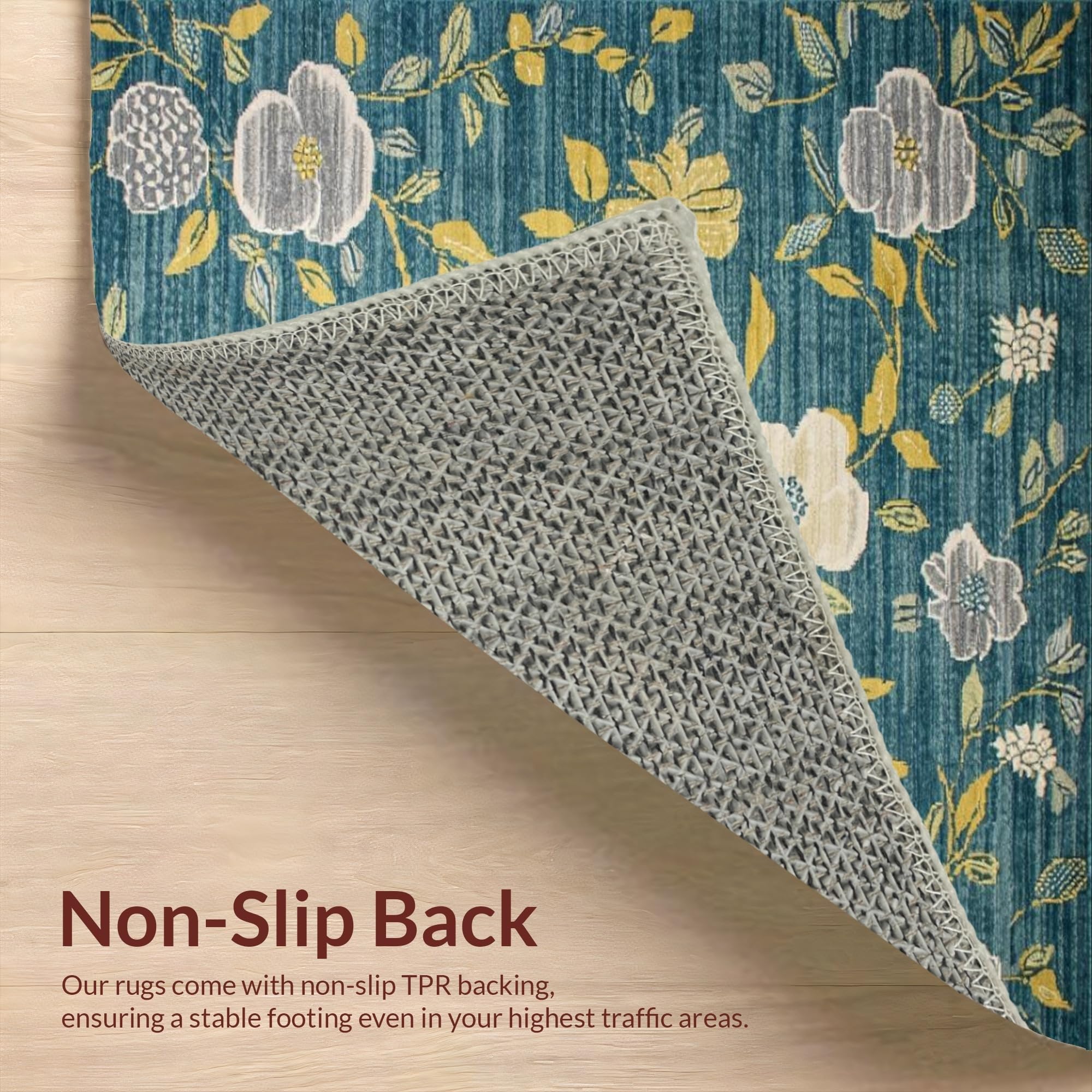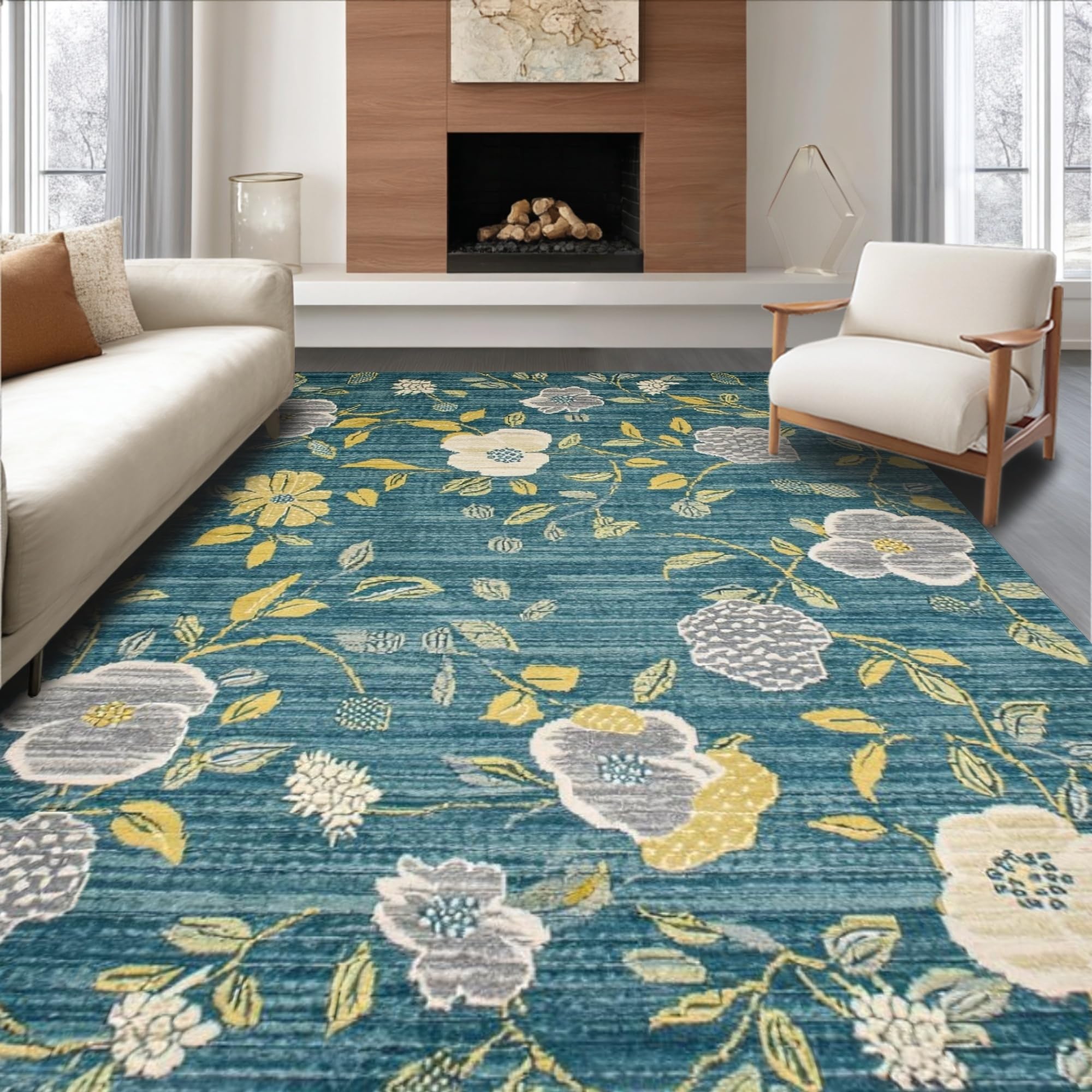 Ultra Soft Area Rug, Non Slip, Stain Resistant, Washable Area Rugs for Living Room, Bedroom, Contemporary Elegant Floral Motif(Blue) Overview: