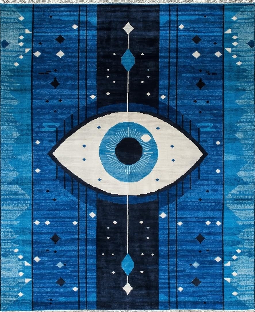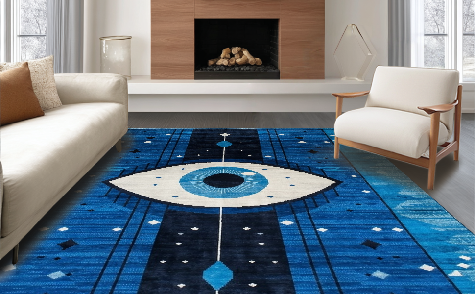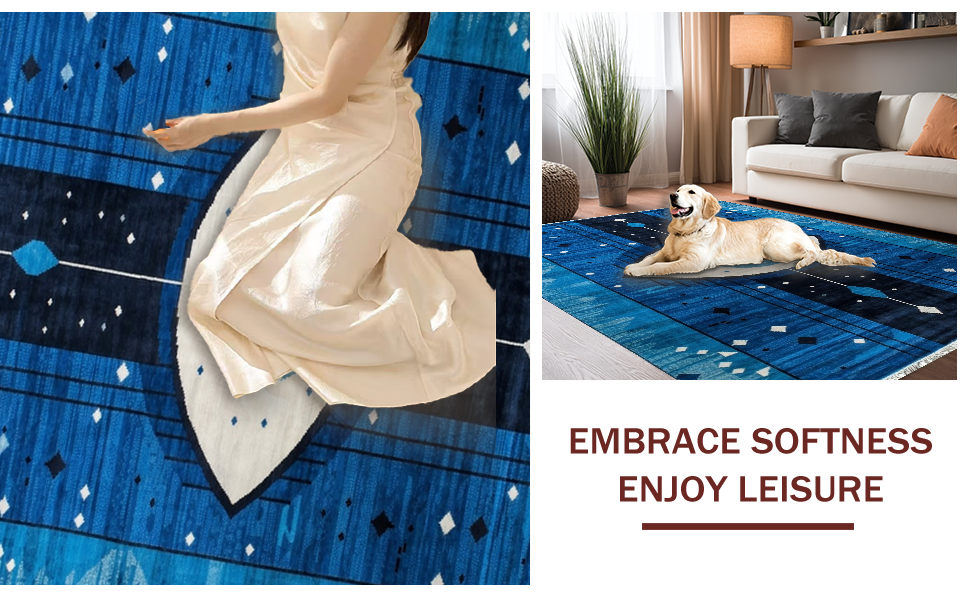 Ultra Soft Area Rug, Non Slip, Stain Resistant, Washable Area Rugs for Living Room, Bedroom, Contemporary Ethereal Lattice Aesthetic(Blue) Overview: